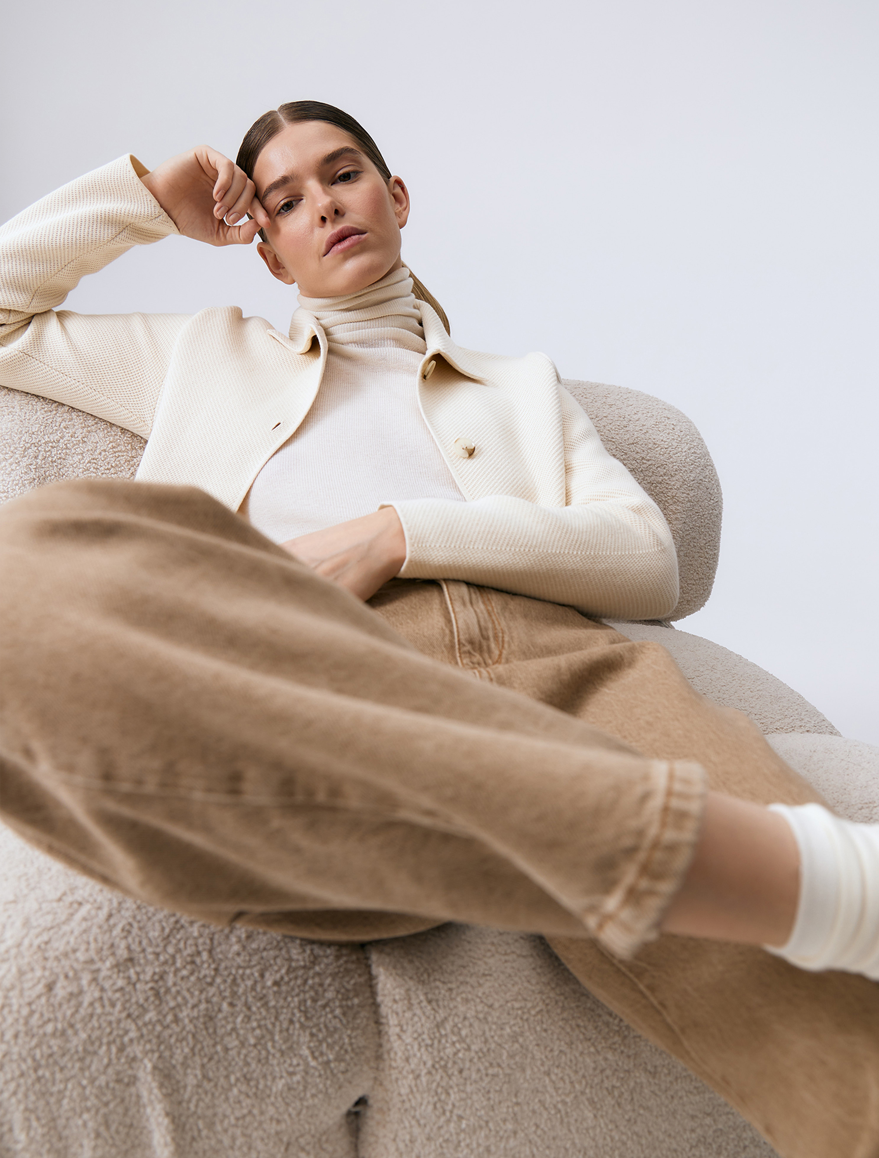 Мы находимся в постоянном творческом поиске и понимаем наших покупателей. Например, по просьбам поклонников бренда корректируем составы отдельных моделей. Так часто происходит с топовыми джемперами и кардиганами, которые из демисезонных переходят в зимние путем добавления шерстяной нити.