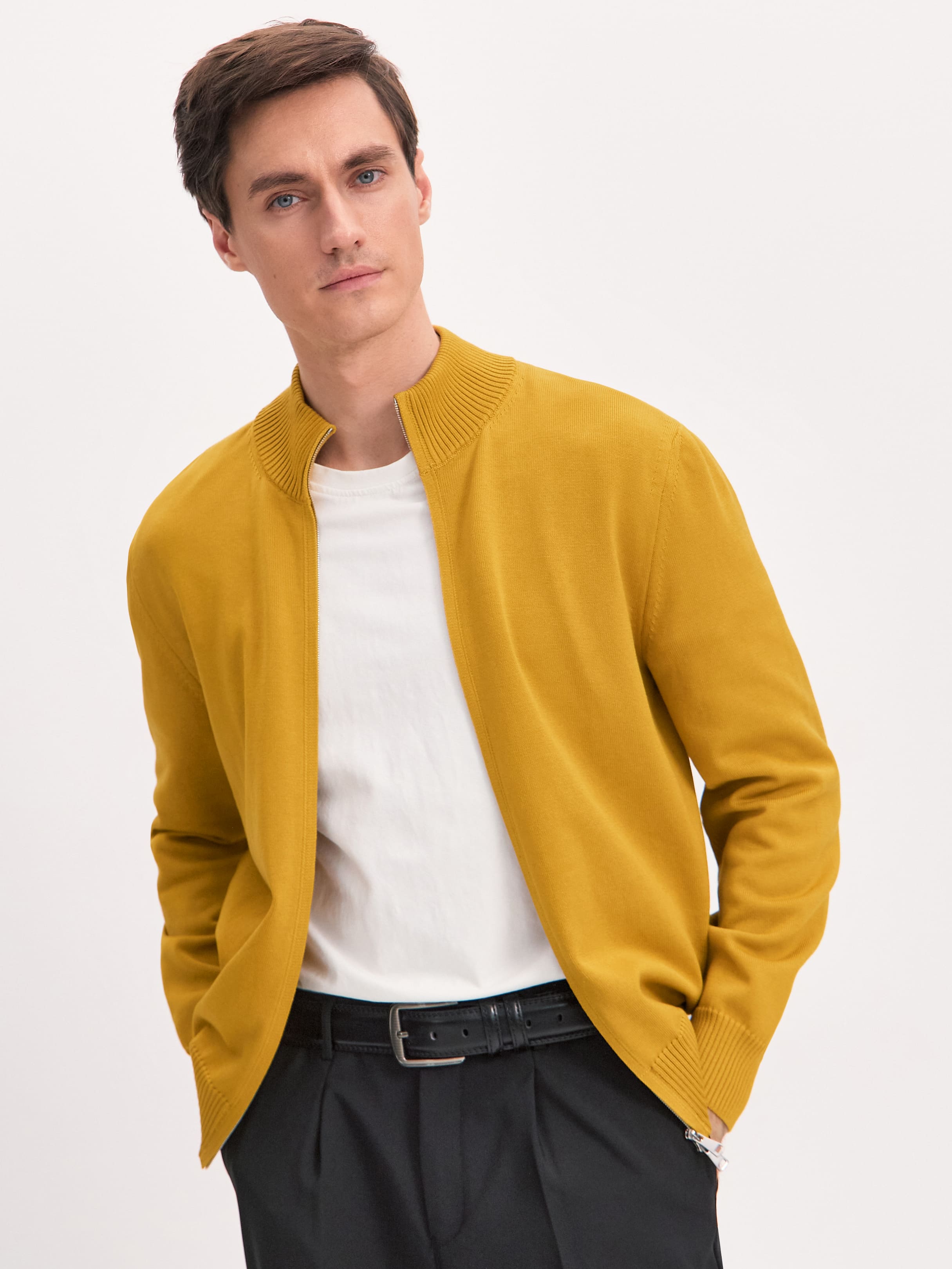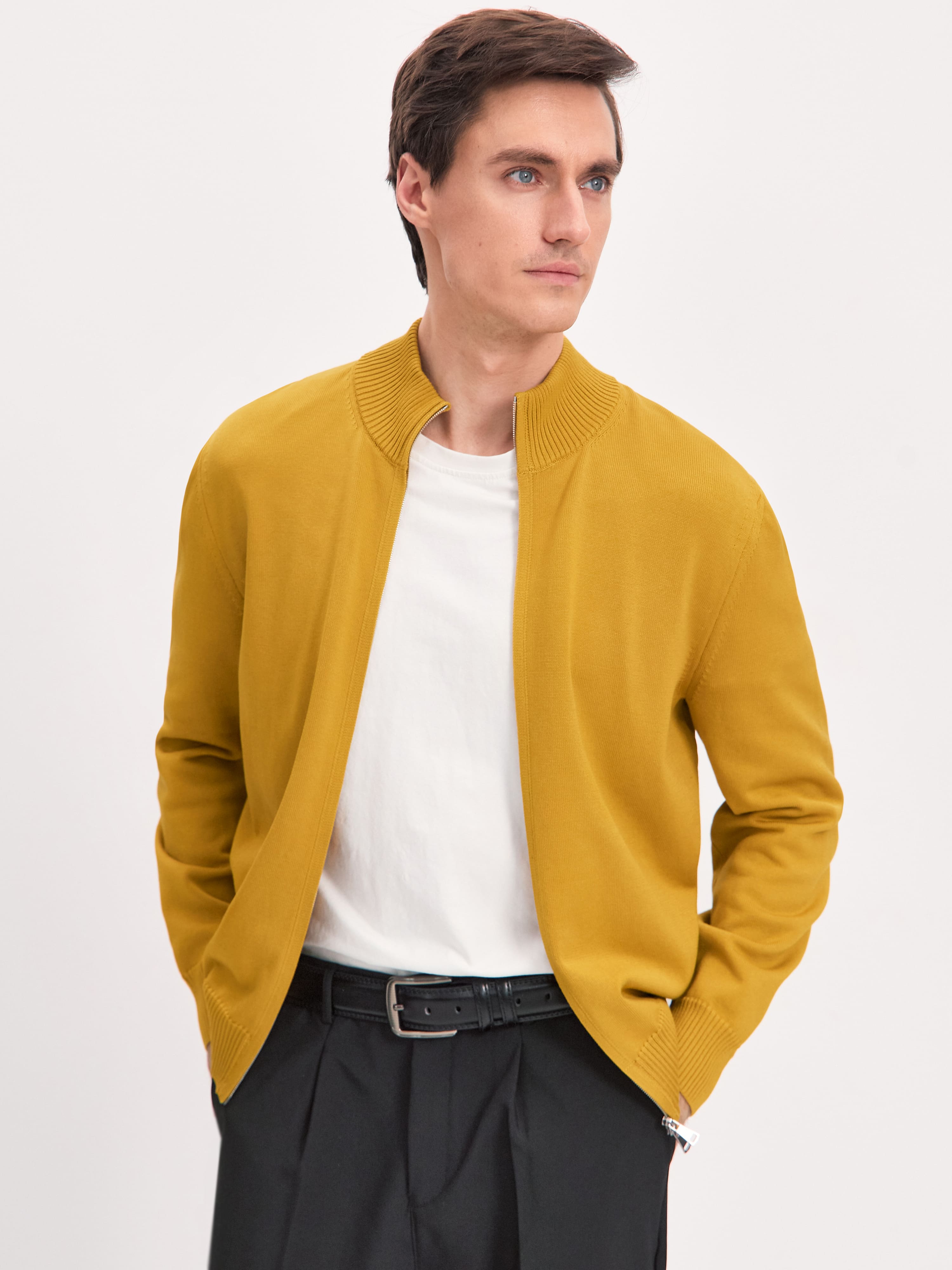 Мужской кардиган из плотно переплетенного премиального хлопка. Прямой, комфортный, уместный в любом сочетании – от классических брюк до легких чинос. Вывязанные резинкой низ, края манжет и горловина – то, что нужно для идеального прилегания и корректной посадки изделия. Кардиган застегивается на разъемную молнию с двумя замками, задача которых – регулировать открытость и динамичность образа. Чтобы обеспечить больше свободы в движении, достаточно расстегнуть замки в направлении друг друга.
