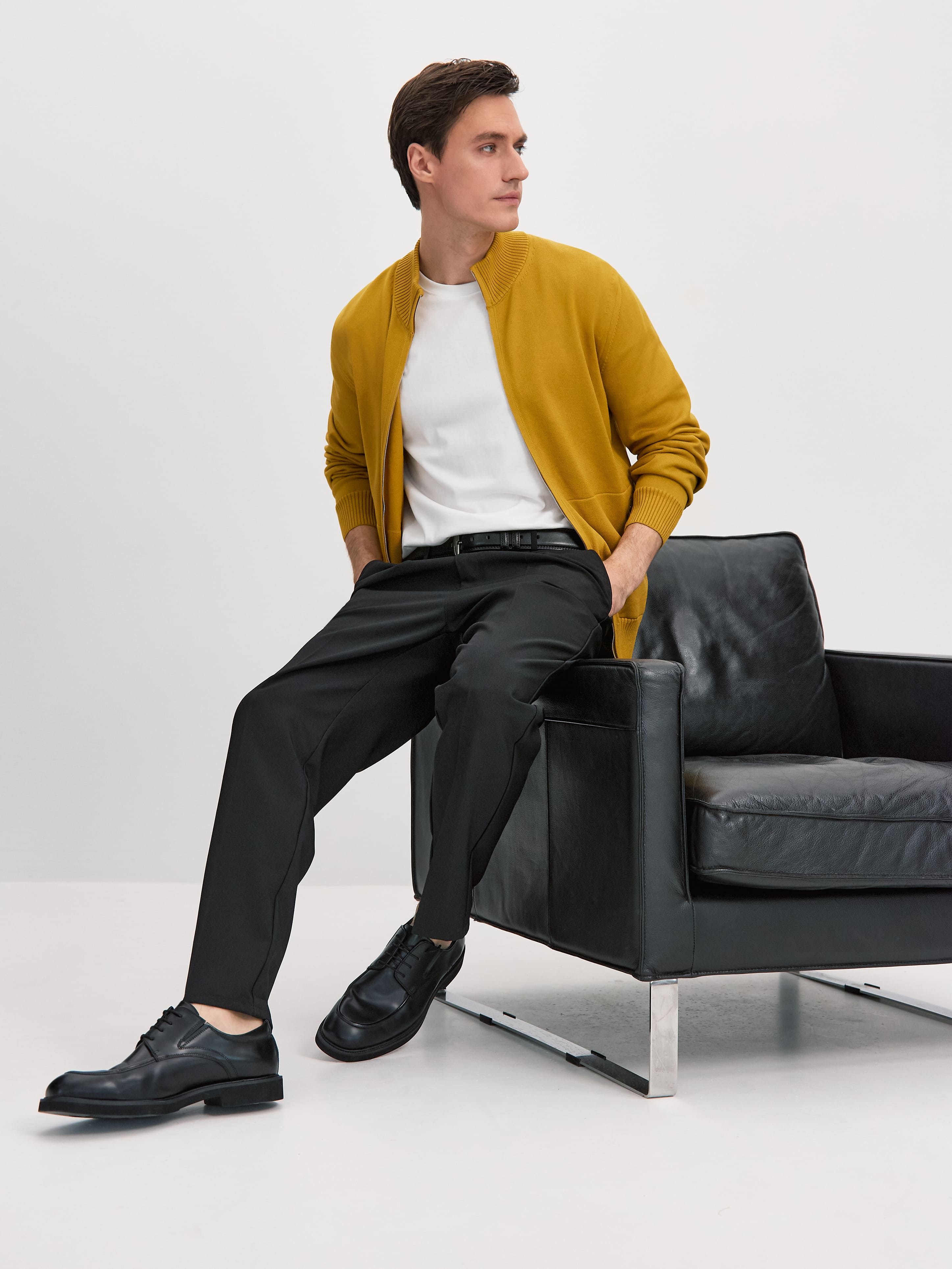 Мужской хлопковый кардиган на двухзамковой молнии. Универсальная модель для насыщенных будней и комфортного отпуска. Уплотненная двойная горловина обеспечивает мягкое прилегание к шее. Эластичные манжеты позволяют менять высоту рукава без подворота – резинку можно стягивать к локтю или по линии запястья. Маленькие акцентные штрихи – горизонтальная строчка на полочках и сложная конструкция прорезных карманов на металлической молнии. Трикотажное полотно связано в плотной, формоустойчивой технике. Кардиган надежно защищает от сквозняков и прохладных температур, сохраняя безупречную тактильность. Аккуратная резинка в нижней части – это фиксатор силуэта, который не позволяет трикотажу тянуться вниз.