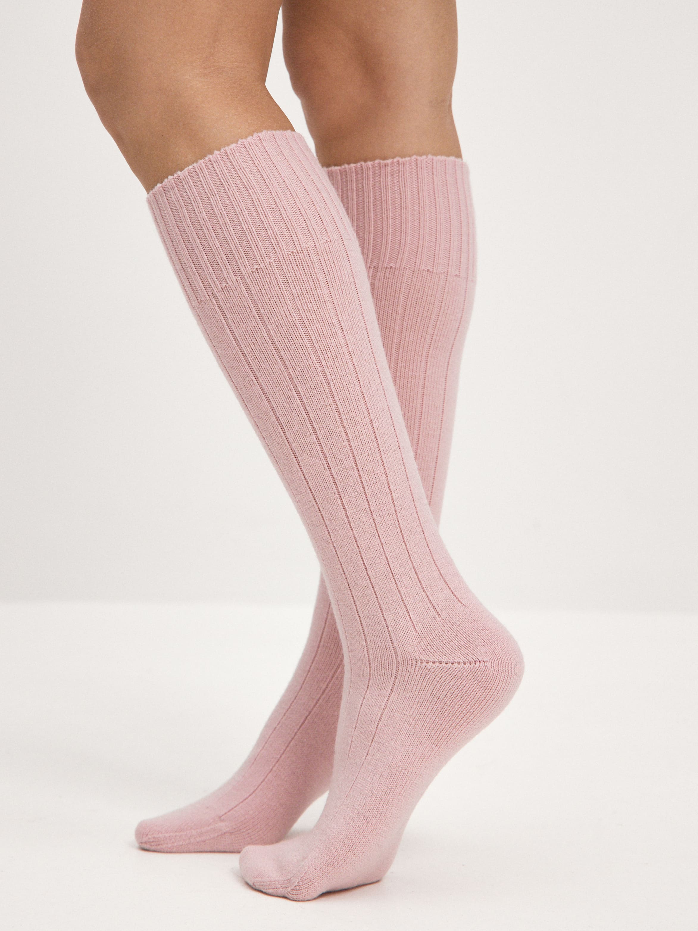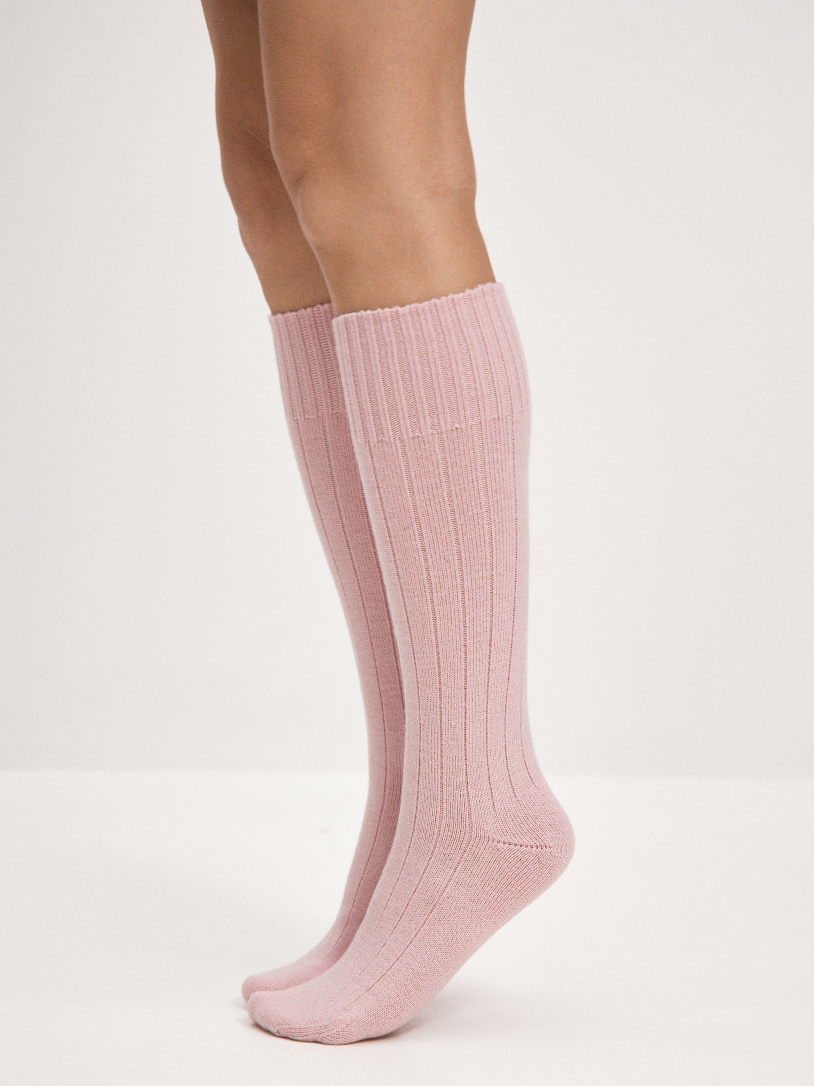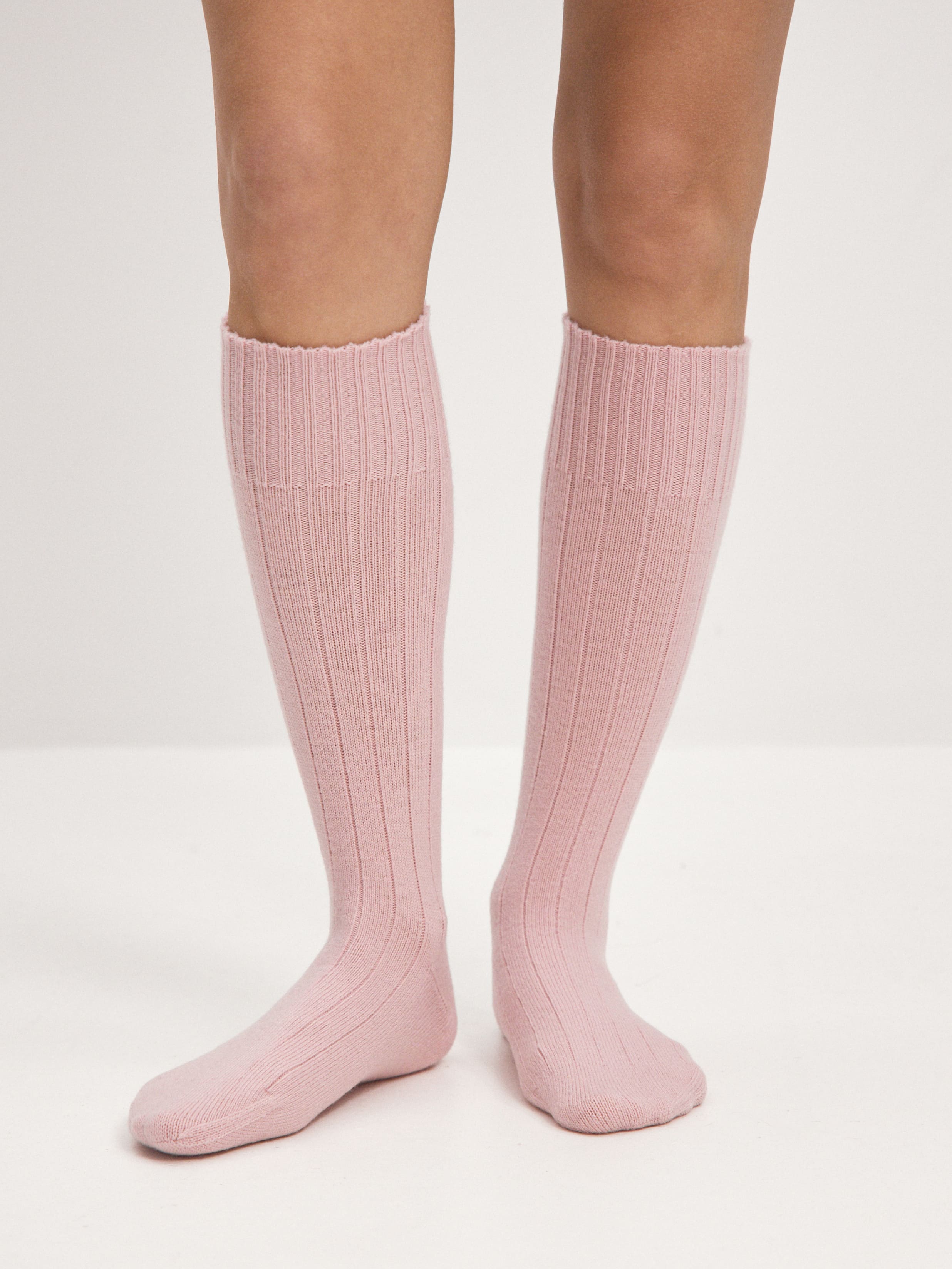 Гольфы из шелковистой мериносовой шерсти с уплотненным мыском и эластичной вязаной резинкой по краю. Выполнены в технике лапша, чтобы плотно облегать голень и не сползать в движении. Благодаря классической длине, корректируют настроение образа в нескольких направлениях. Приспущенные, собранные складкой или подвернутые гольфы отлично рифмуются с грубыми ботинками, кроссовками и ботильонами. Можно включить аксессуар в небанальный тандем с сапогами – выберите максимально контрастный оттенок трикотажа и позвольте верхней трети гольфа выглядывать из-под голенища обуви.