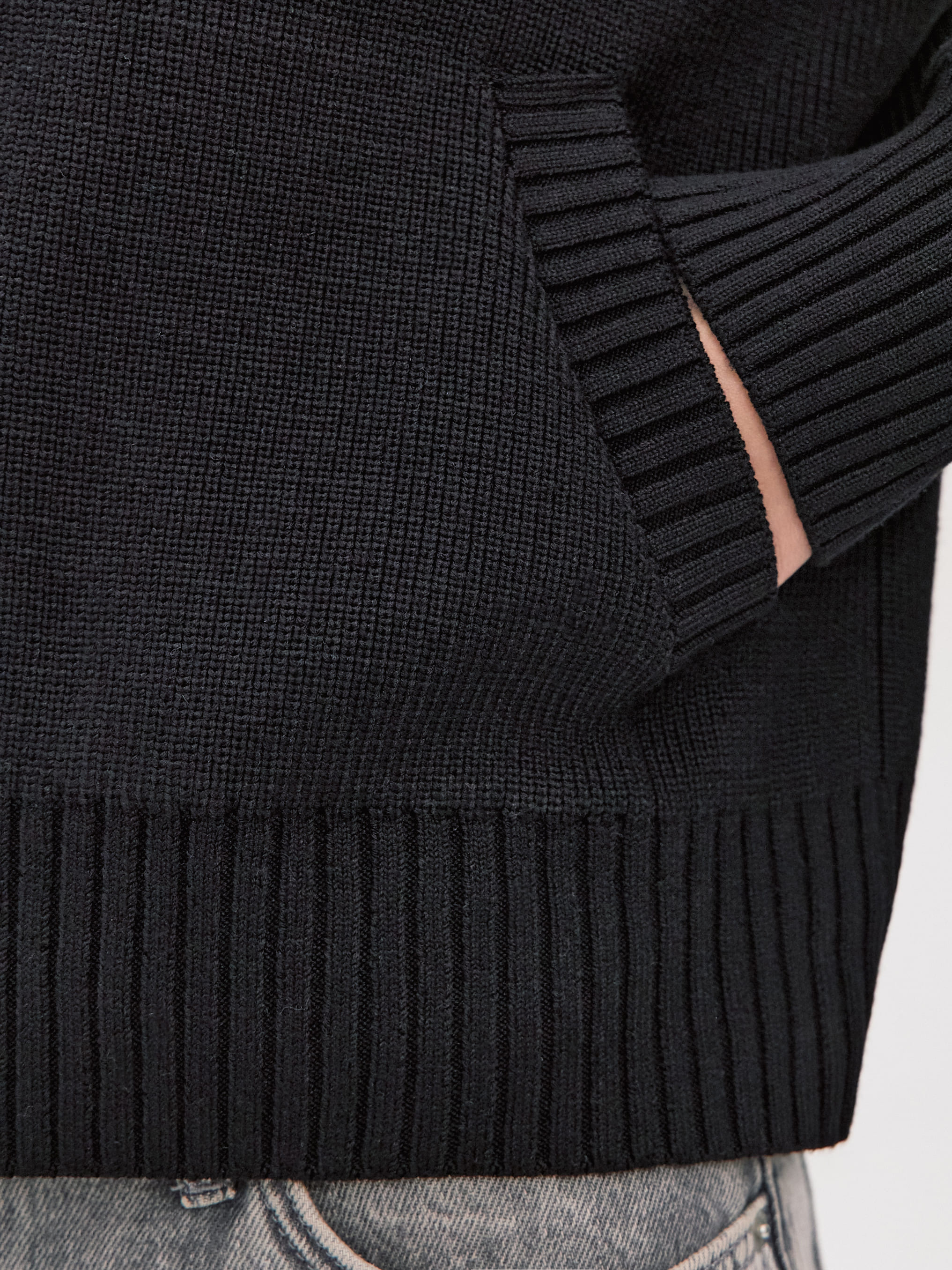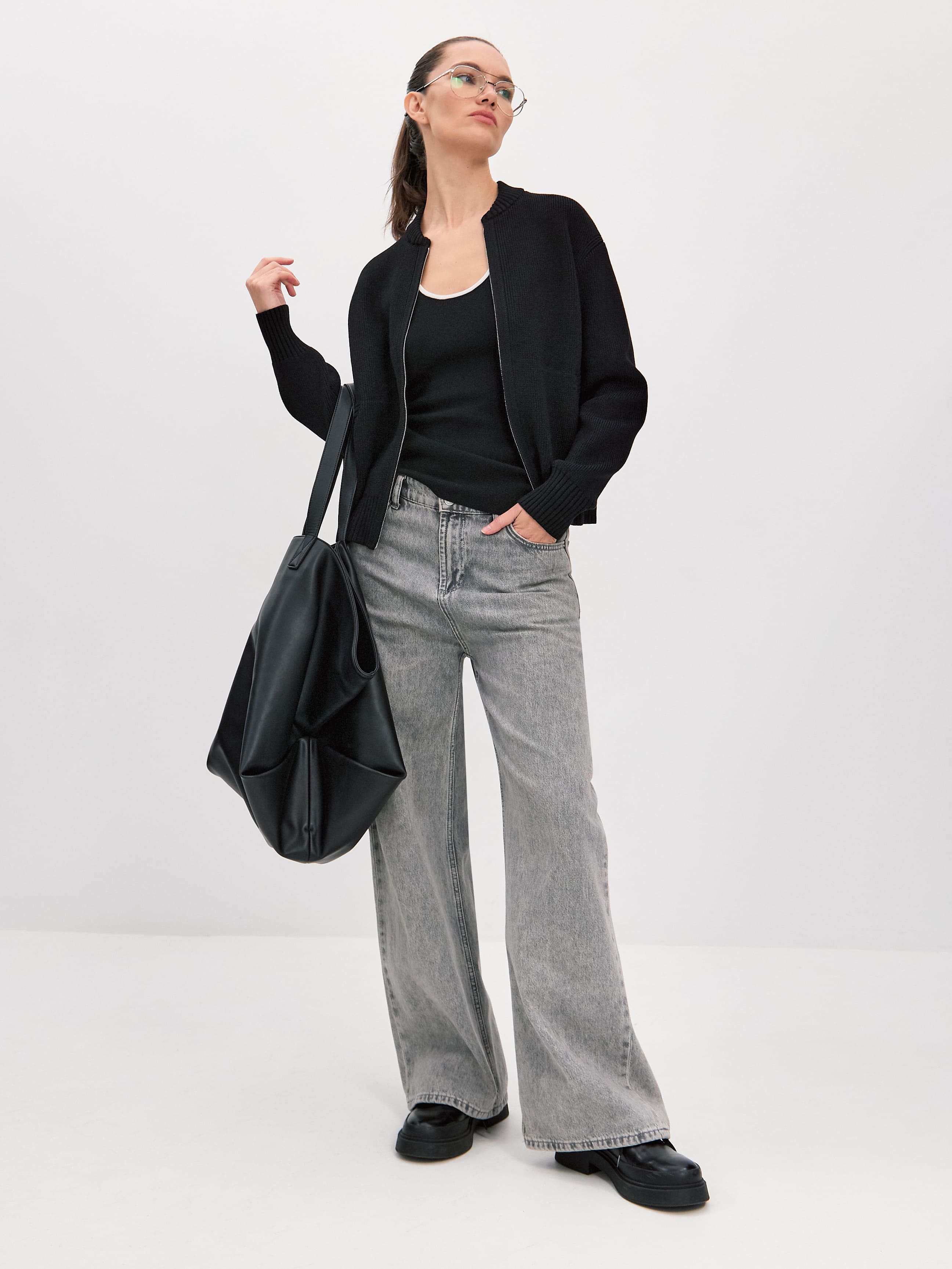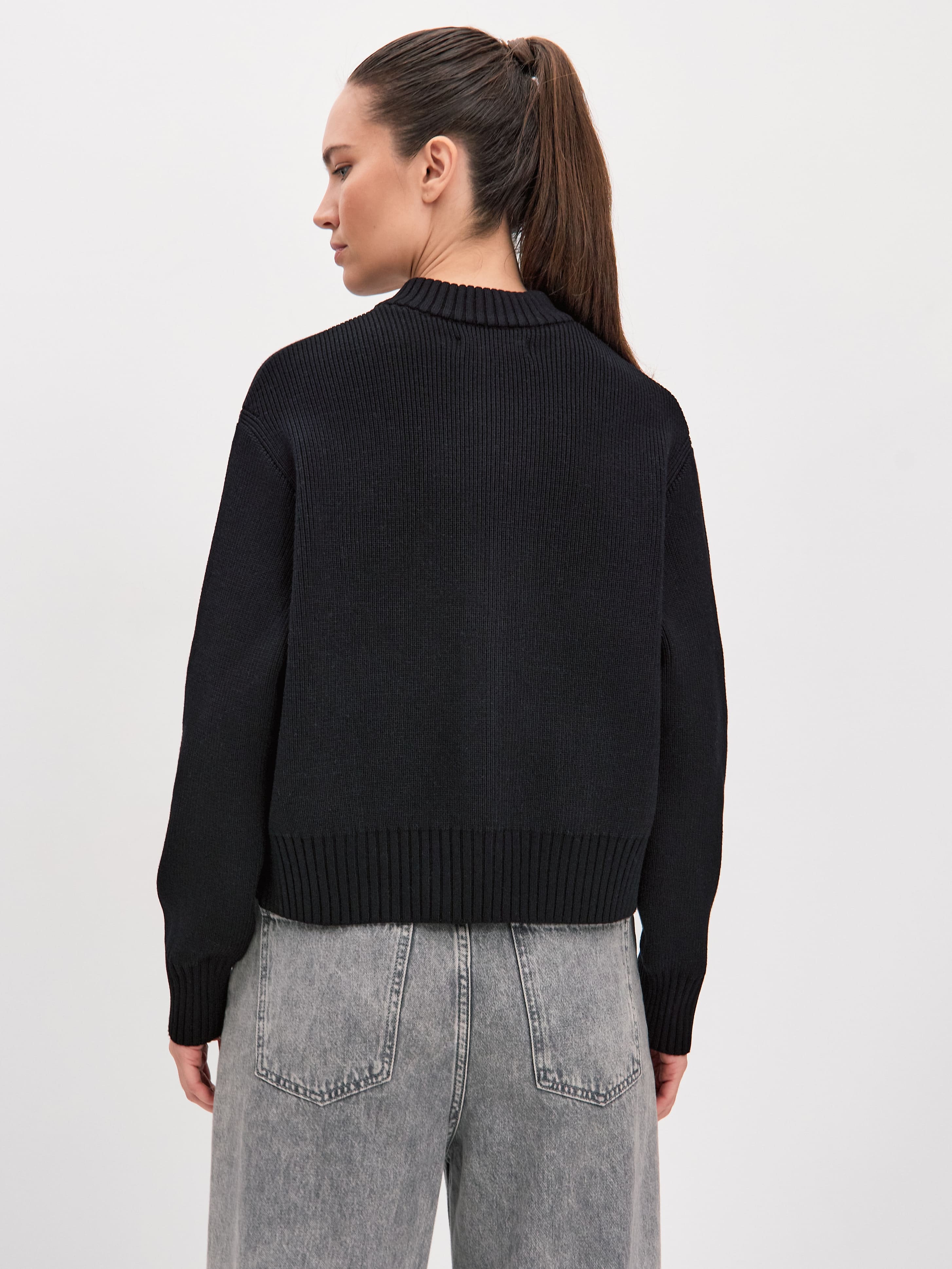 Мягкий бомбер из плотной хлопковой пряжи – приятный на ощупь, дышащий каждой петелькой, бережно хранящий тепло. Джемпер в меру объемный, усиленный добавкой из легкой вискозы и эластичного полиамида. Искусственные волокна помогают хлопку быстро восстанавливать форму. При этом они не снижают воздухопроницаемость и тактильность изделия. В качестве бонуса добавили двойную молнию, чтобы вы продолжили развивать идею сложных многослойных образов.