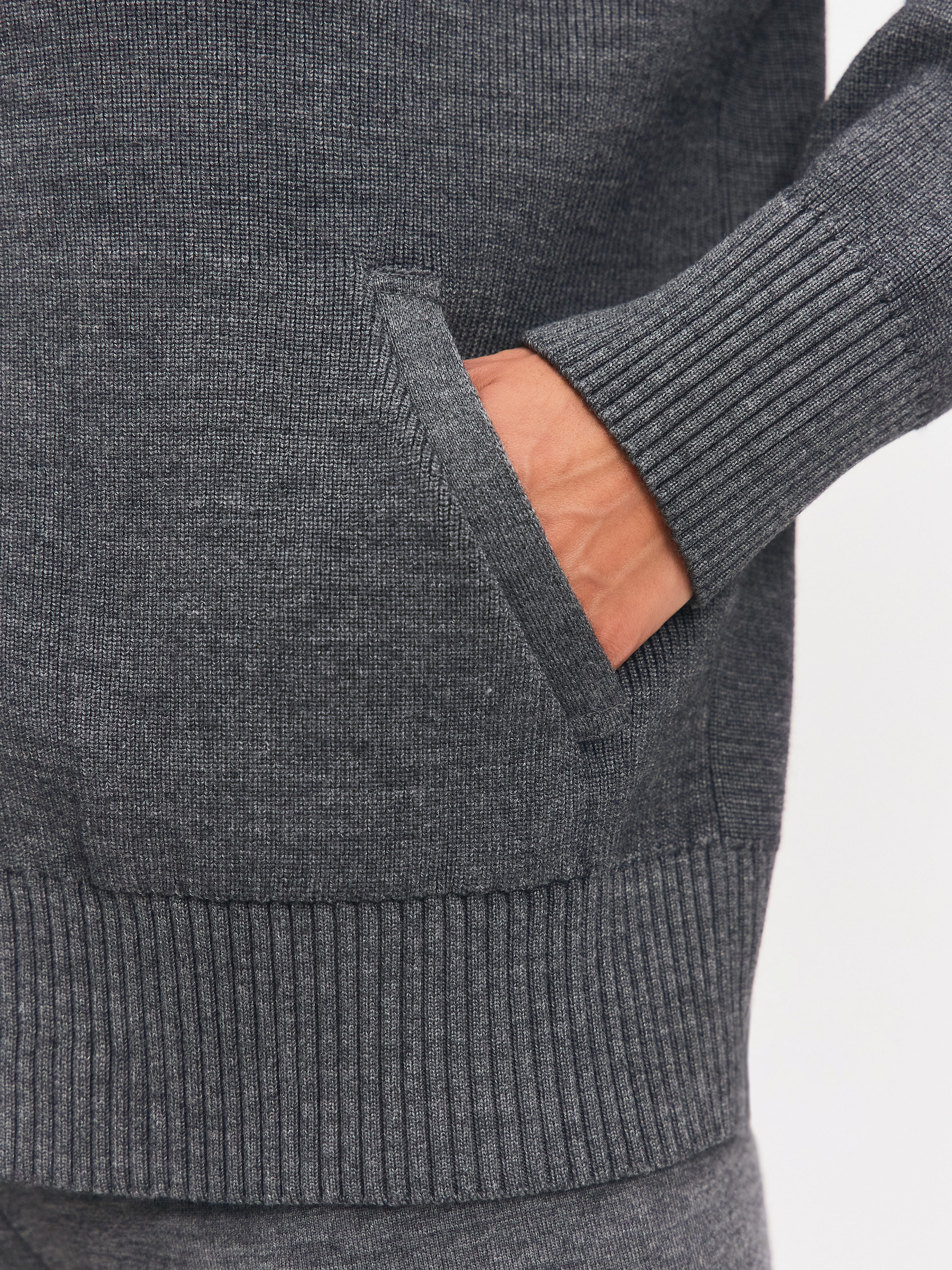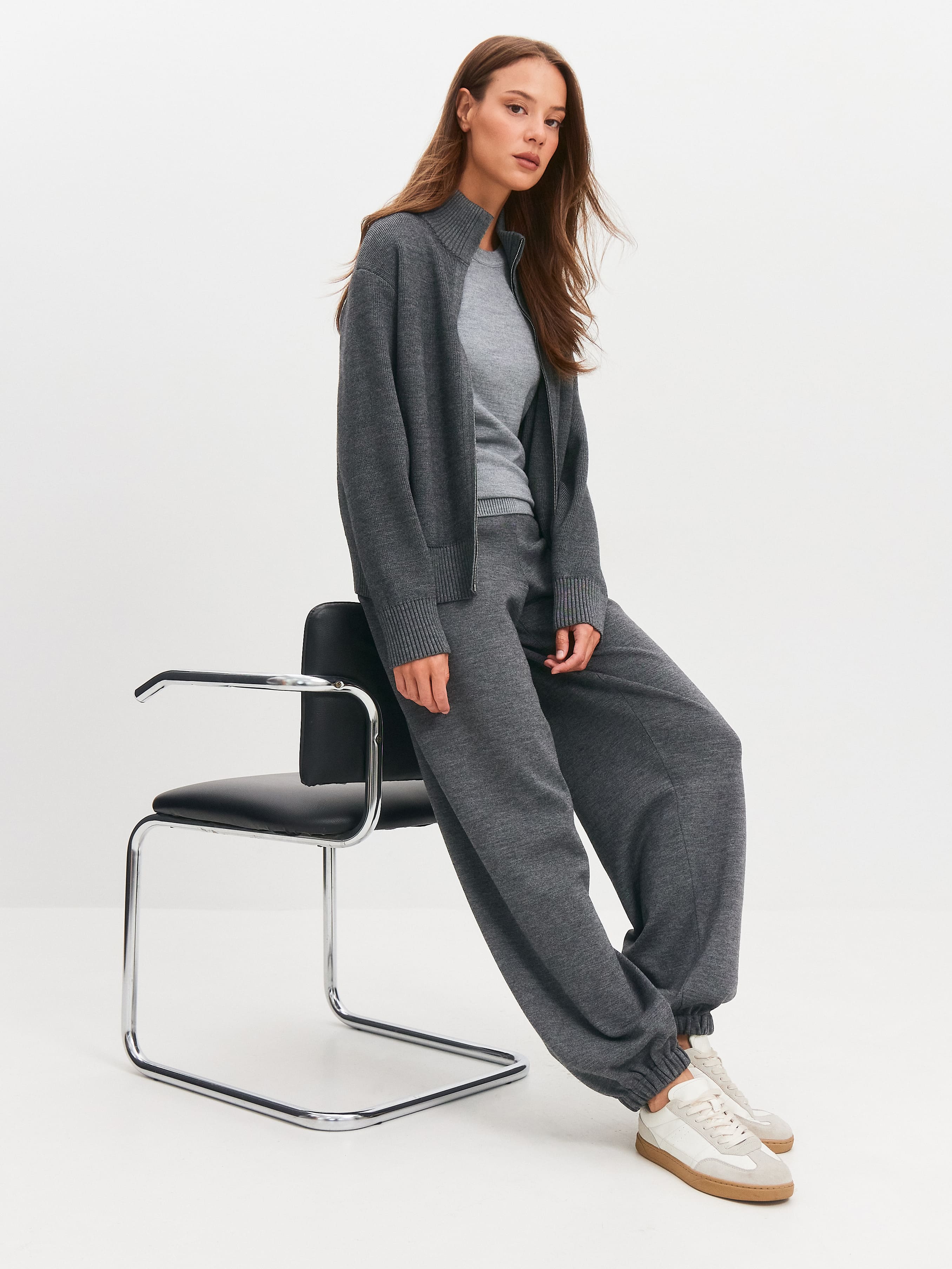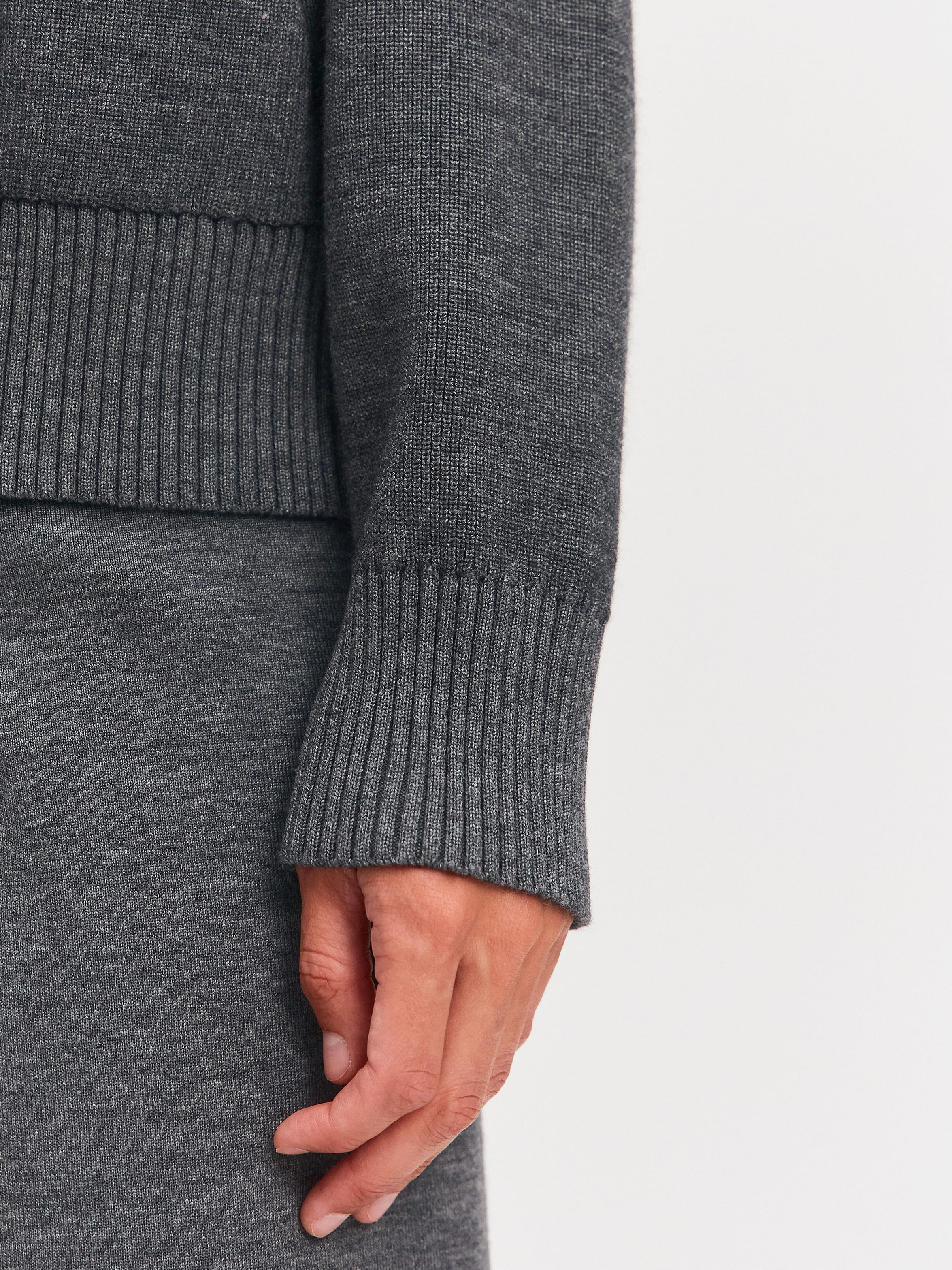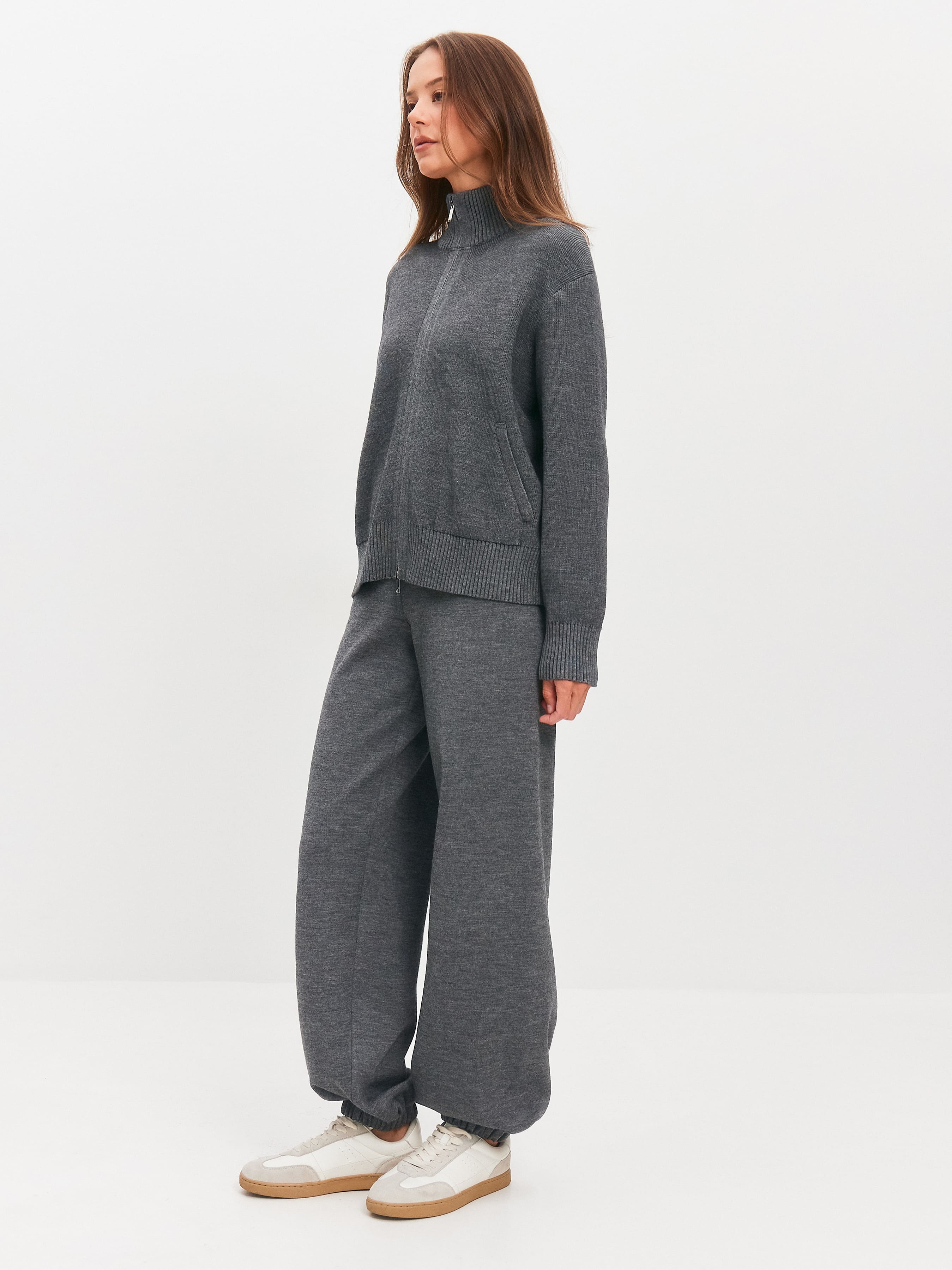 Минималистичный джемпер из мягкой мериносовой полушерсти. Такой понятный, уютно обнимающий и образующий идеальную пару с любым повседневным низом. Нюансы фасона: приспущенное плечо, застежка на металлическую молнию, широкие уплотненные манжеты и края. Высокий ворот вывязан в два слоя и по согревающим свойствам идентичен шарфу. Двухзамковая молния расстегивается в направлениях вверх-вниз. Данная модель бомбера изготавливается из шерстяной пряжи, смягченной большим процентом вискозы. Поэтому эффект покалывания, присущий изделиям из натуральной шерсти, в джемпере практически отсутствует.