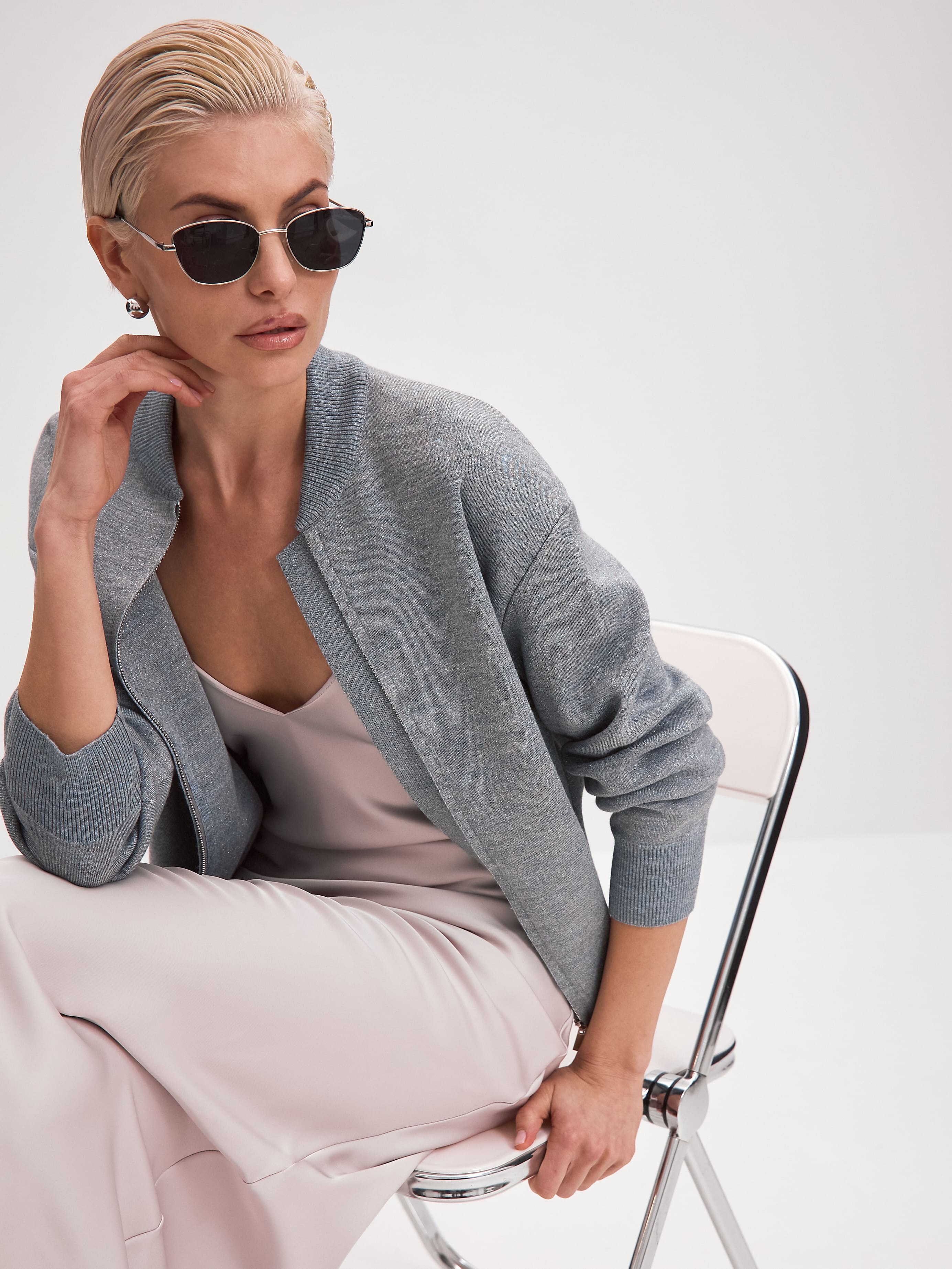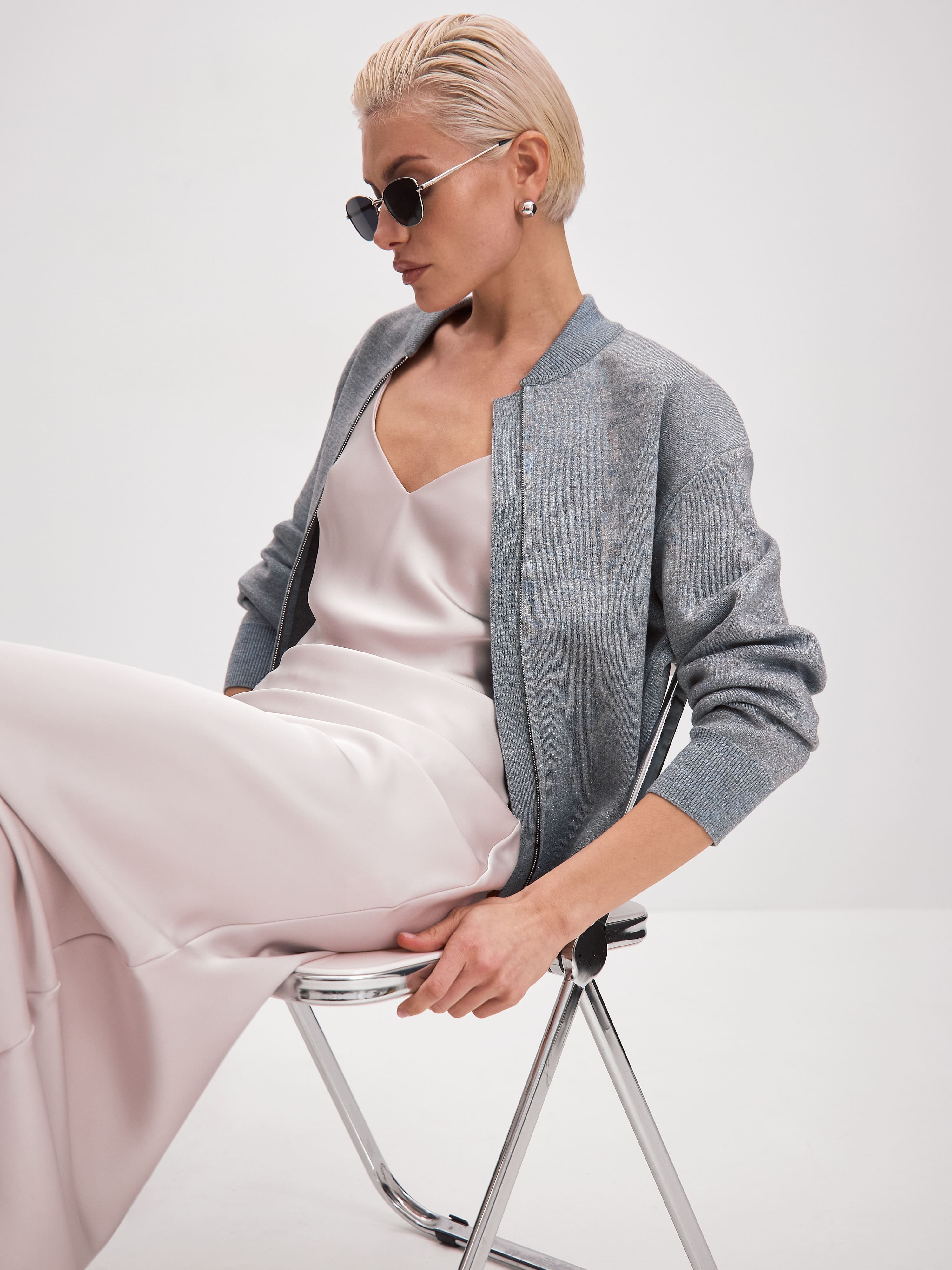 Нейс джемпер (бомбер) трикотажный (серо-голубой, 44-46)