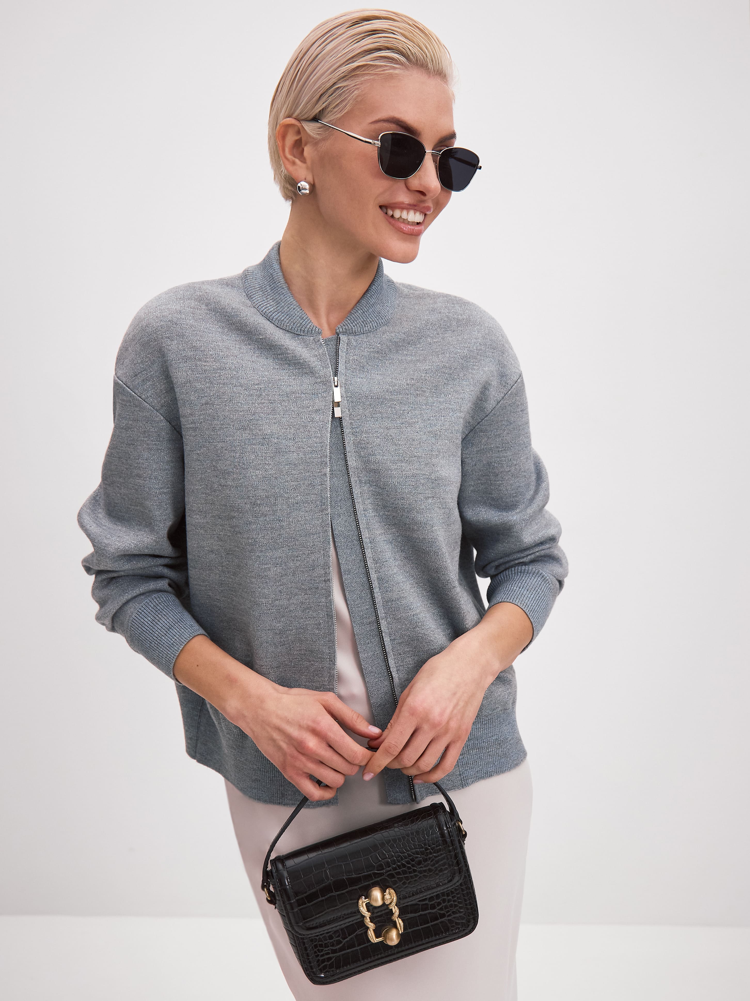 Бомбер с люрексом из шерсти мериноса и вискозы Нейс