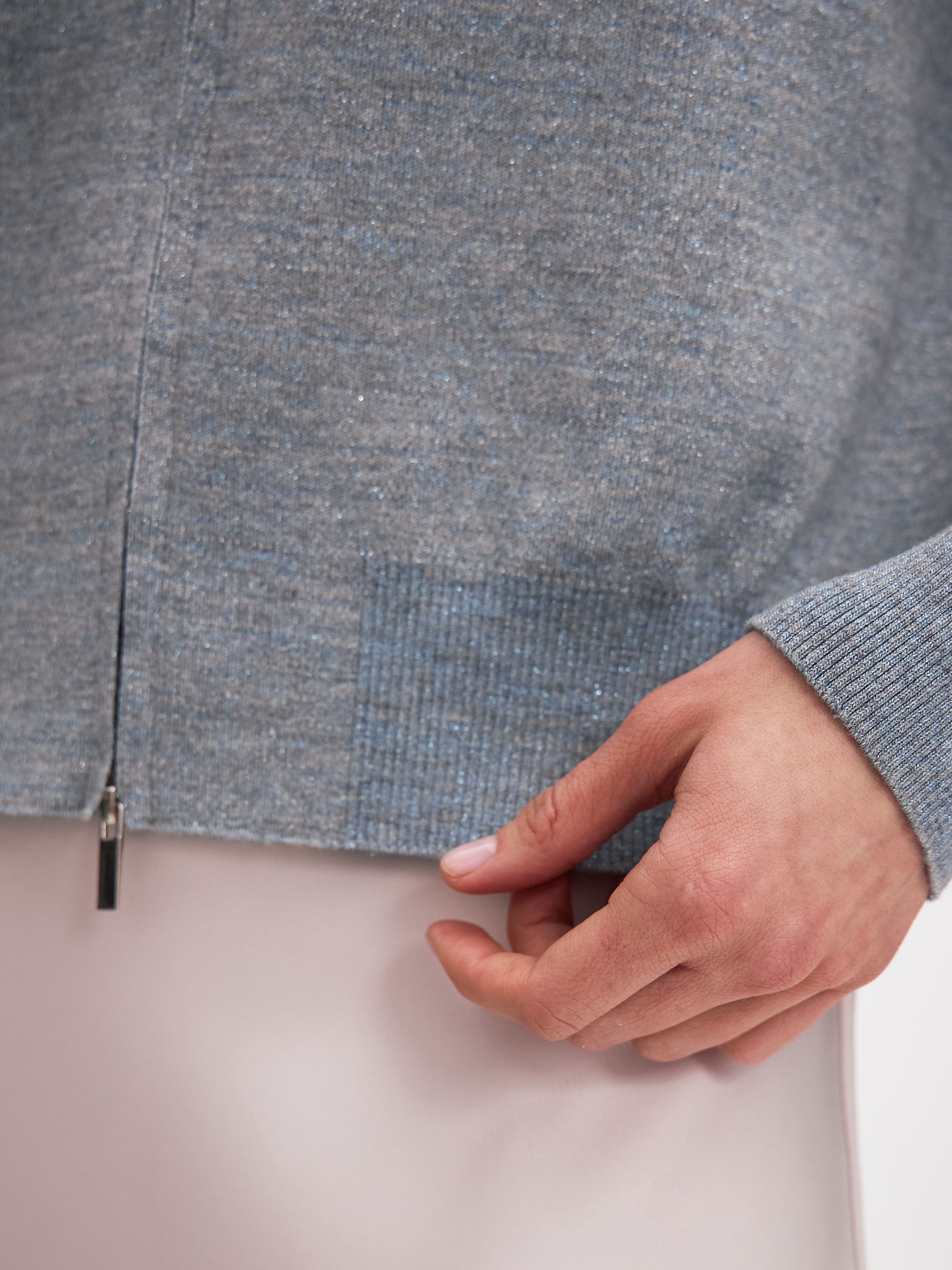 Теплый кардиган-бомбер с деликатным люрексом. Уютно-мягкий, благодаря гладкой мериносовой шерсти. Подчеркнуто нарядный, благодаря звездному мерцанию металлизированной нити. Дополнен текстурированными манжетами, низом и горловиной. В этой модели мы отказались от объемного силуэта, чтобы вам было комфортно носить бомбер под пальто и пуховиком. Изделие застегивается на молнию с двойным ходом, позволяющую экспериментировать с посадкой. Для более утепленных образов рекомендуем многослойные сочетания кардигана с зимними водолазками MONONAME.<br /><br />