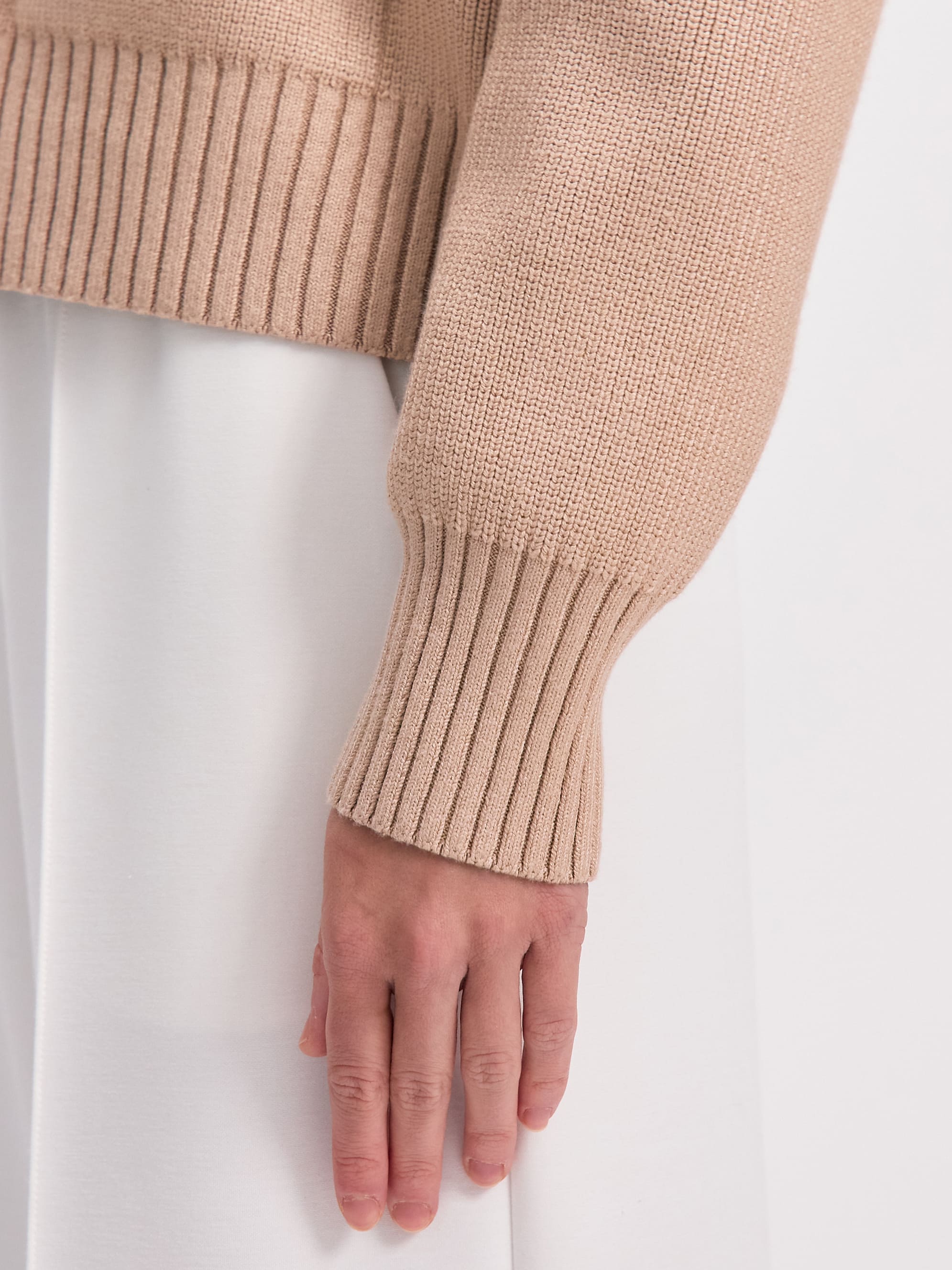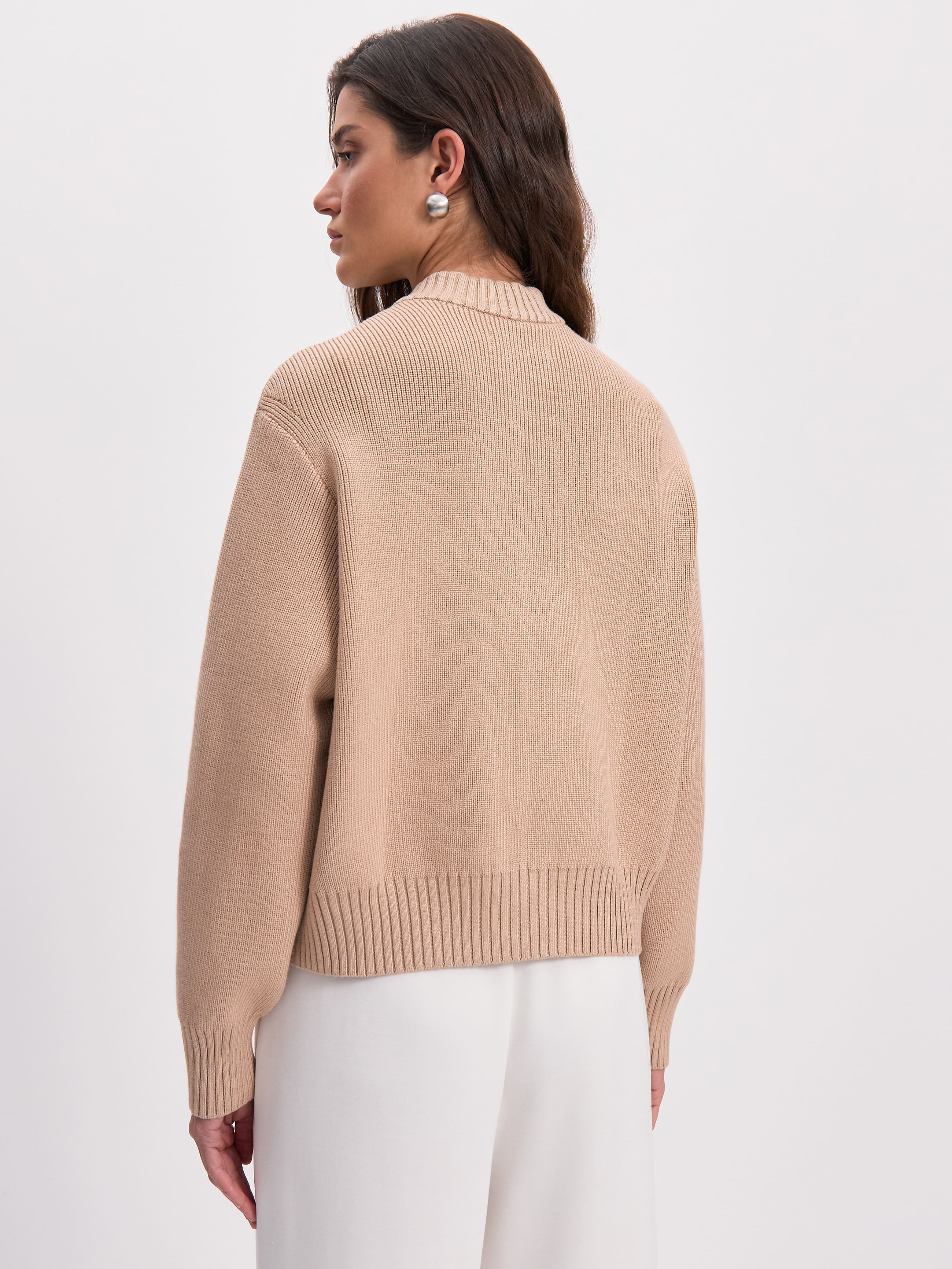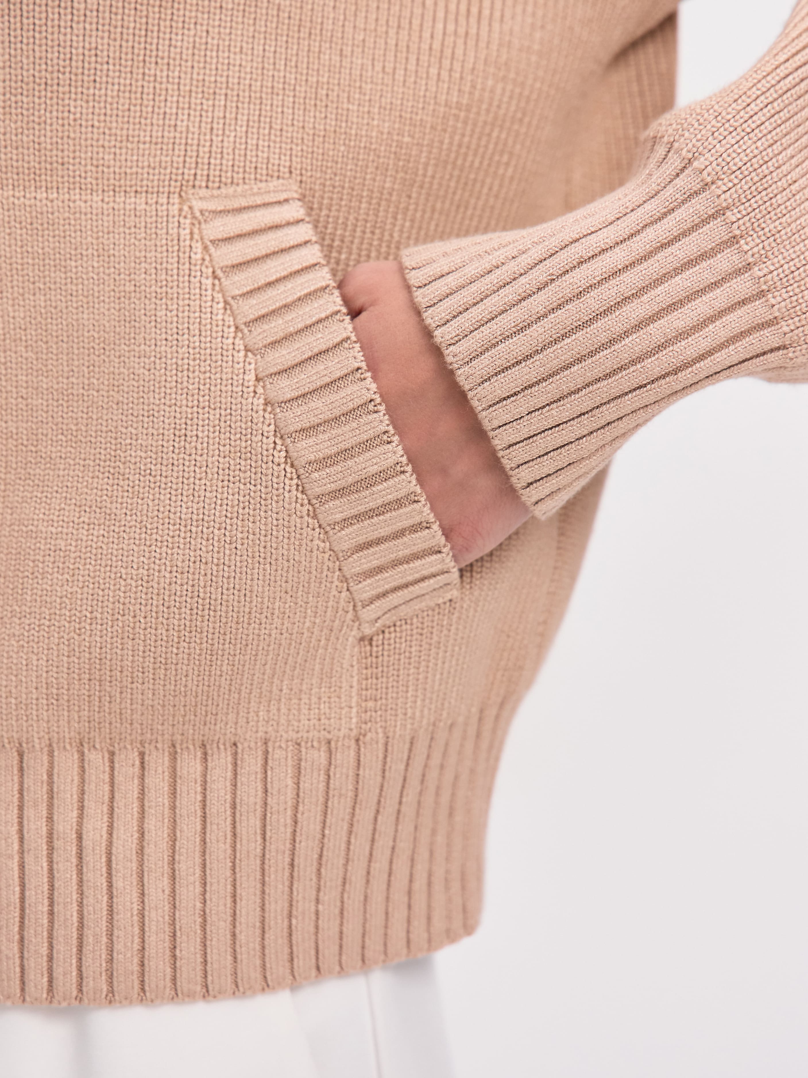 Мягкий бомбер из плотной хлопковой пряжи – приятный на ощупь, дышащий каждой петелькой, бережно хранящий тепло. Джемпер в меру объемный, усиленный добавкой из легкой вискозы и эластичного полиамида. Искусственные волокна помогают хлопку быстро восстанавливать форму. При этом они не снижают воздухопроницаемость и тактильность изделия. В качестве бонуса добавили двойную молнию, чтобы вы продолжили развивать идею сложных многослойных образов.