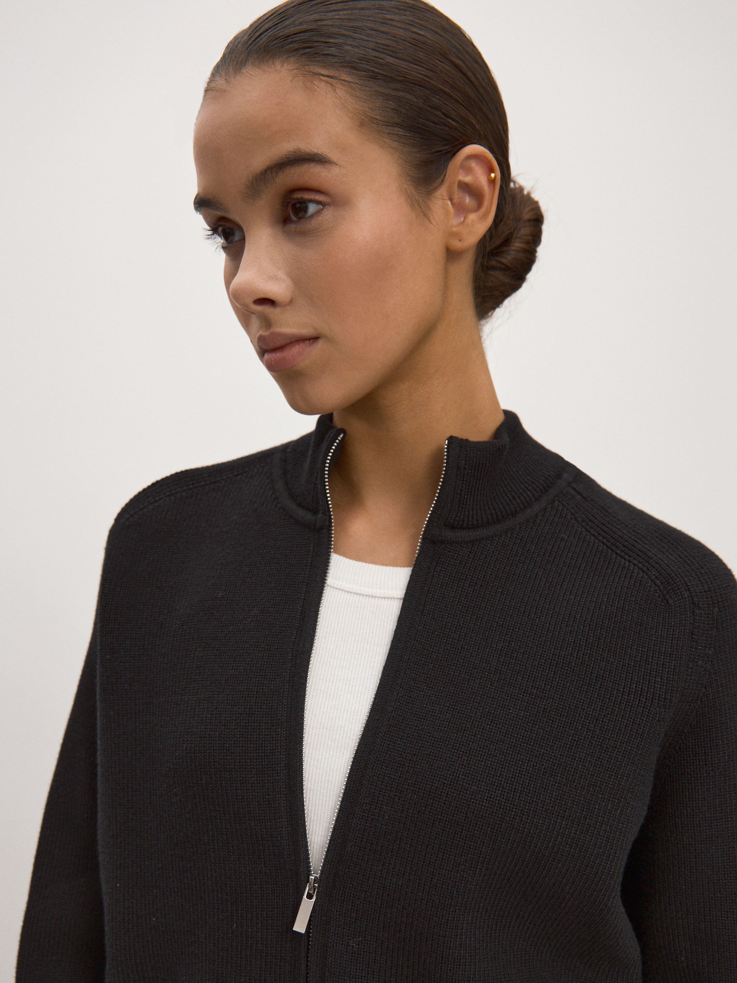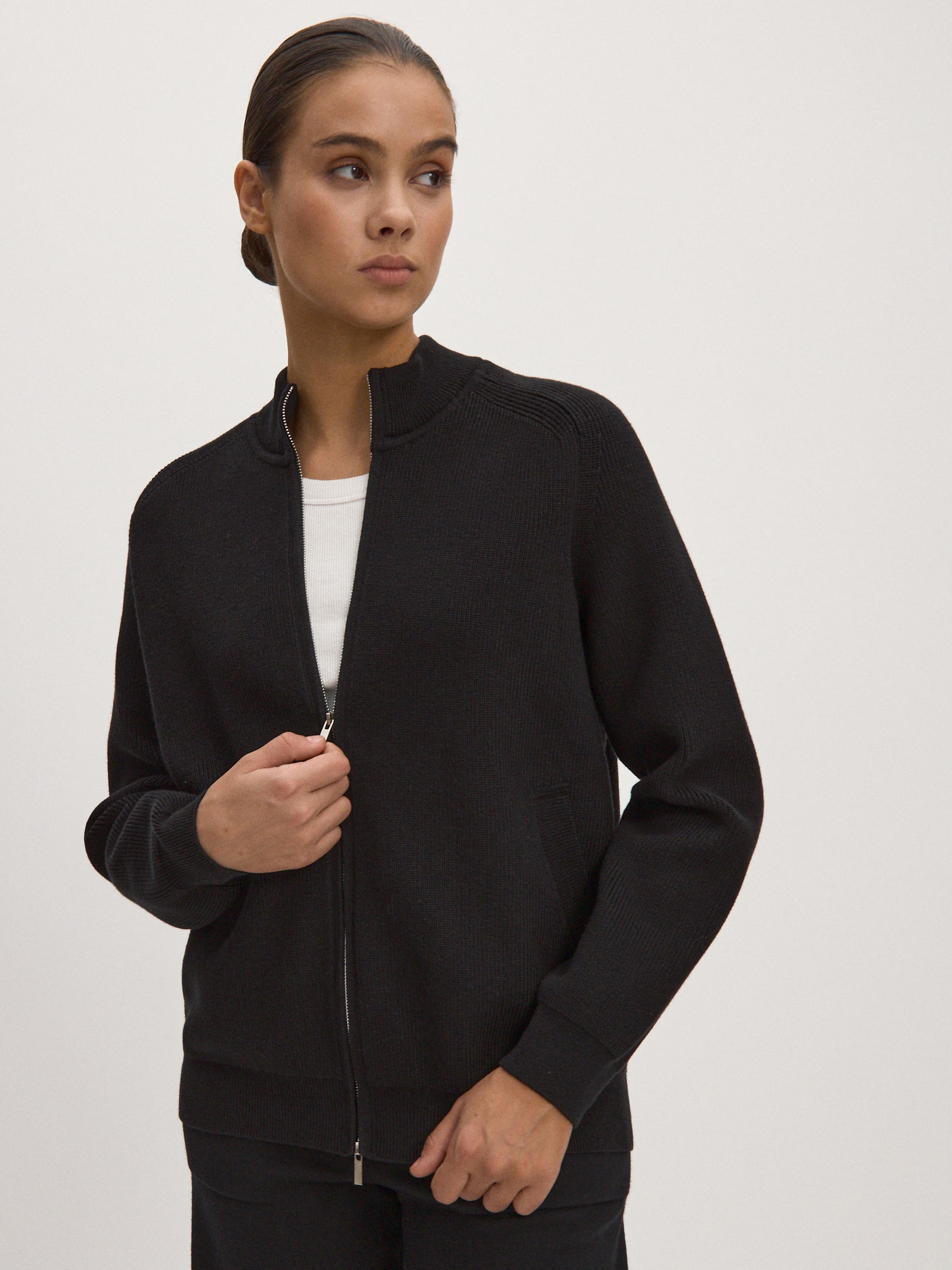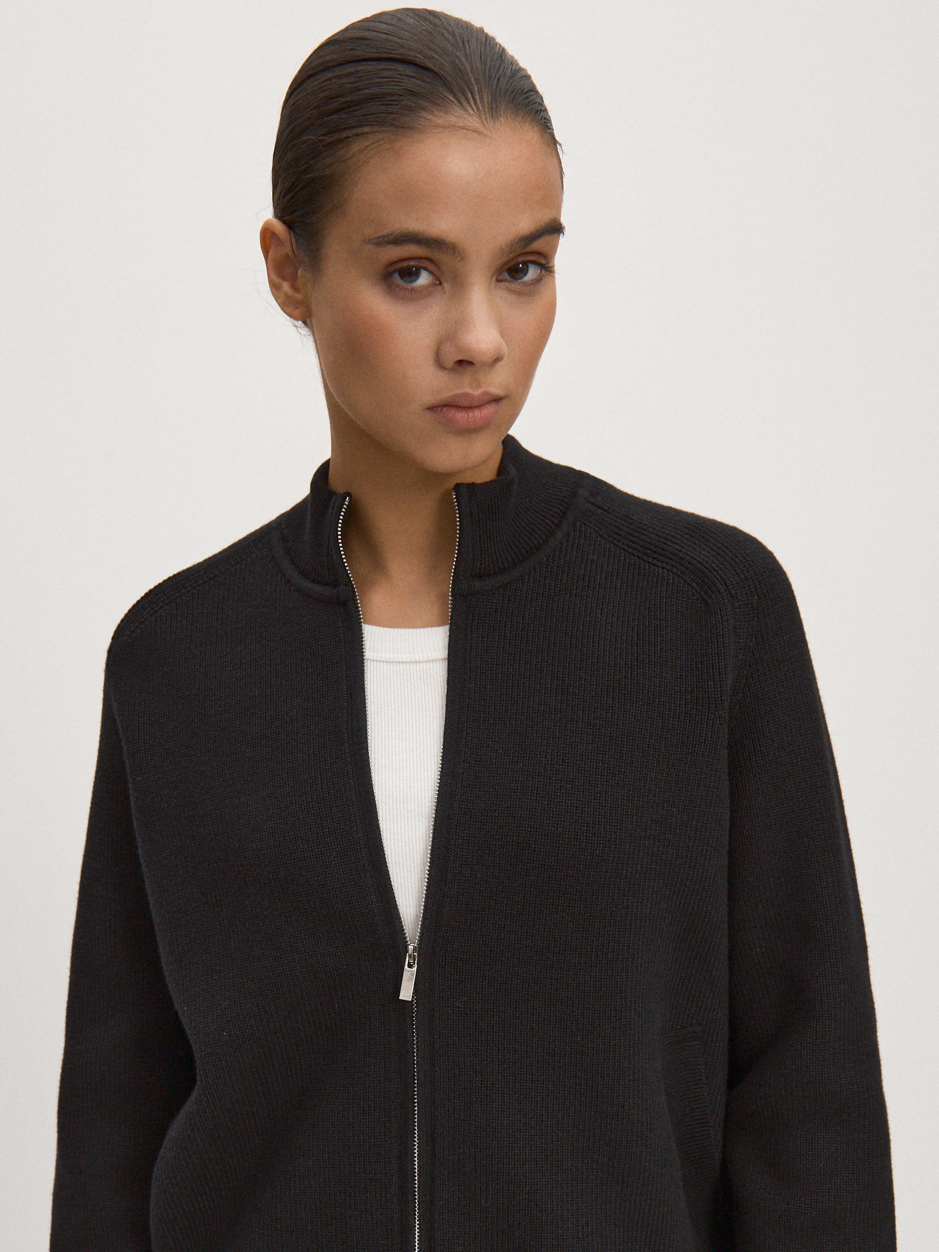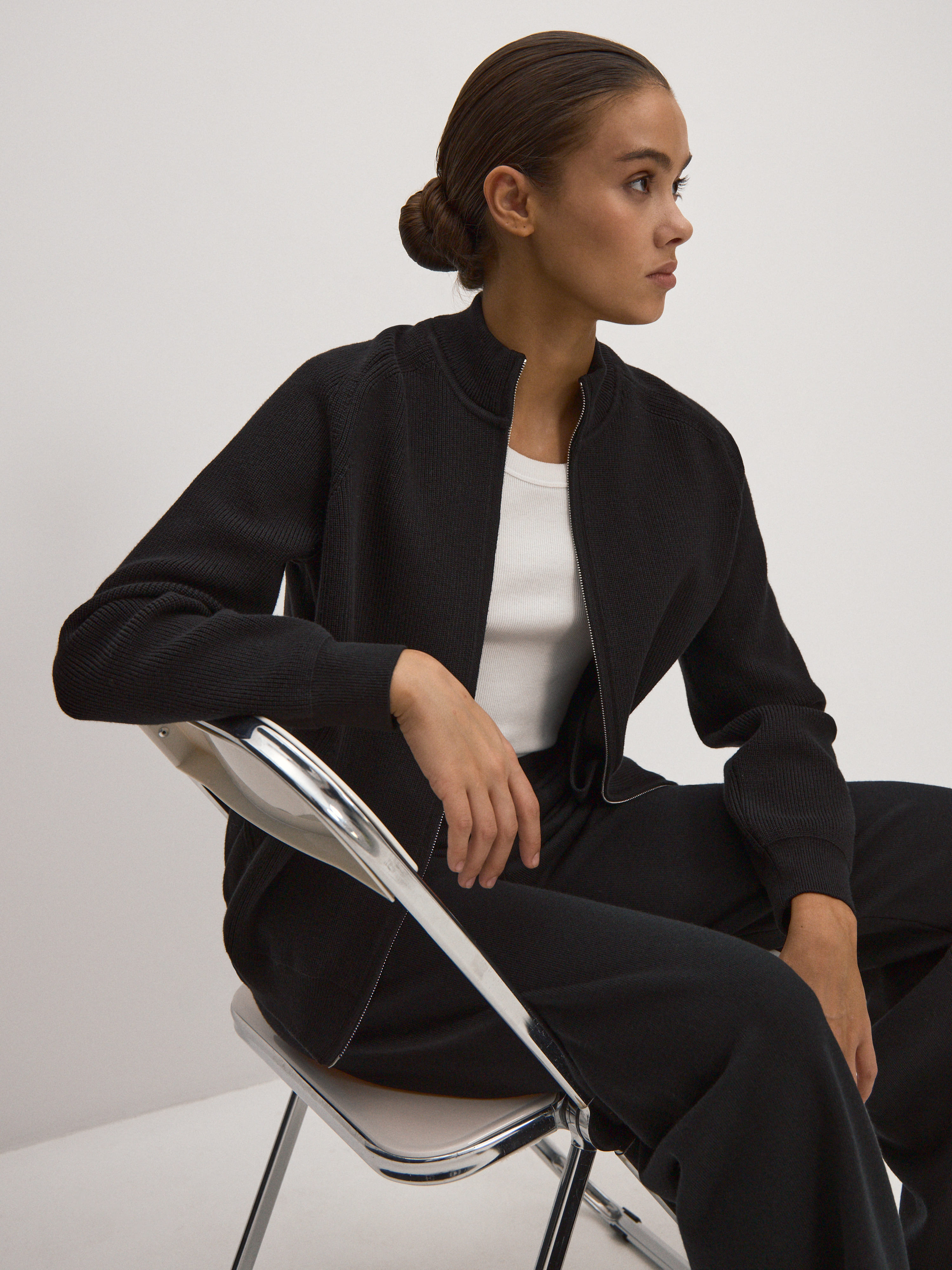 Лаконичный вязаный бомбер, созданный как альтернатива легким ветровкам. В составе джемпера – комфортная пряжа с хлопком. Главные отличия модели от остальных бомберов MONONAME – рукава реглан, удлиненный крой и высокий воротник-стойка. Модель одинаково легко «включается» в стритстайл-капсулы и в нейтральные офисные образы. Усиление хлопковой нити вискозой повысило эстетические характеристики и снизило рыхлость трикотажного полотна.