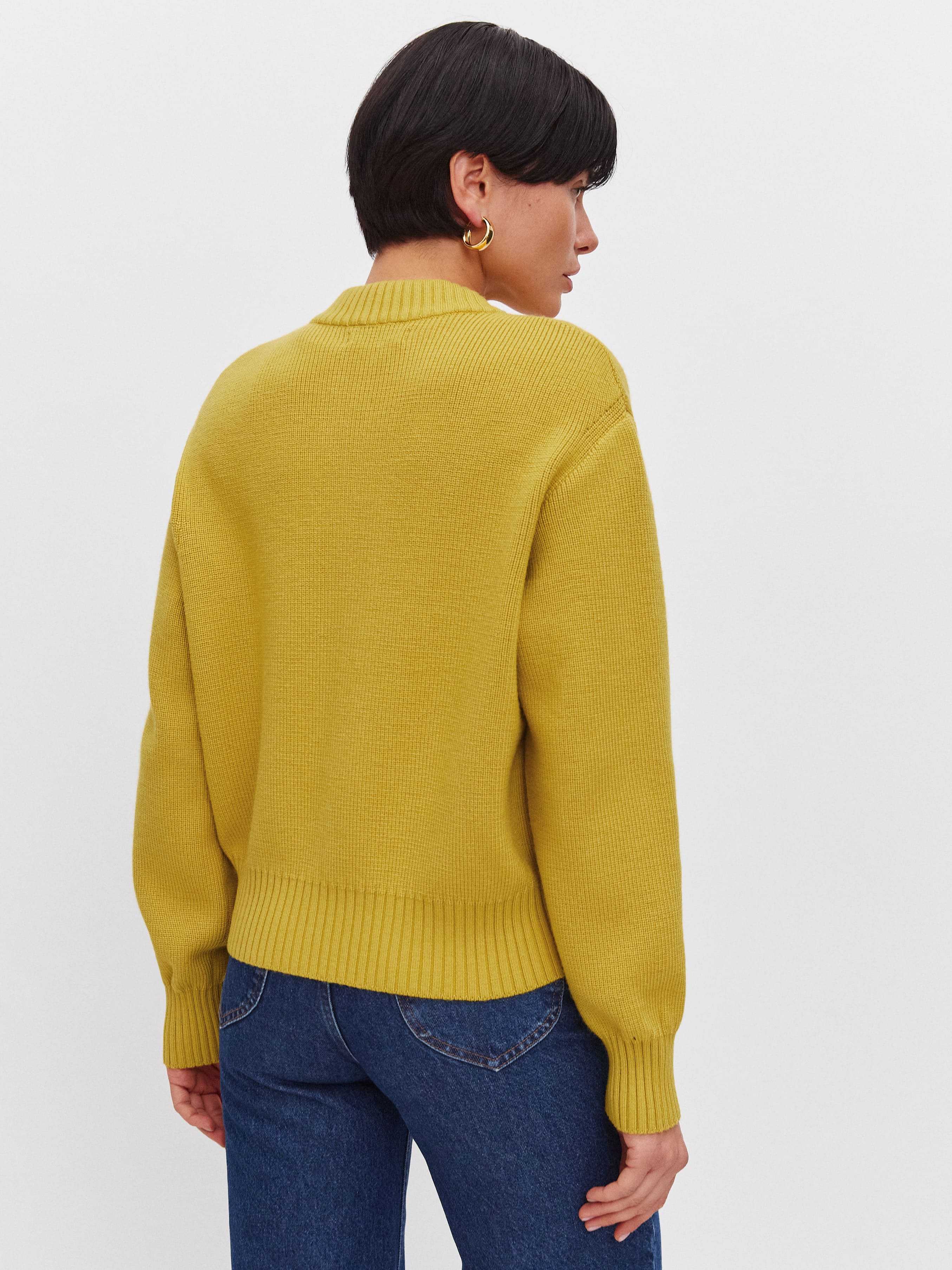 Плотный шерстяной бомбер спокойной расцветки – это одежда для дней, которые хочется посвятить только себе. Молния с двойным ходом корректирует расслабленность образа. Натуральный состав пряжи дарит уютное тепло и чувство приятной защищенности. Под джемпер рекомендуем вещи из тонкого хлопка. Они нейтрализуют покалывающий эффект натуральных шерстинок и создадут дополнительную воздушную капсулу между телом и трикотажем.