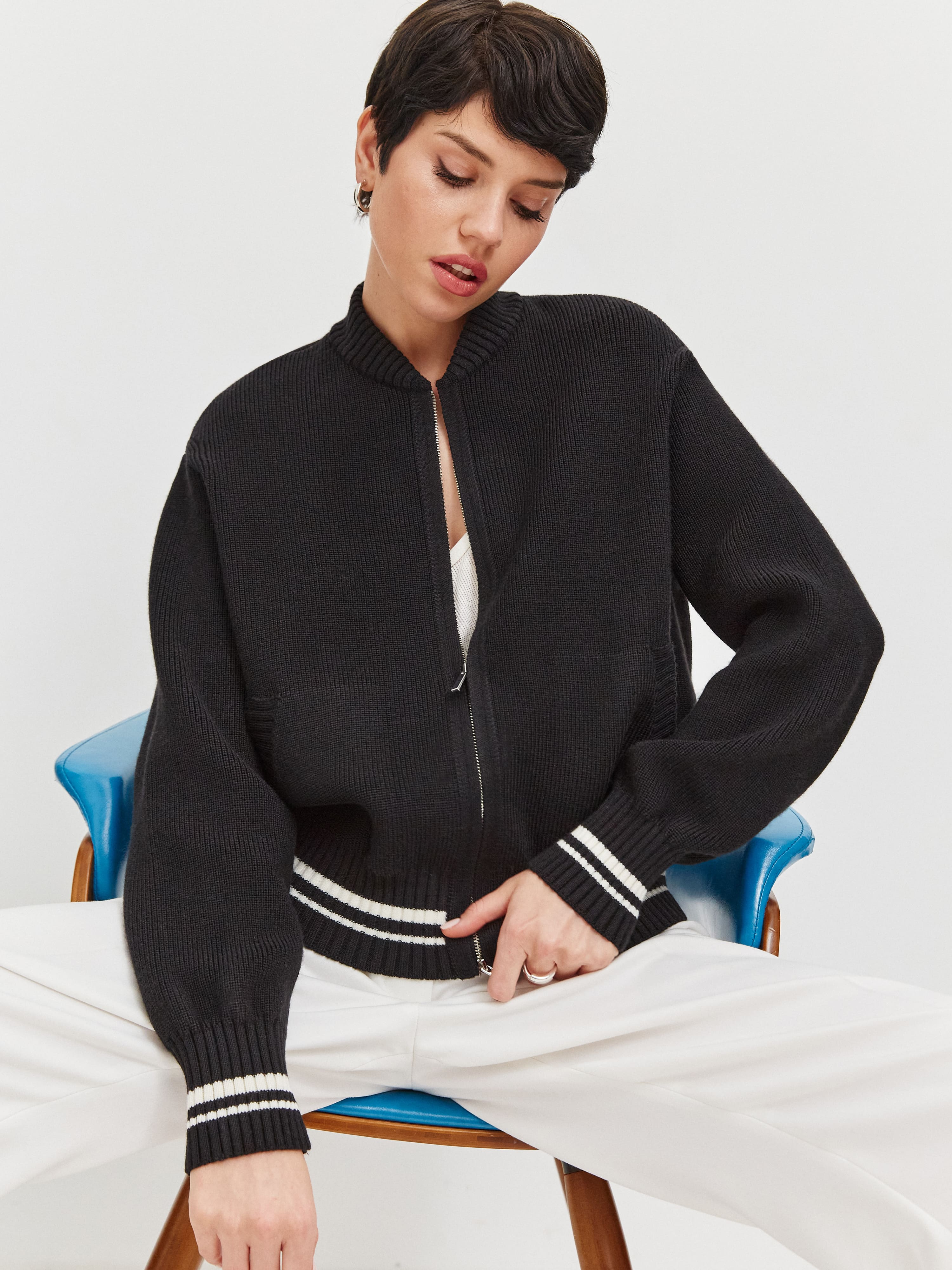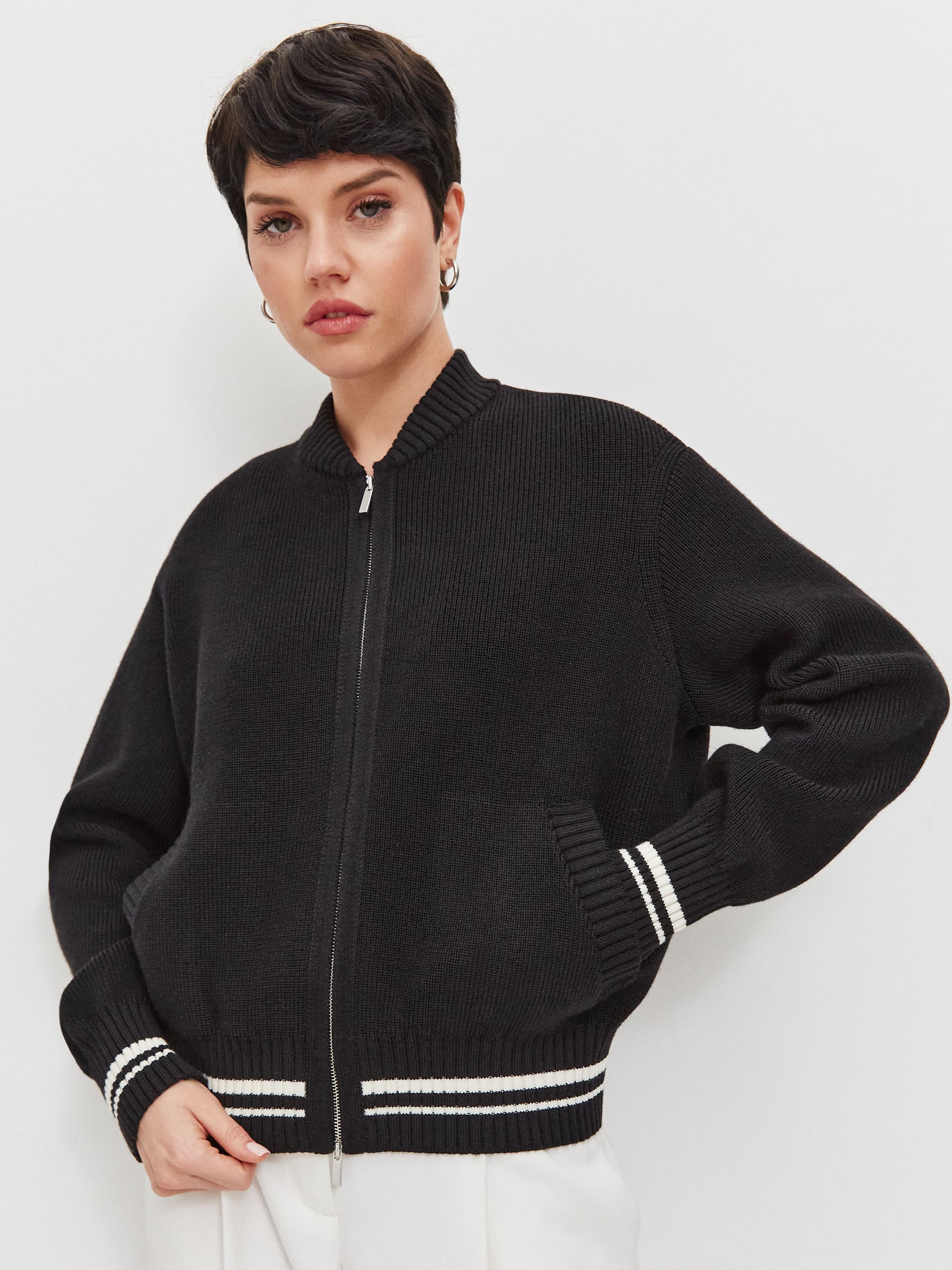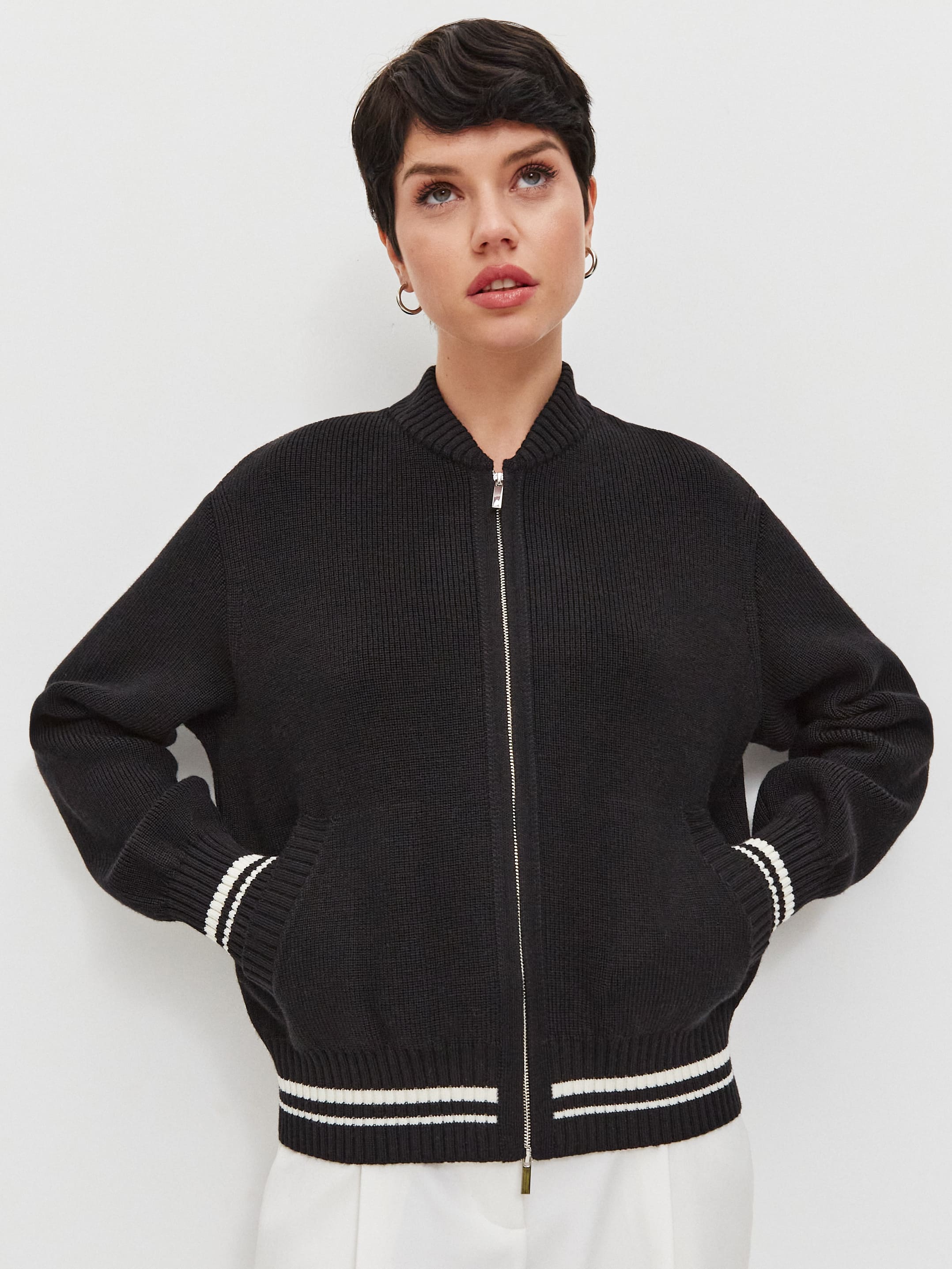 Эльба джемпер (бомбер) трикотажный (черный/белый, 44-46)