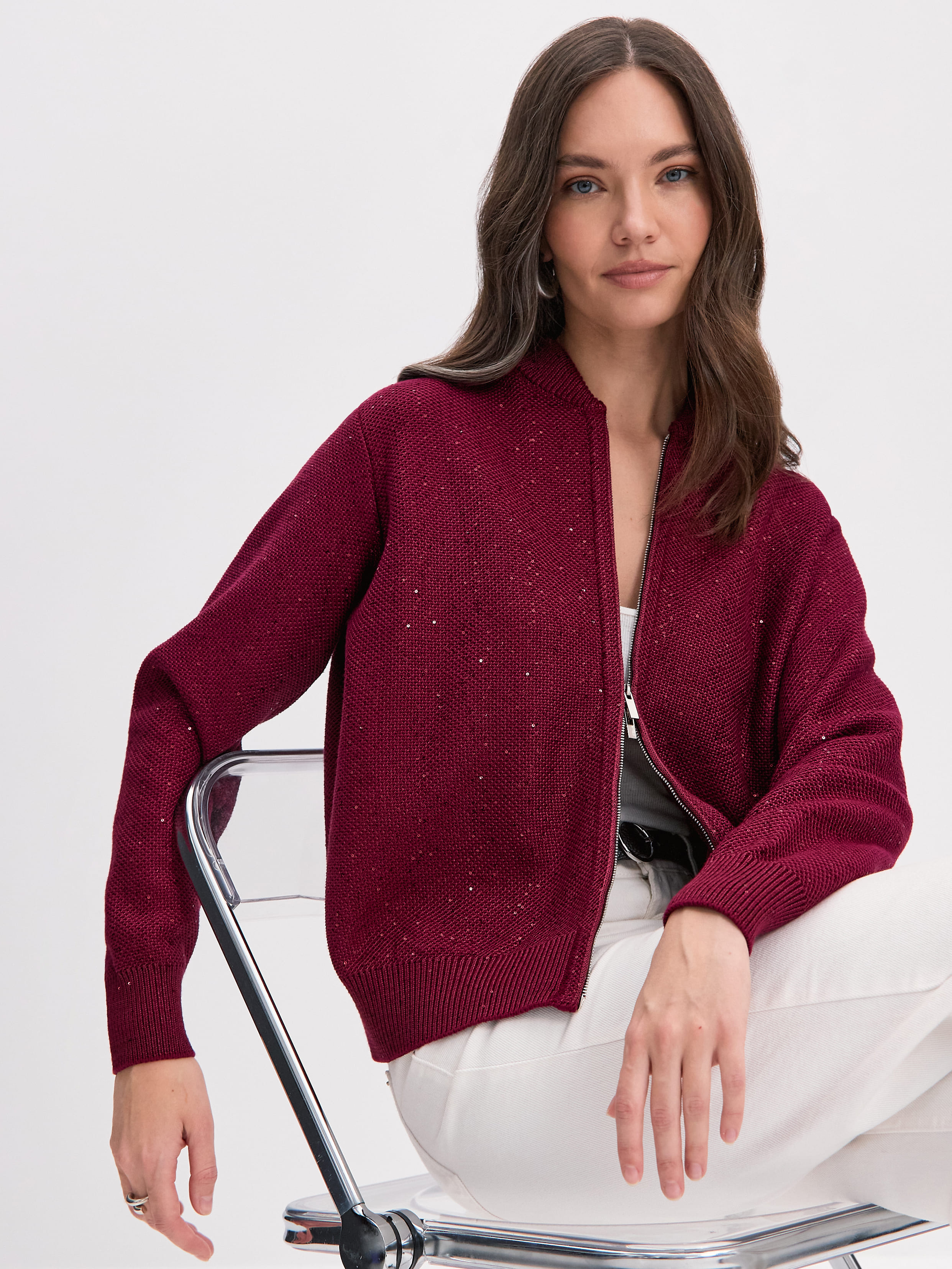 Рио кардиган (бомбер) трикотажный (бордо, 44-46)