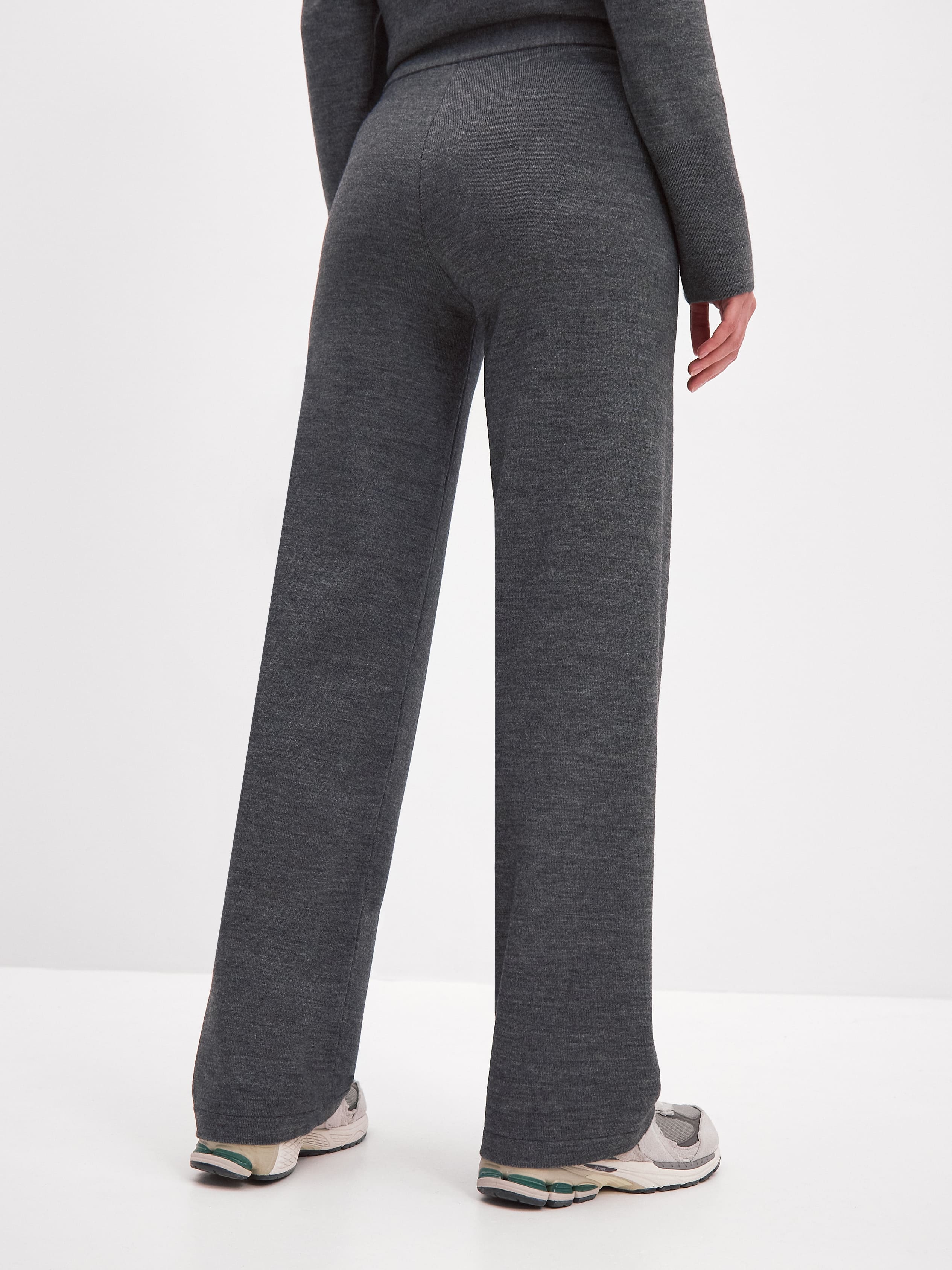 Лаконичные базовые брюки палаццо из мягкой полушерсти – это история про легкую расслабленность и уютное тепло в хмурые осенние дни. Кулиску на талии можно затянуть на максимум или оставить в свободном состоянии для более комфортных ощущений. И не волнуйтесь за формоустойчивость. Мы включили в трикотаж сверхпрочную модифицированную вискозу, предохраняющую структуру брюк от неэстетичных деформаций.