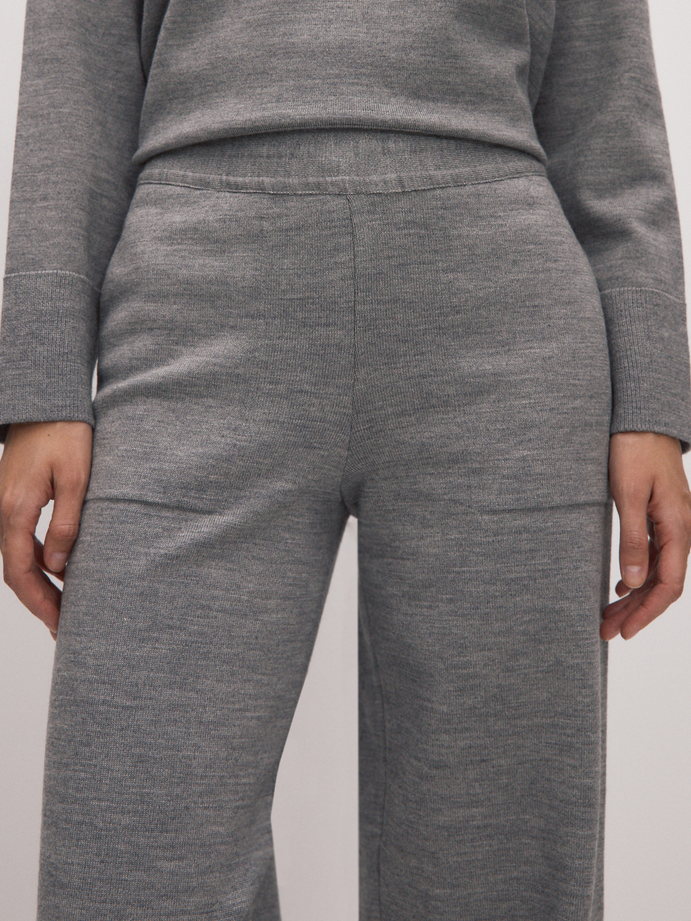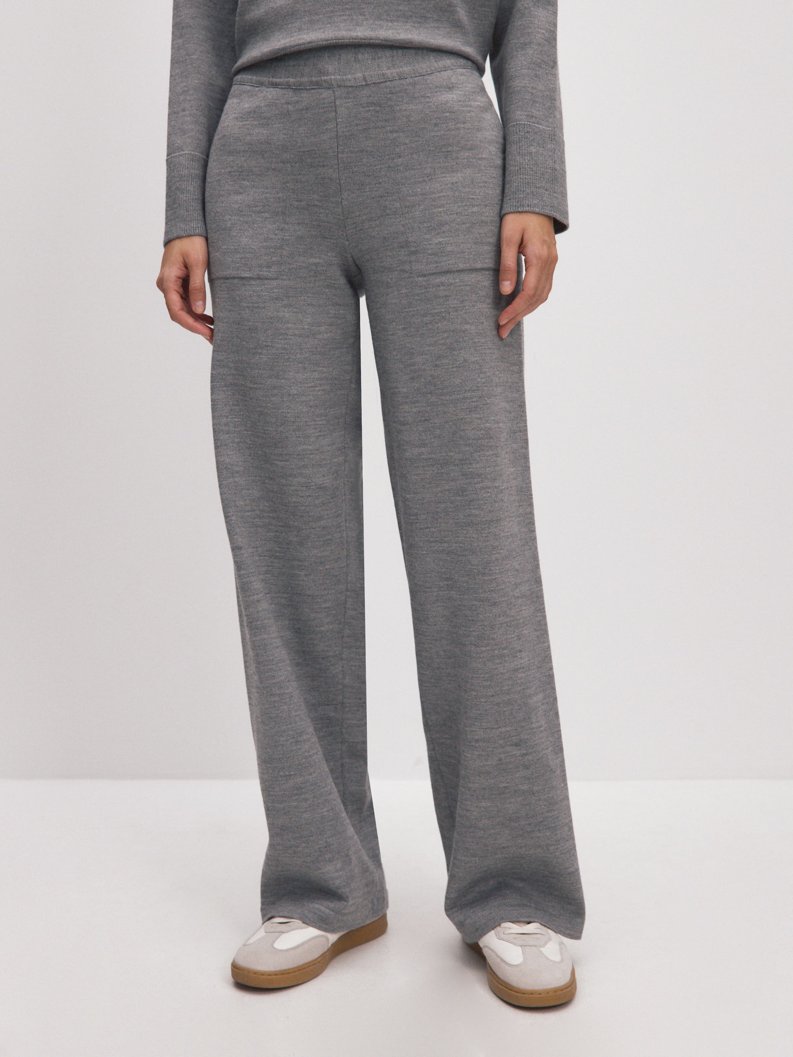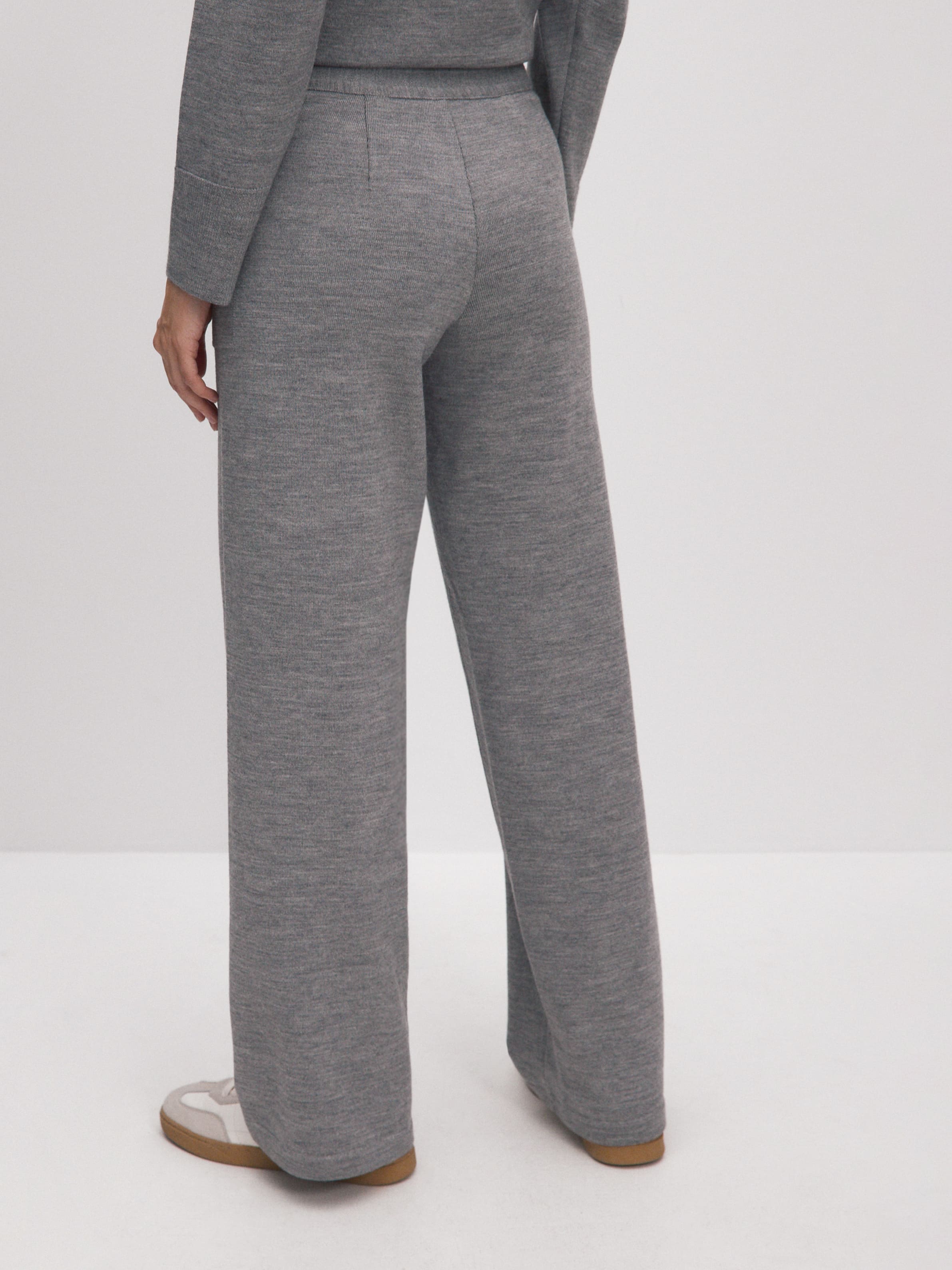 Свободные прямые брюки из трикотажа плотного плетения. Всесезонная база, преимущества которой раскрываются с первым похолоданием. Создадут гармоничный осенний сет с жакетами и бомберами бренда. Основной материал брюк: мериносовая шерсть в равных пропорциях с вискозой. Каждый тип волокон выполняет отдельную задачу. Меринос удерживает тепло, проводит воздух, испаряет влагу с тела. Вискоза выступает в качестве смягчителя шерсти, защищает от перегрева.