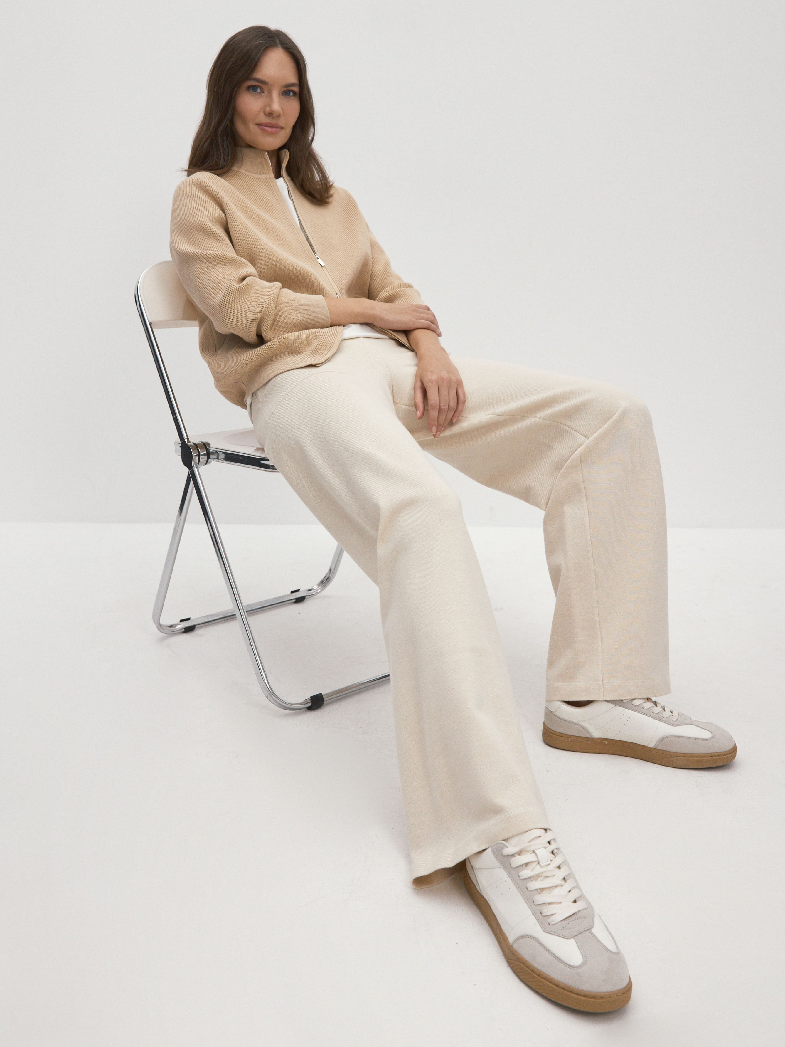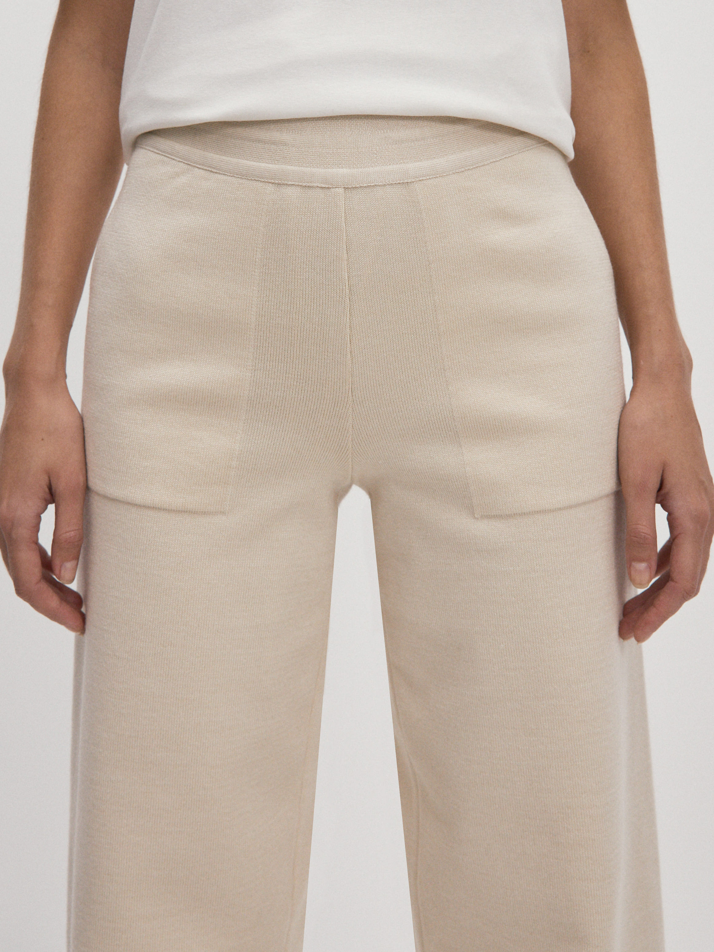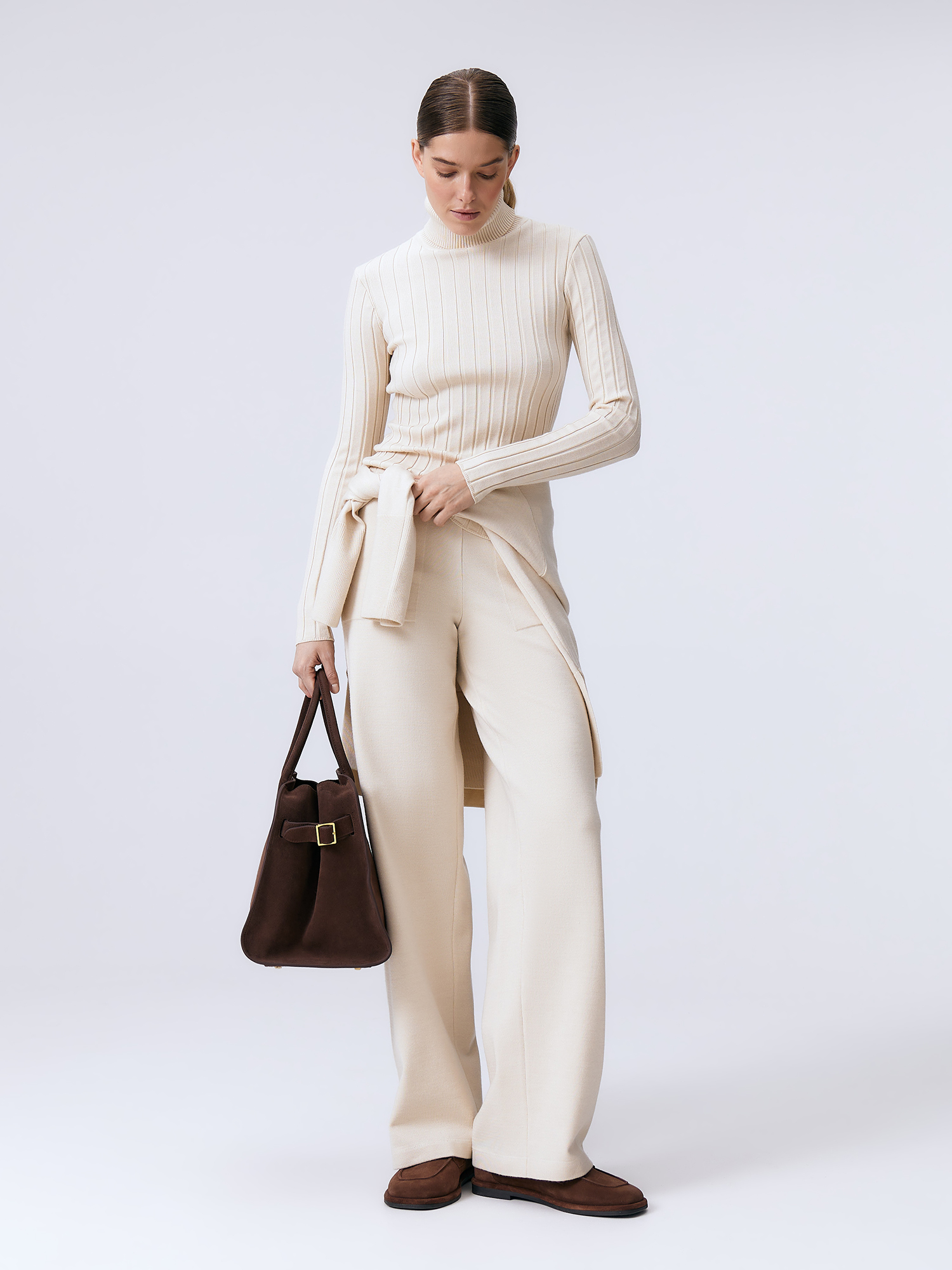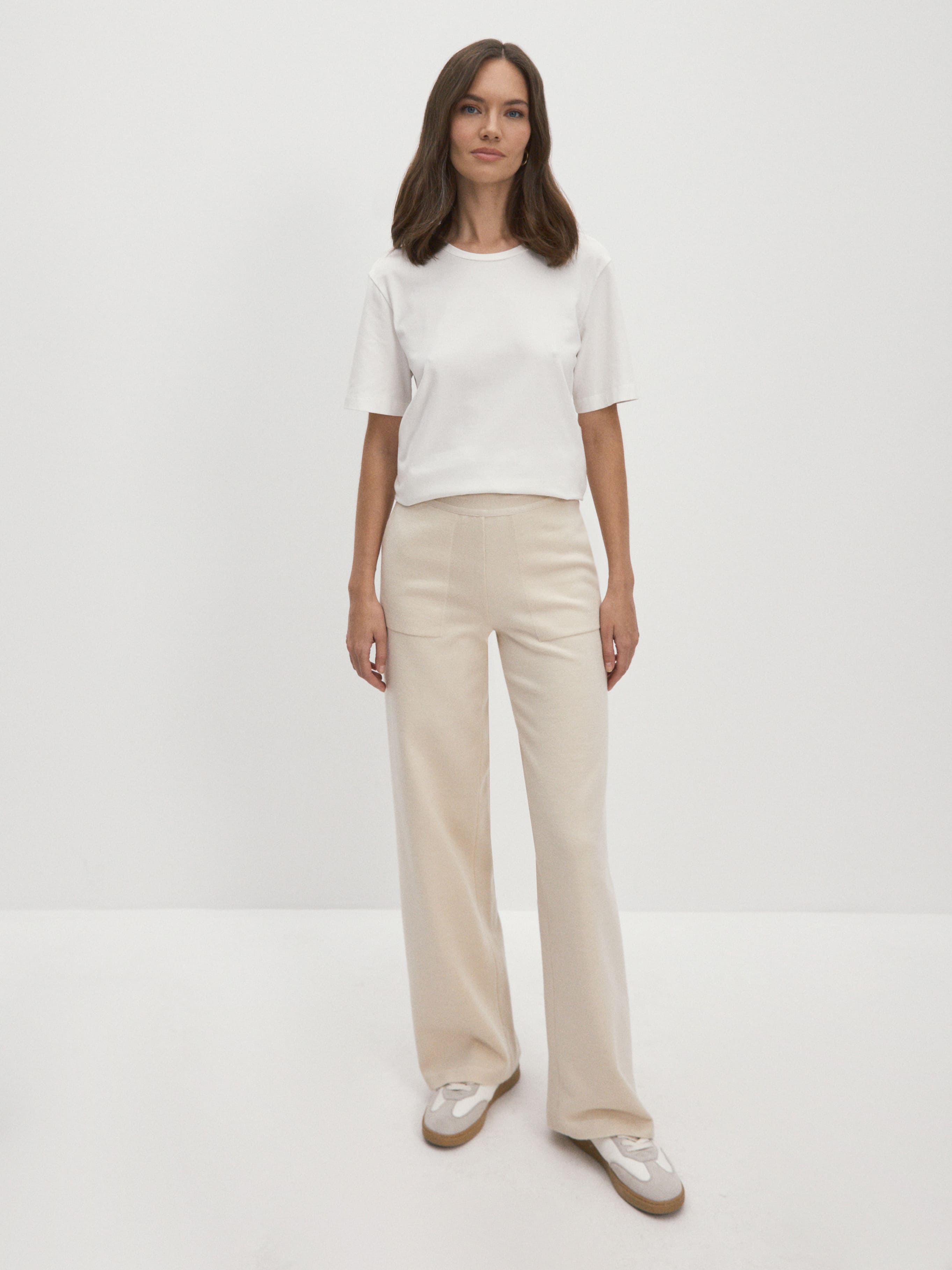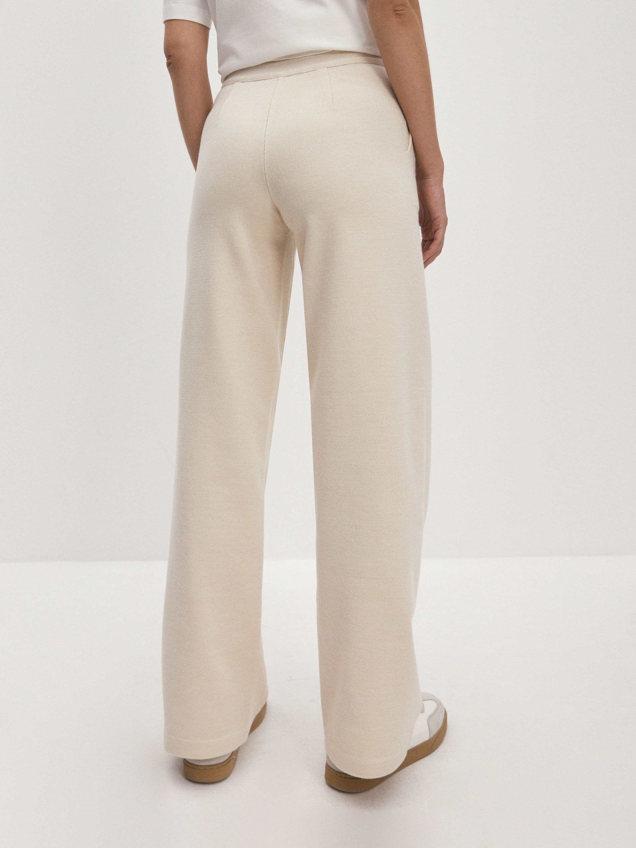 Свободные прямые брюки из трикотажа плотного плетения. Всесезонная база, преимущества которой раскрываются с первым похолоданием. Создадут гармоничный осенний сет с жакетами и бомберами бренда. Основной материал брюк: мериносовая шерсть в равных пропорциях с вискозой. Каждый тип волокон выполняет отдельную задачу. Меринос удерживает тепло, проводит воздух, испаряет влагу с тела. Вискоза выступает в качестве смягчителя шерсти, защищает от перегрева.