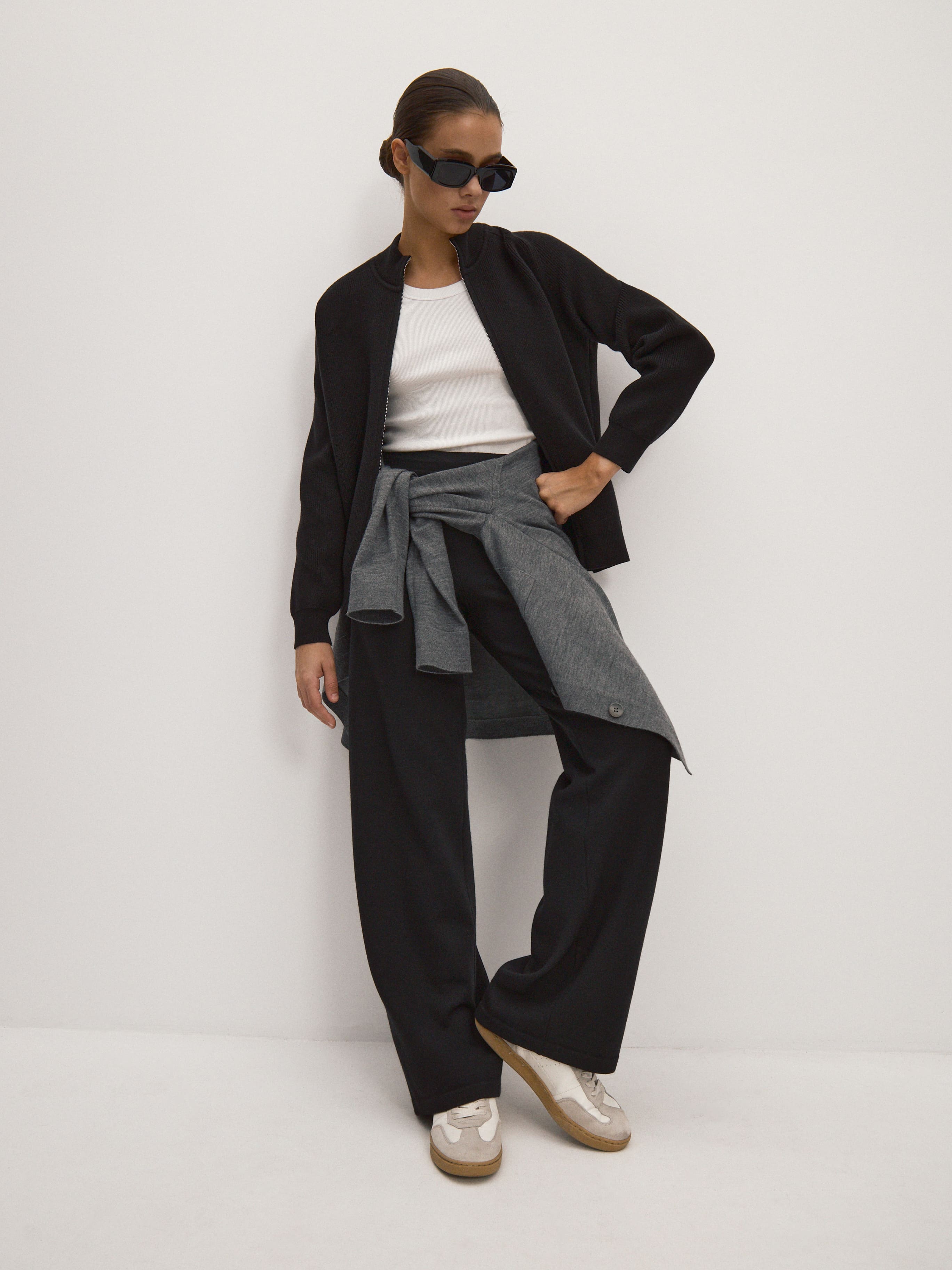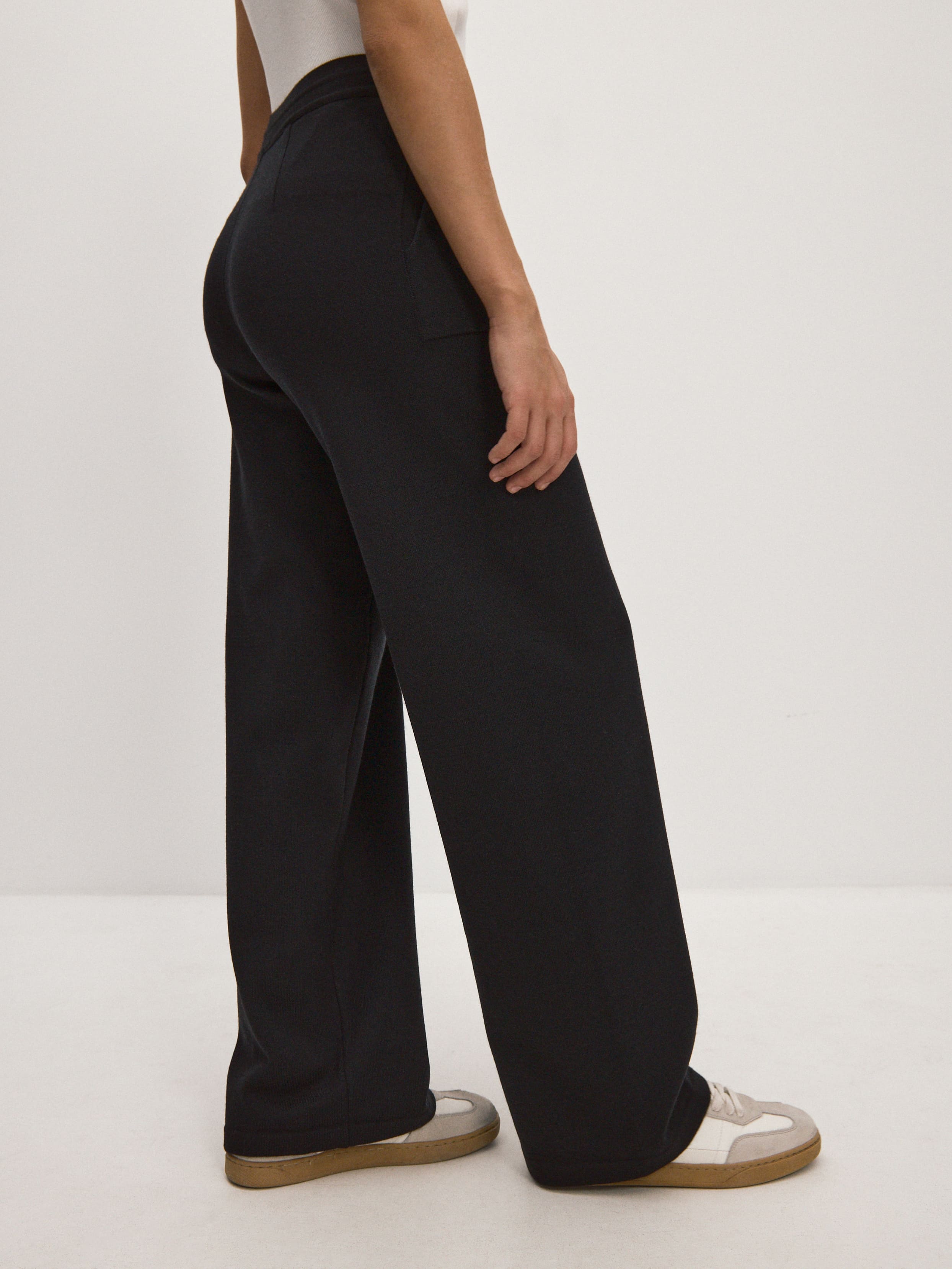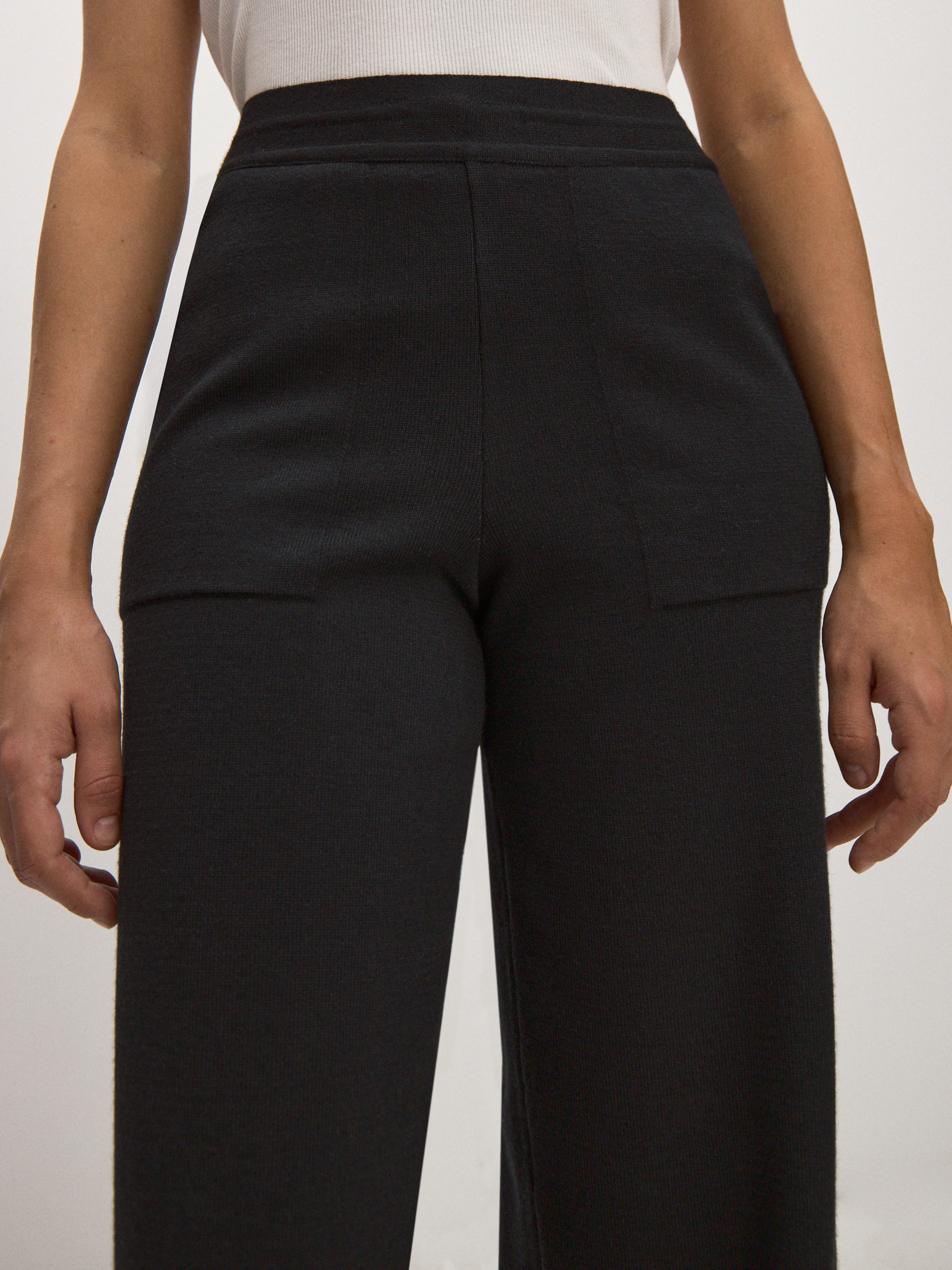Свободные прямые брюки из трикотажа плотного плетения. Всесезонная база, преимущества которой раскрываются с первым похолоданием. Создадут гармоничный осенний сет с жакетами и бомберами бренда. Основной материал брюк: мериносовая шерсть в равных пропорциях с вискозой. Каждый тип волокон выполняет отдельную задачу. Меринос удерживает тепло, проводит воздух, испаряет влагу с тела. Вискоза выступает в качестве смягчителя шерсти, защищает от перегрева.