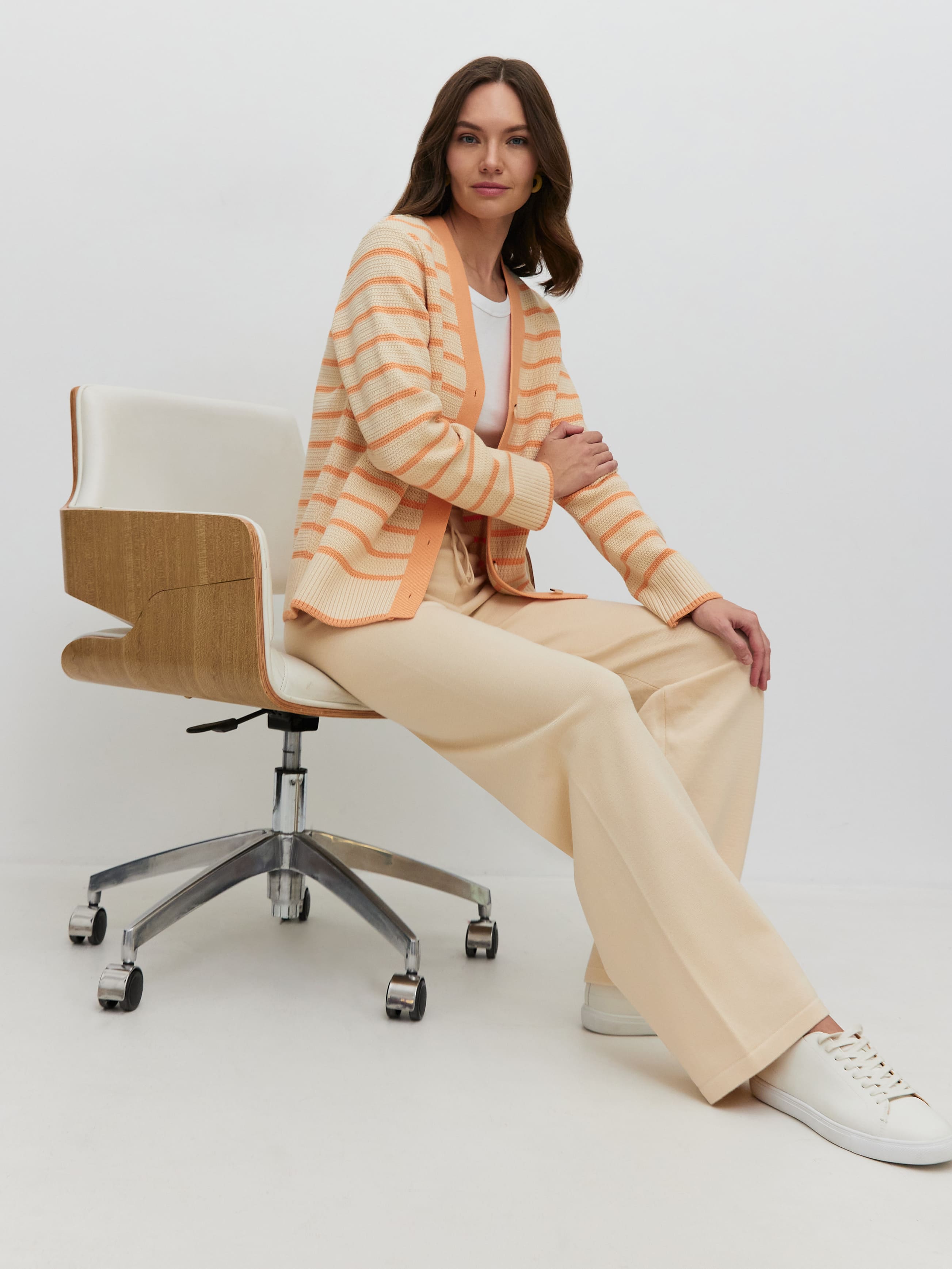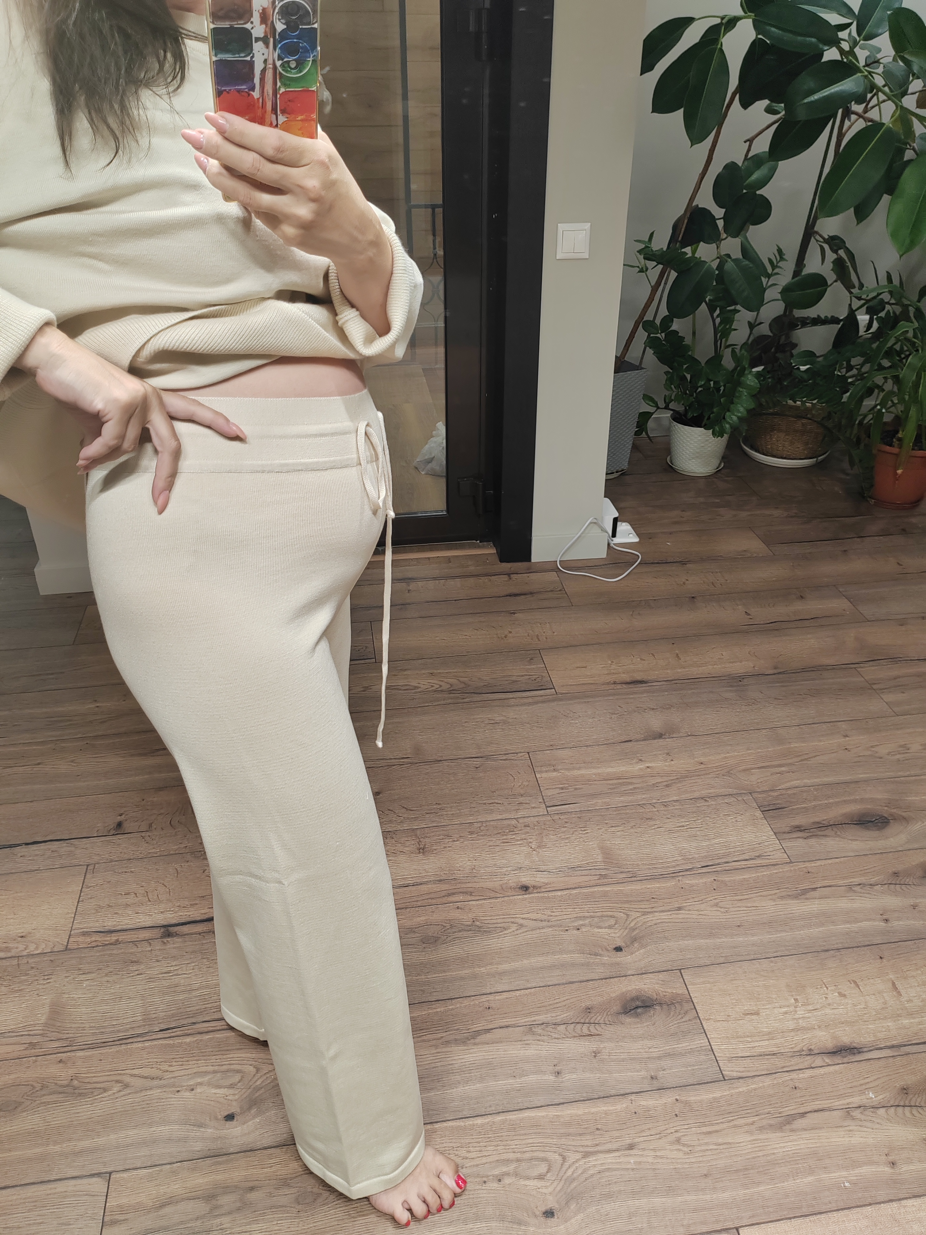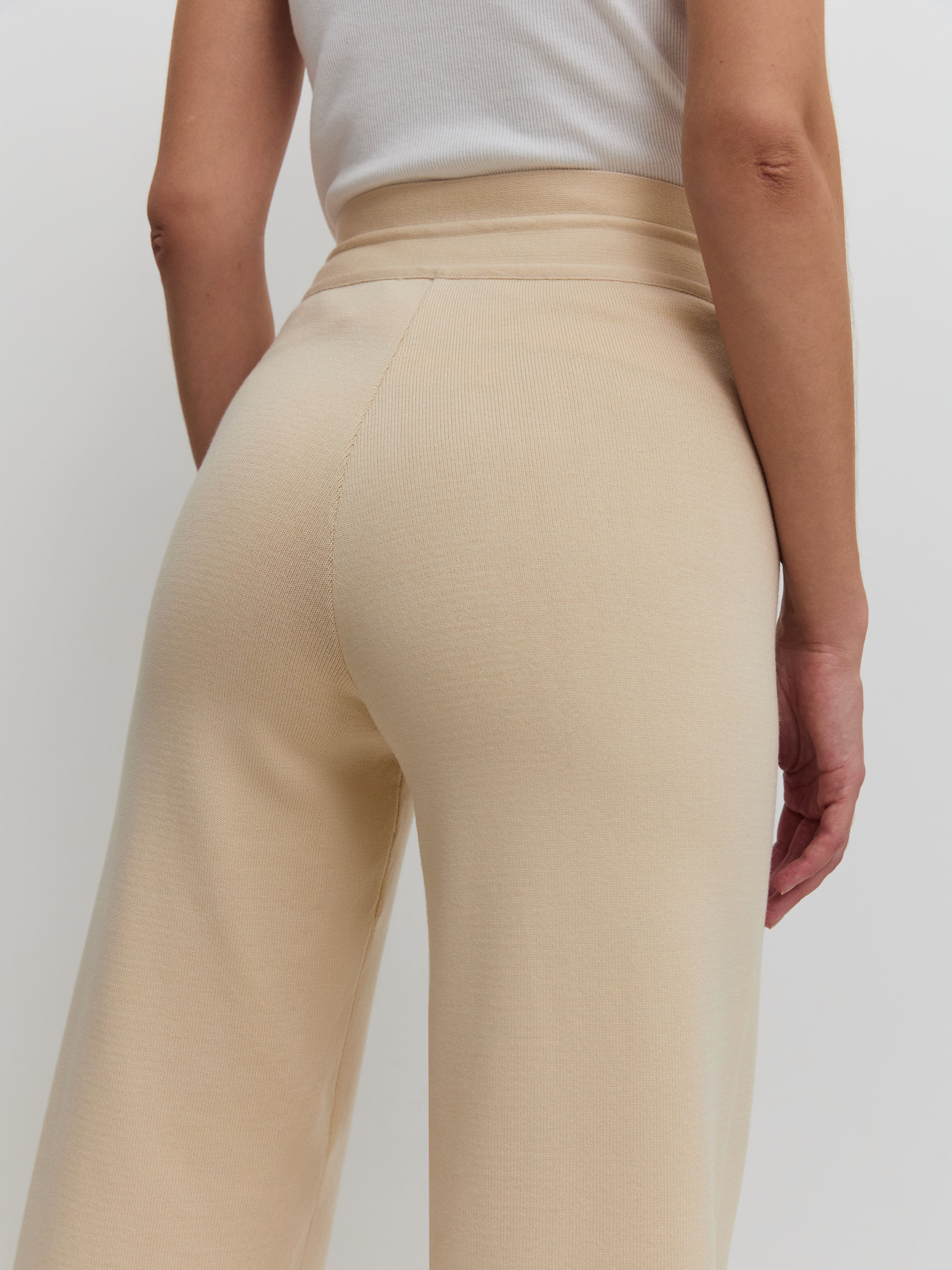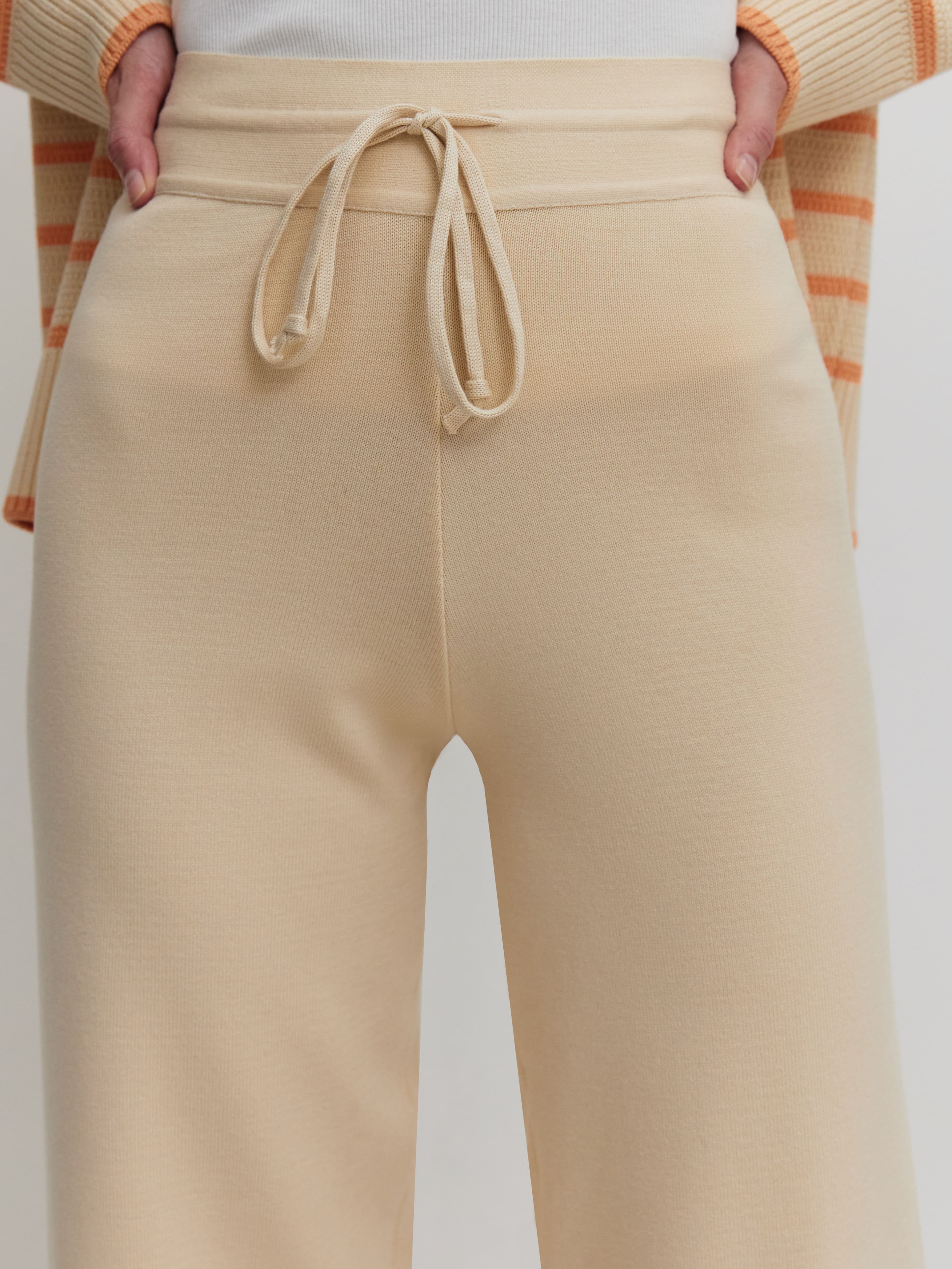 Эти комфортные брюки из круизной коллекции зададут правильное настроение летнему отпуску и морским прогулкам. Выполнены из нежной шелковистой пряжи с хлопком и вискозой, оставляющими ощущение приятного холодка на коже. В сочетании с кроп-топами из нашей весенней линейки украсят собой и вечеринку на яхте, и свидание с бойфрендом в южной кофейне.