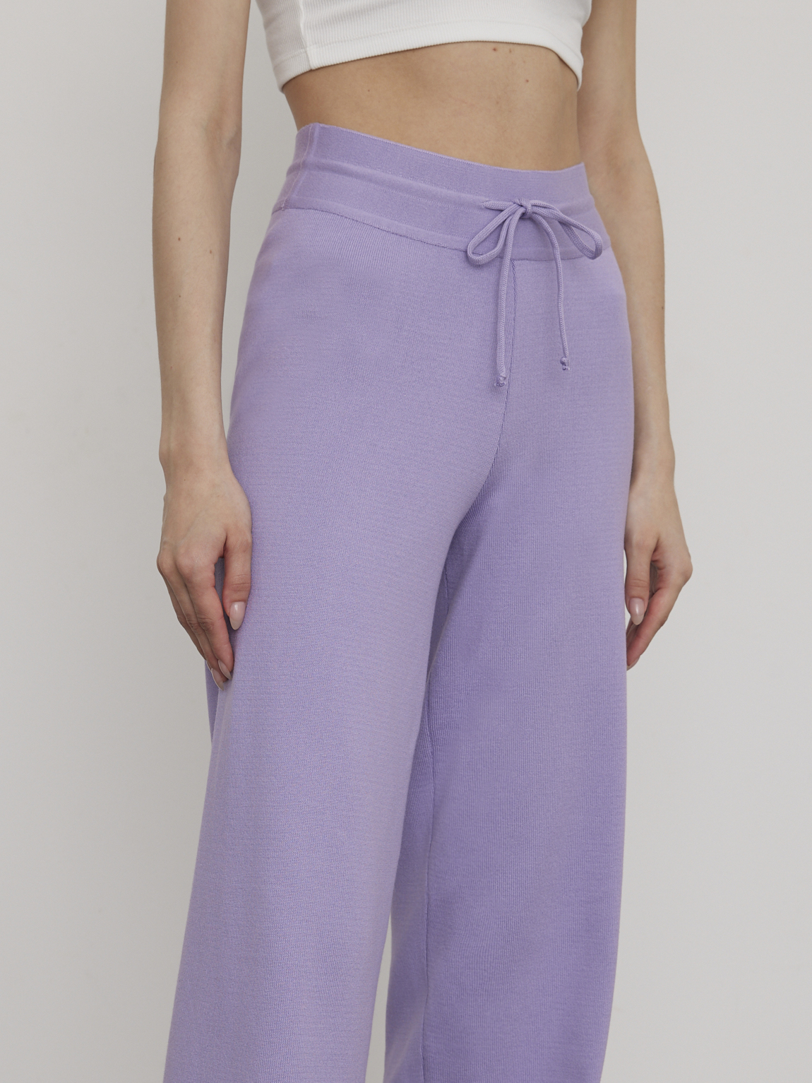 Эти комфортные брюки из круизной коллекции зададут правильное настроение летнему отпуску и морским прогулкам. Выполнены из нежной шелковистой пряжи с хлопком и вискозой, оставляющими ощущение приятного холодка на коже. В сочетании с кроп-топами из нашей весенней линейки украсят собой и вечеринку на яхте, и свидание с бойфрендом в южной кофейне.