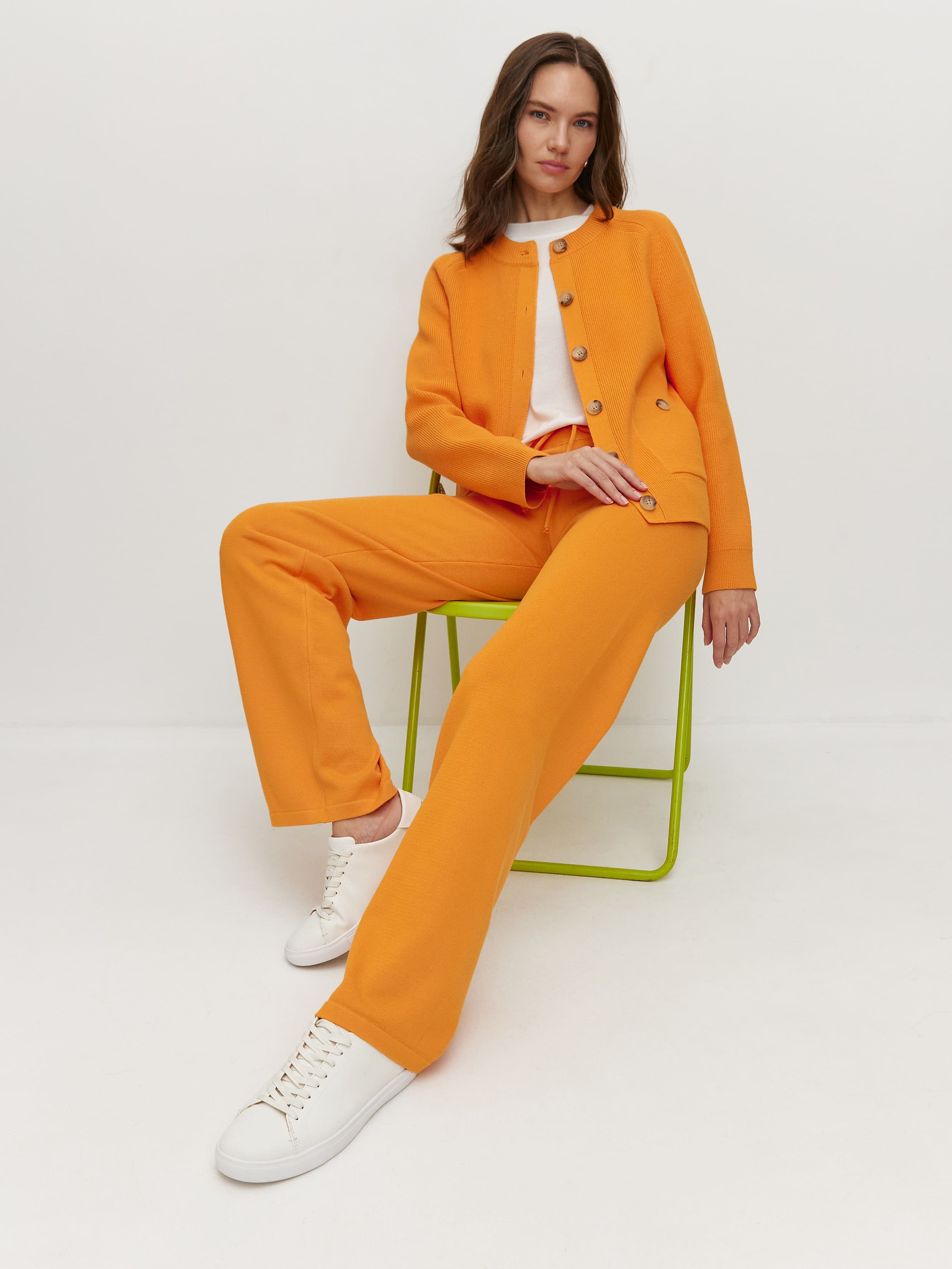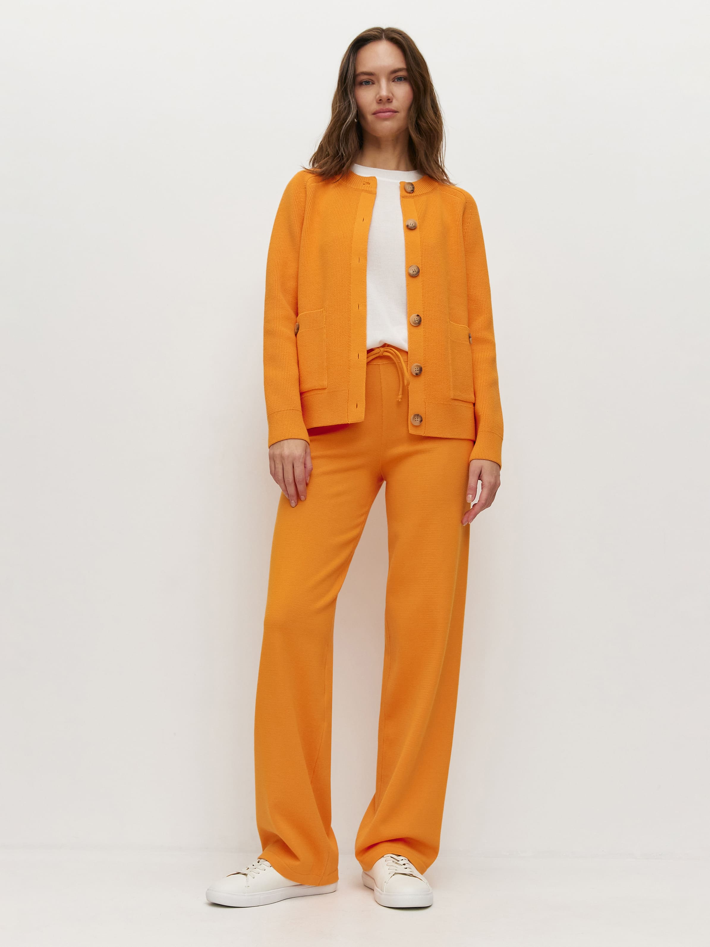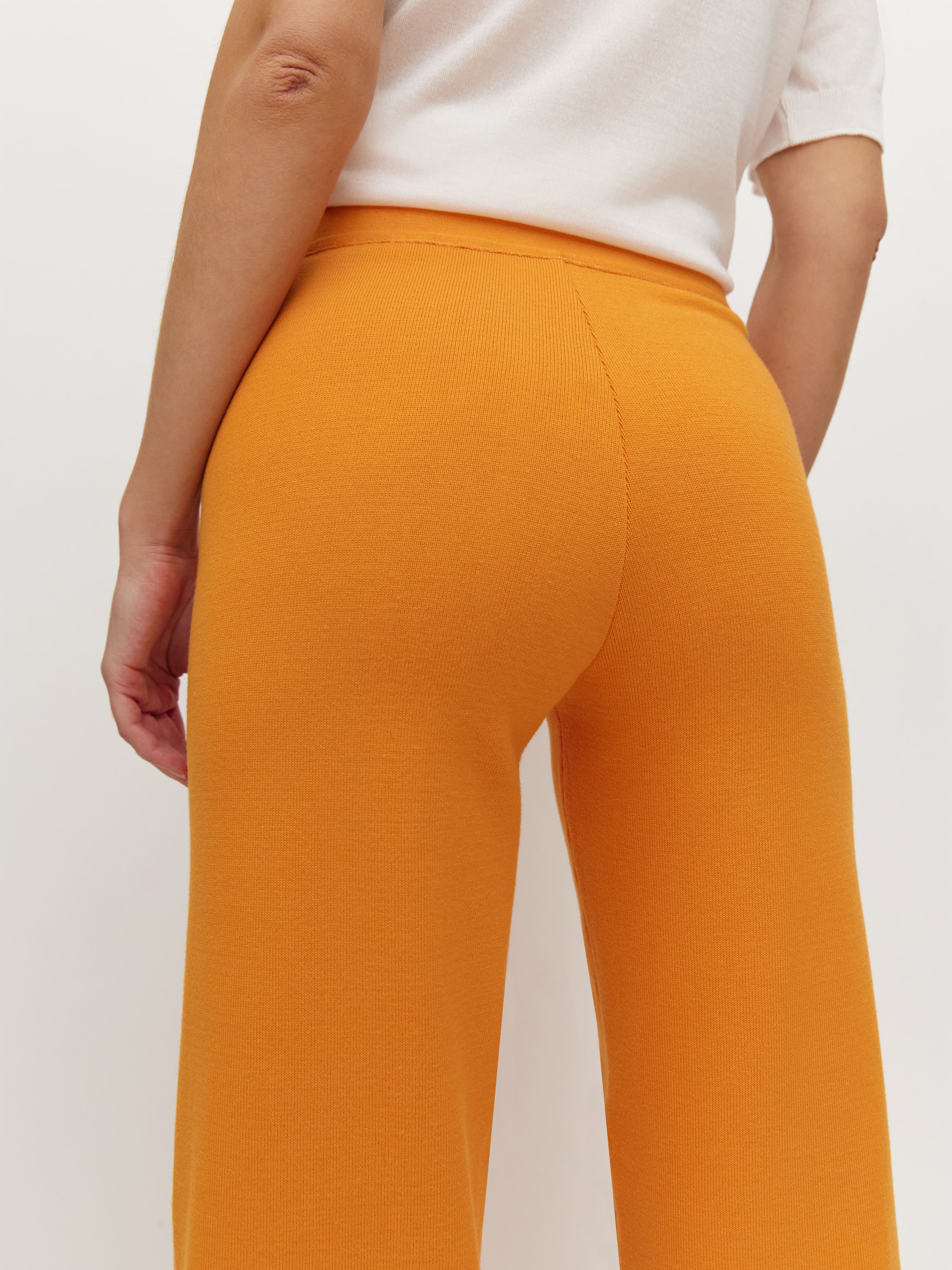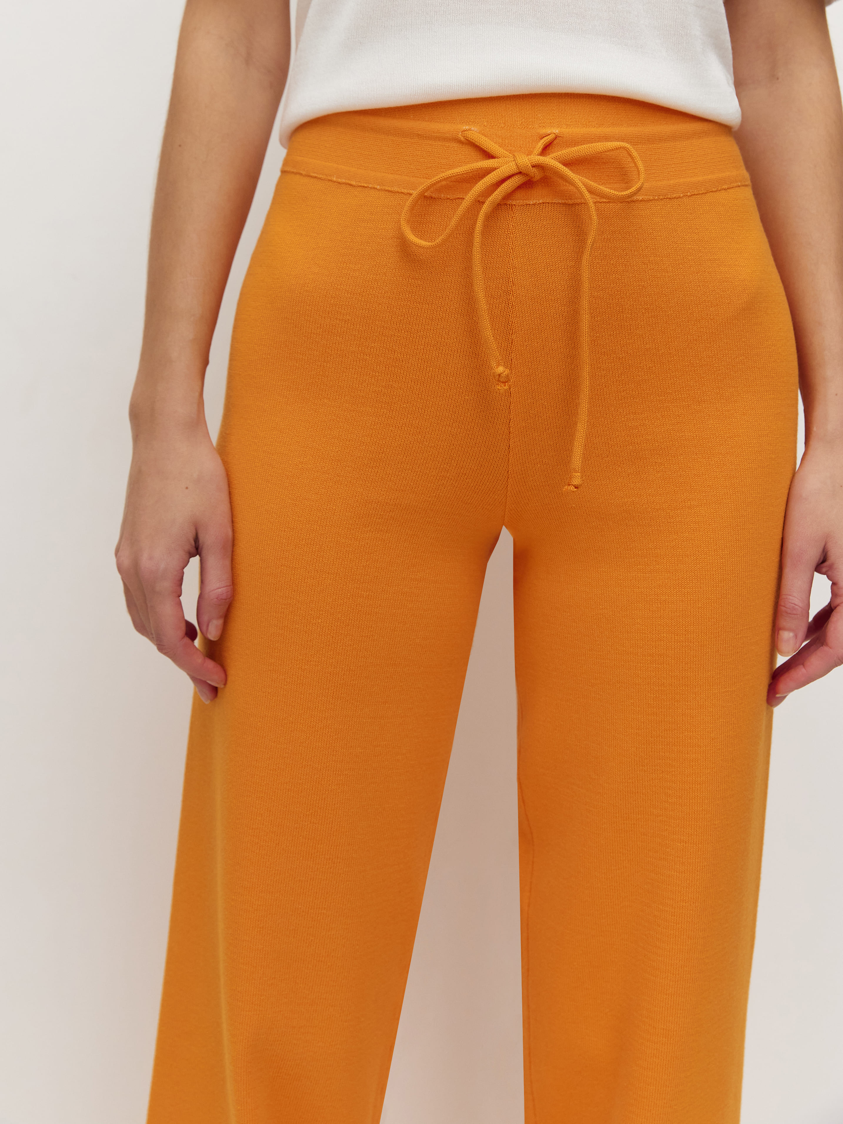 Эти комфортные брюки из круизной коллекции зададут правильное настроение летнему отпуску и морским прогулкам. Выполнены из нежной шелковистой пряжи с хлопком и вискозой, оставляющими ощущение приятного холодка на коже. В сочетании с кроп-топами из нашей весенней линейки украсят собой и вечеринку на яхте, и свидание с бойфрендом в южной кофейне.