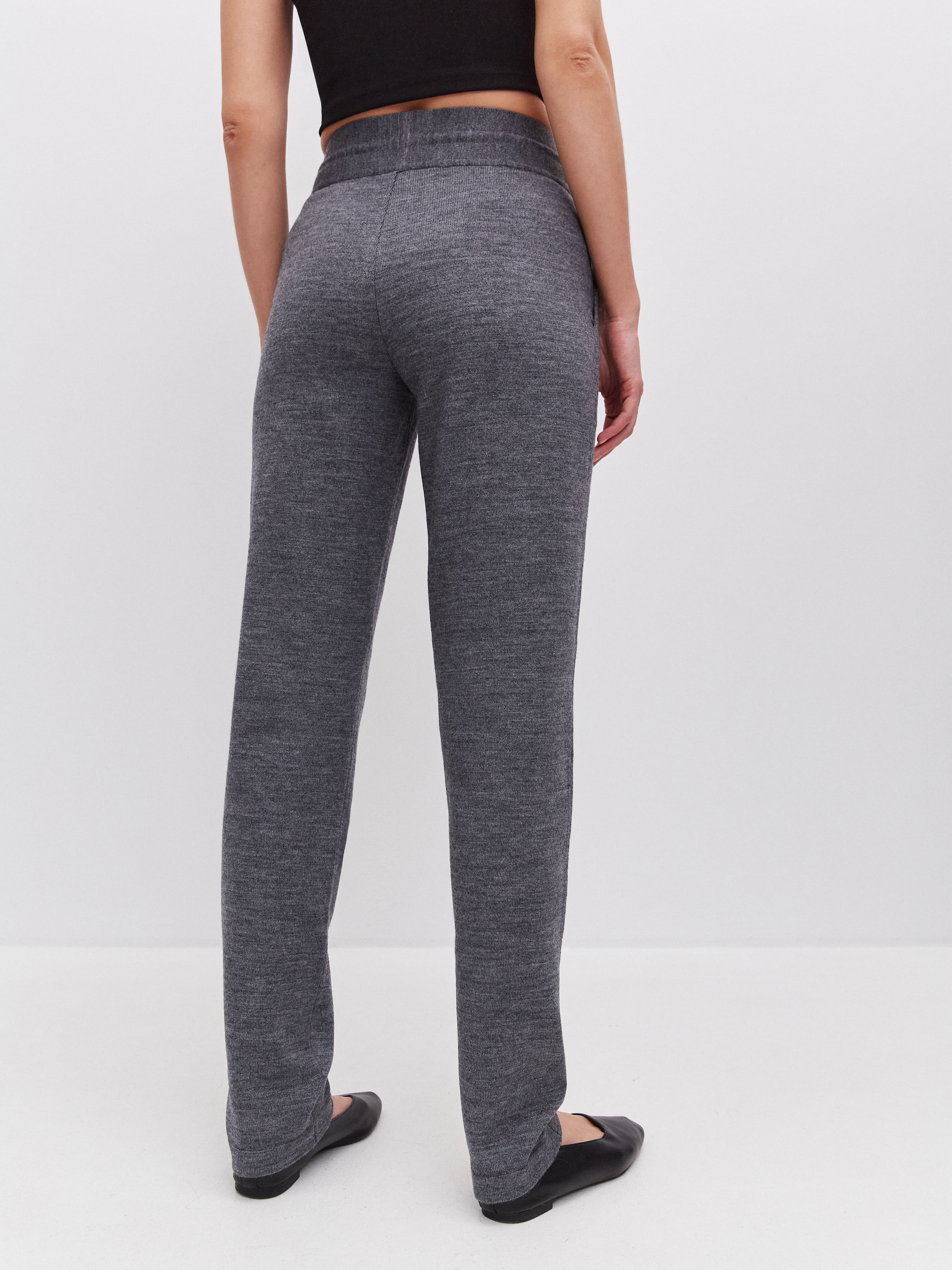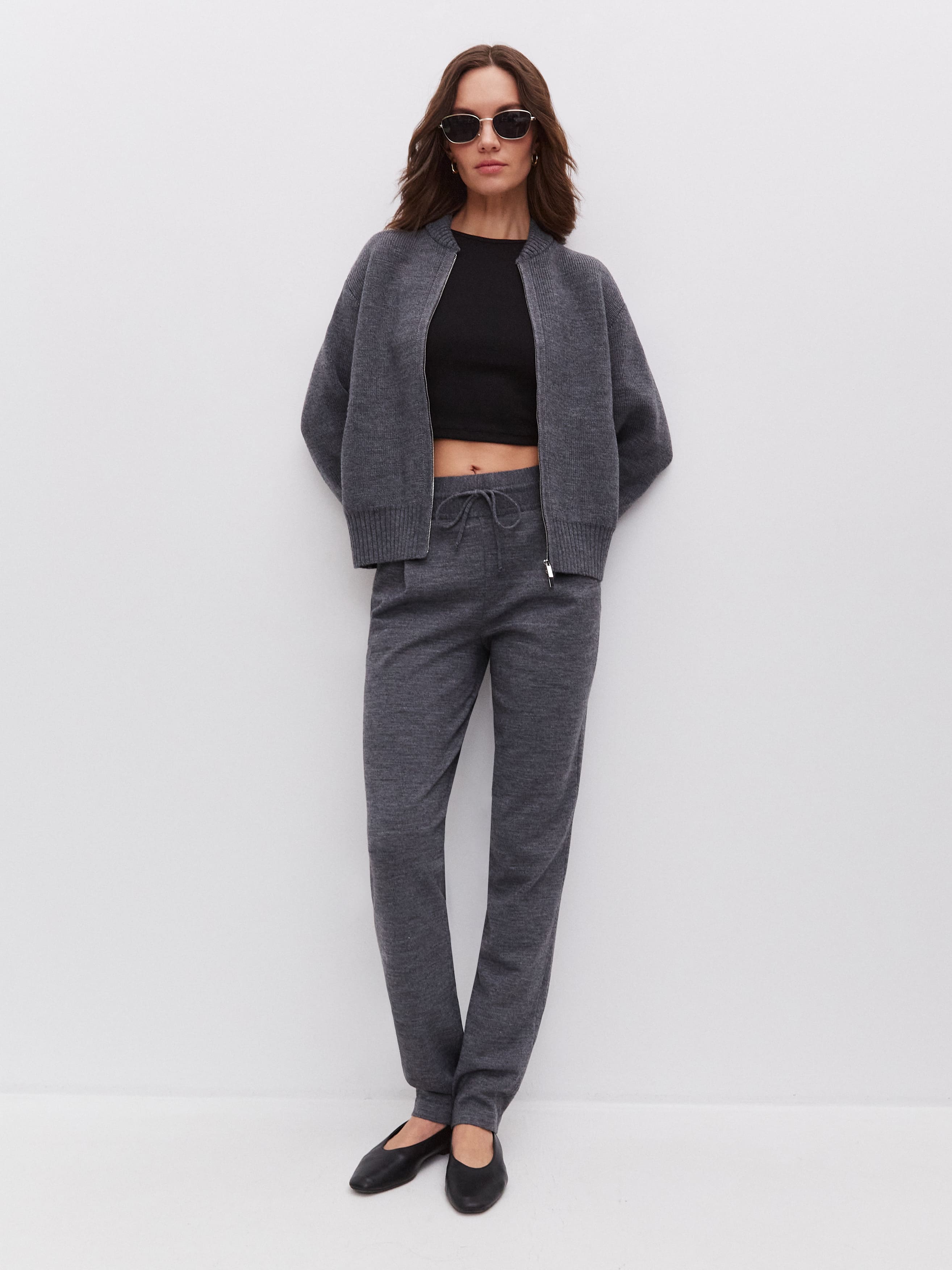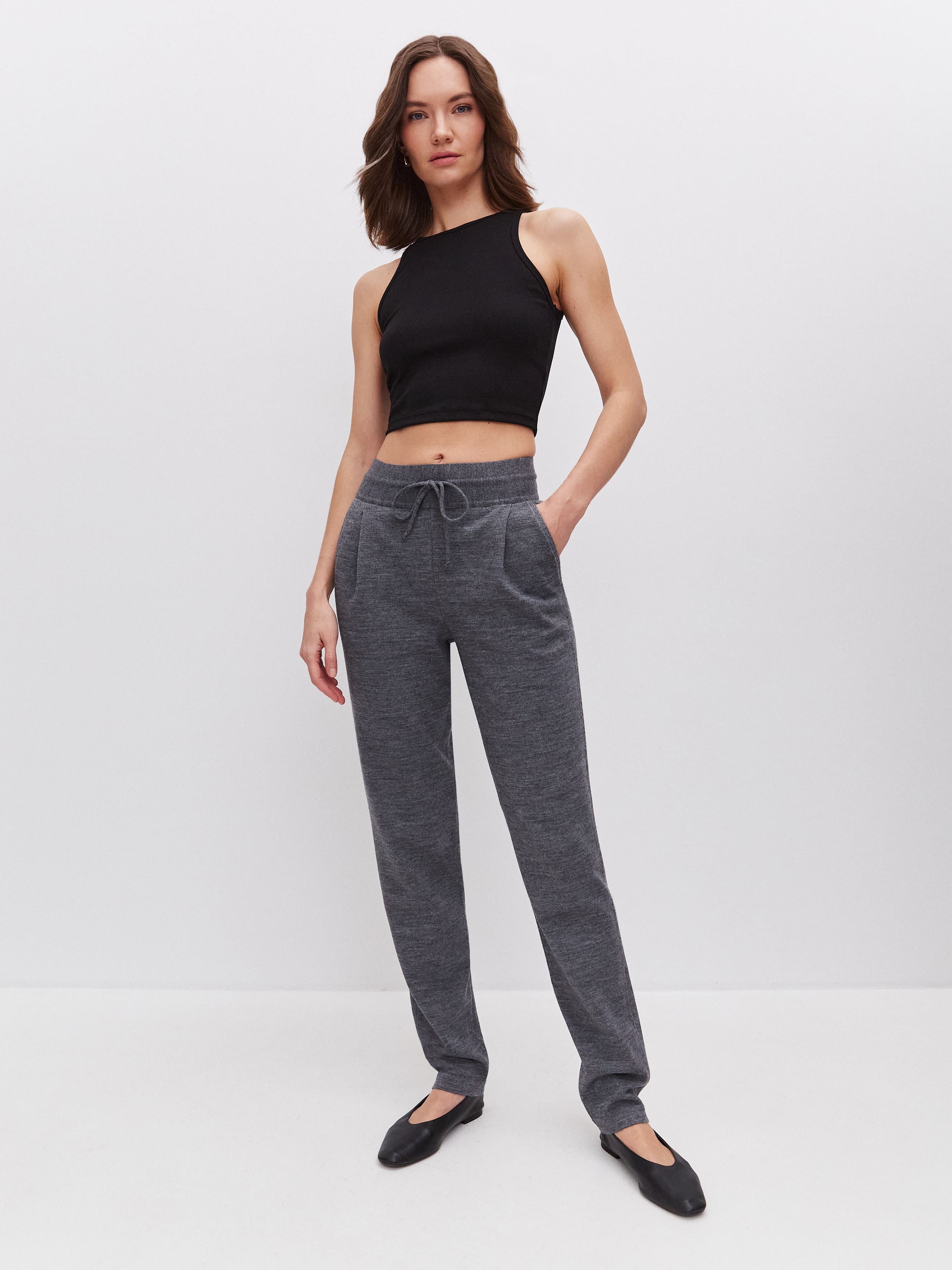 У этих теплых брючек багги есть два неоспоримых достоинства. Они выполнены из чесаной мериносовой шерсти и легко адаптируются под размер талии за счет кулиски. Защипы в верхней части и зауженные к низу брючины моделируют комфортный силуэт. От деформаций модель защищена полиамидом. Именно он придает тяжелому зимнему трикотажу необходимую пластичность. Результат: даже после дня, проведенного в офисном кресле, брюки сохраняют первоначальную форму и не вытягиваются в коленной зоне.