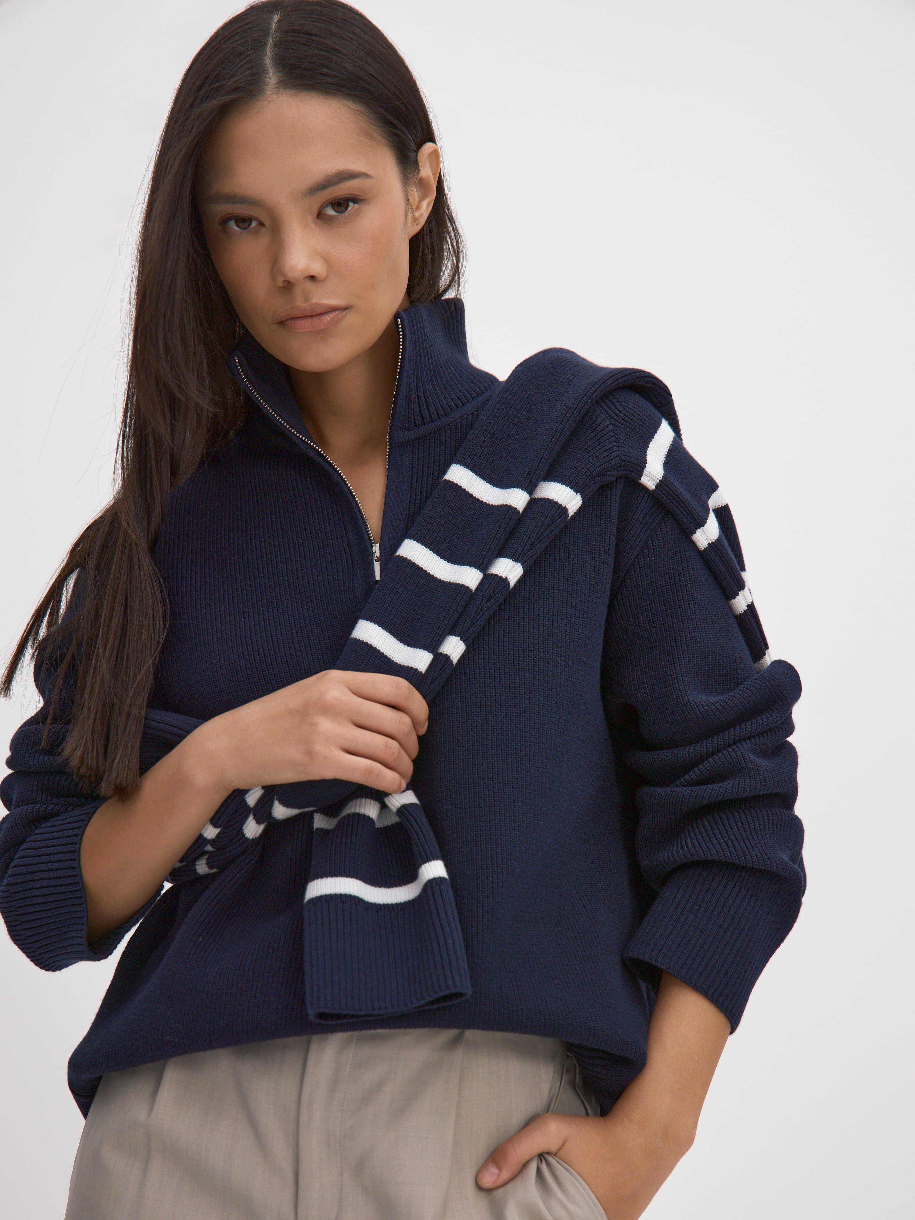 Хлопка много не бывает – решили мы и создали весенний джемпер-свитшот, который на 90% состоит из нежных хлопковых волокон. Универсальная модель с высокой горловиной, деликатно приспущенным плечом и широкой резинкой по низу и манжетам. Рекомендуем для прохладных майских вечеров и встречи рассвета на морском побережье. Стилизуйте на свое усмотрение. С расстегнутым воротом джемпер смотрится подчеркнуто расслабленно, с застегнутым – более формально.