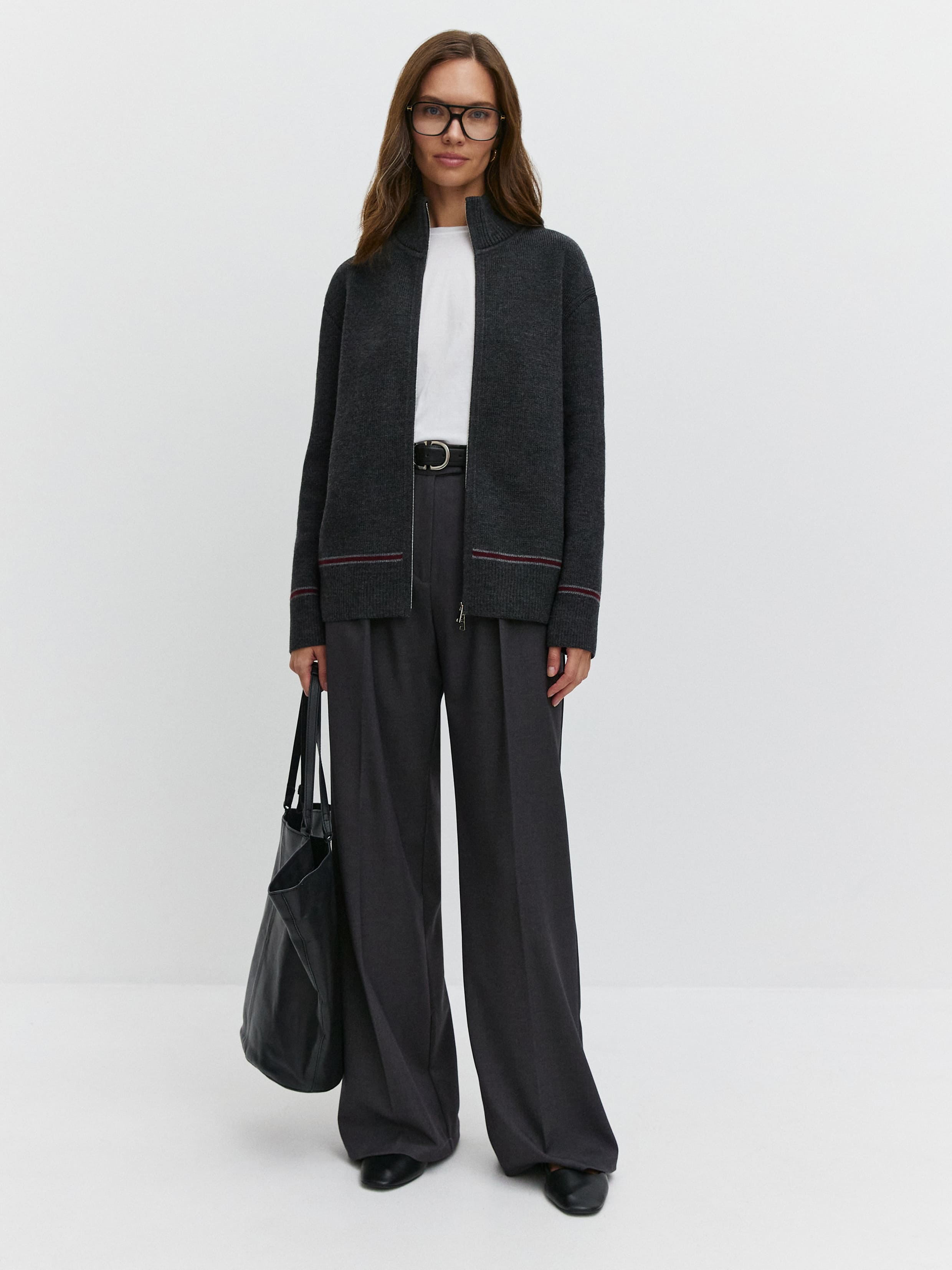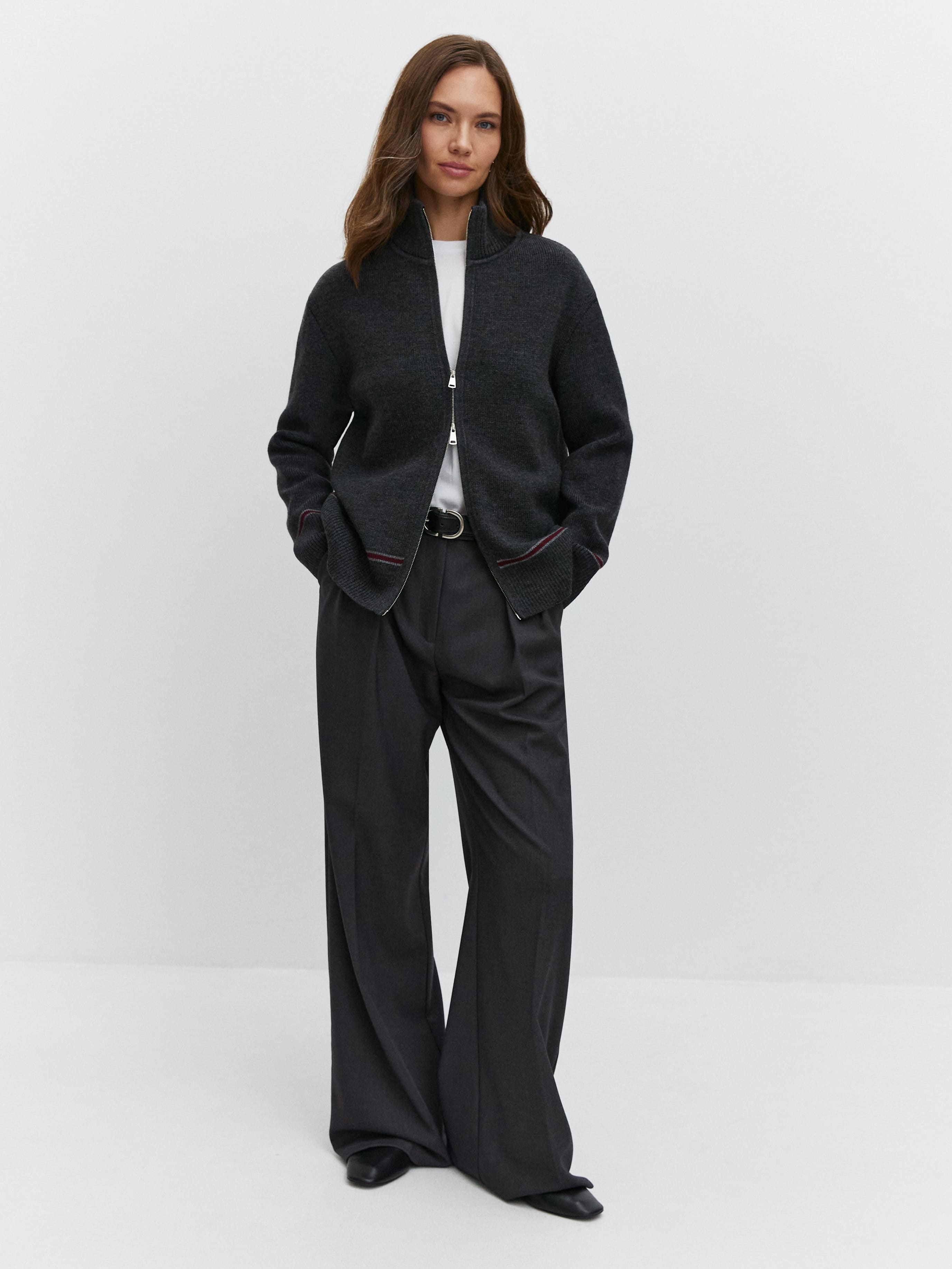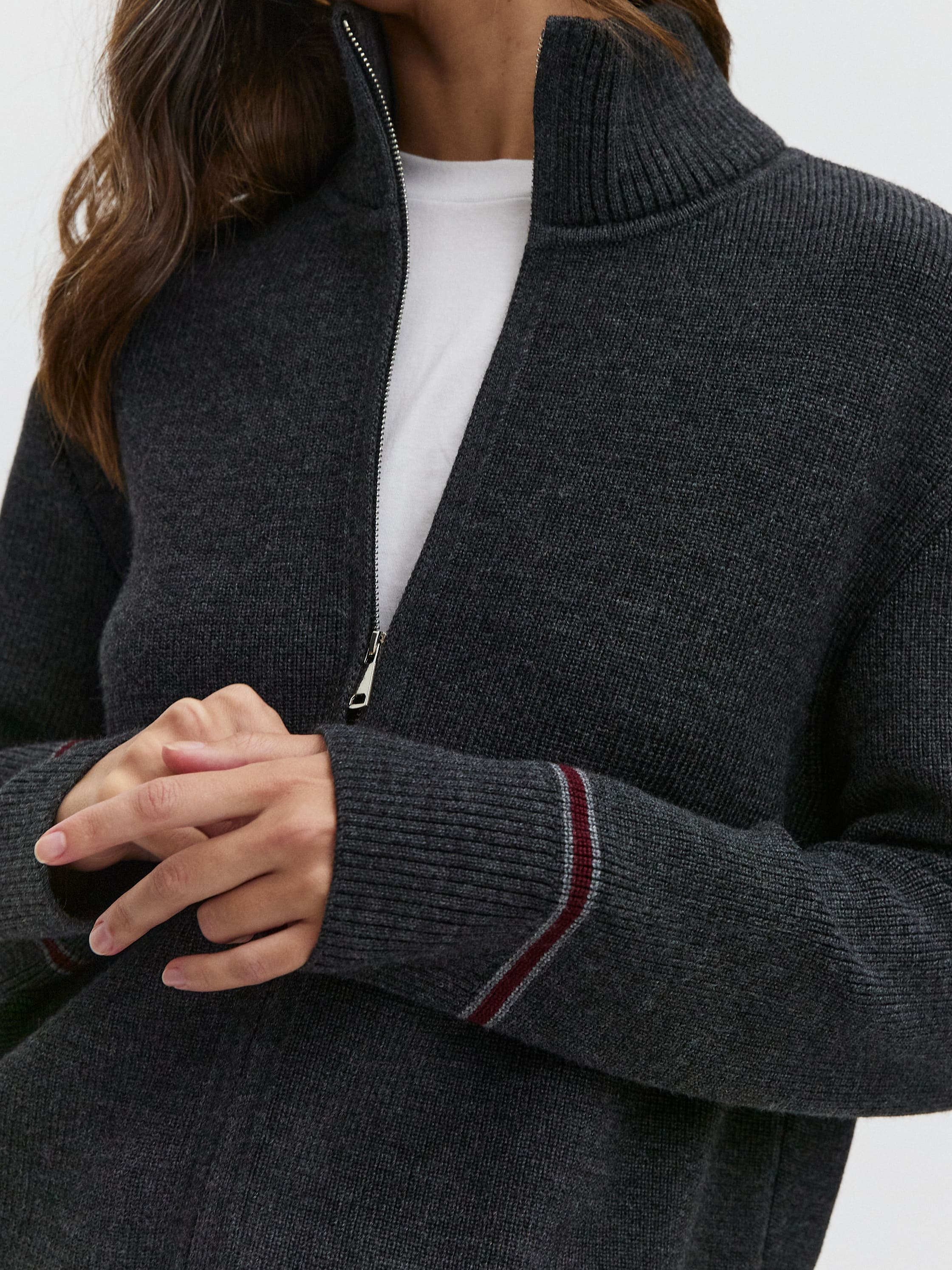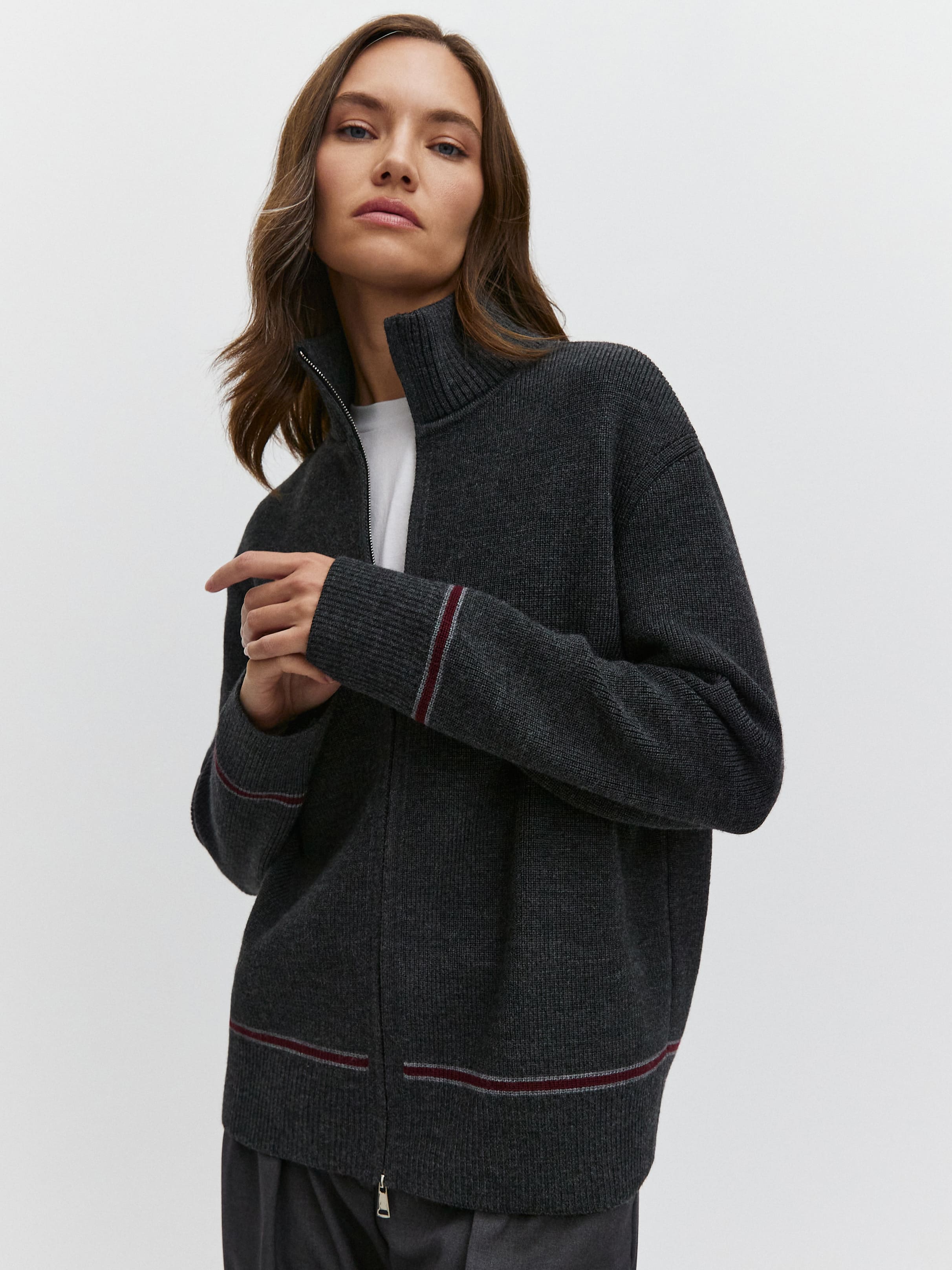 Супер теплый апре-ски джемпер, задача которого – укутывать, создавать тактильную магию и защищать шею высокой горловиной. Простота силуэта модели компенсируется несколькими вариантами застежки. Двойная молния позволяет расстегивать изделие снизу и сверху одновременно. Обратите внимание: джемпер не уходит в экстремальный оверсайз, но под ним достаточно места для красивого нижнего слоя. Основу трикотажа составляет натуральная шерсть австралийского мериноса – лучший вид пряжи для зимних прогулок и активного отдыха на горнолыжном курорте.