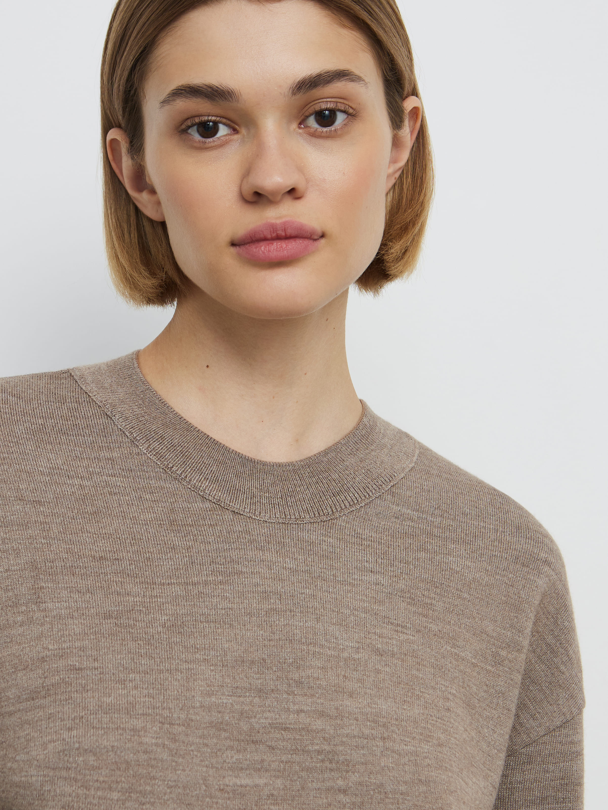Этот практичный джемпер из уютной полушерсти интегрируется в любой зимний лук. В нем все в меру – легкая расслабленность посадки, аккуратная отделка, комфортная длина. Отсутствие сложного декора и акцентных деталей порадует всех, кто любит структурировать образ при помощи аксессуаров. На этом джемпере будут органично смотреться любые дополнения – от яркого платка до дизайнерской бижутерии.