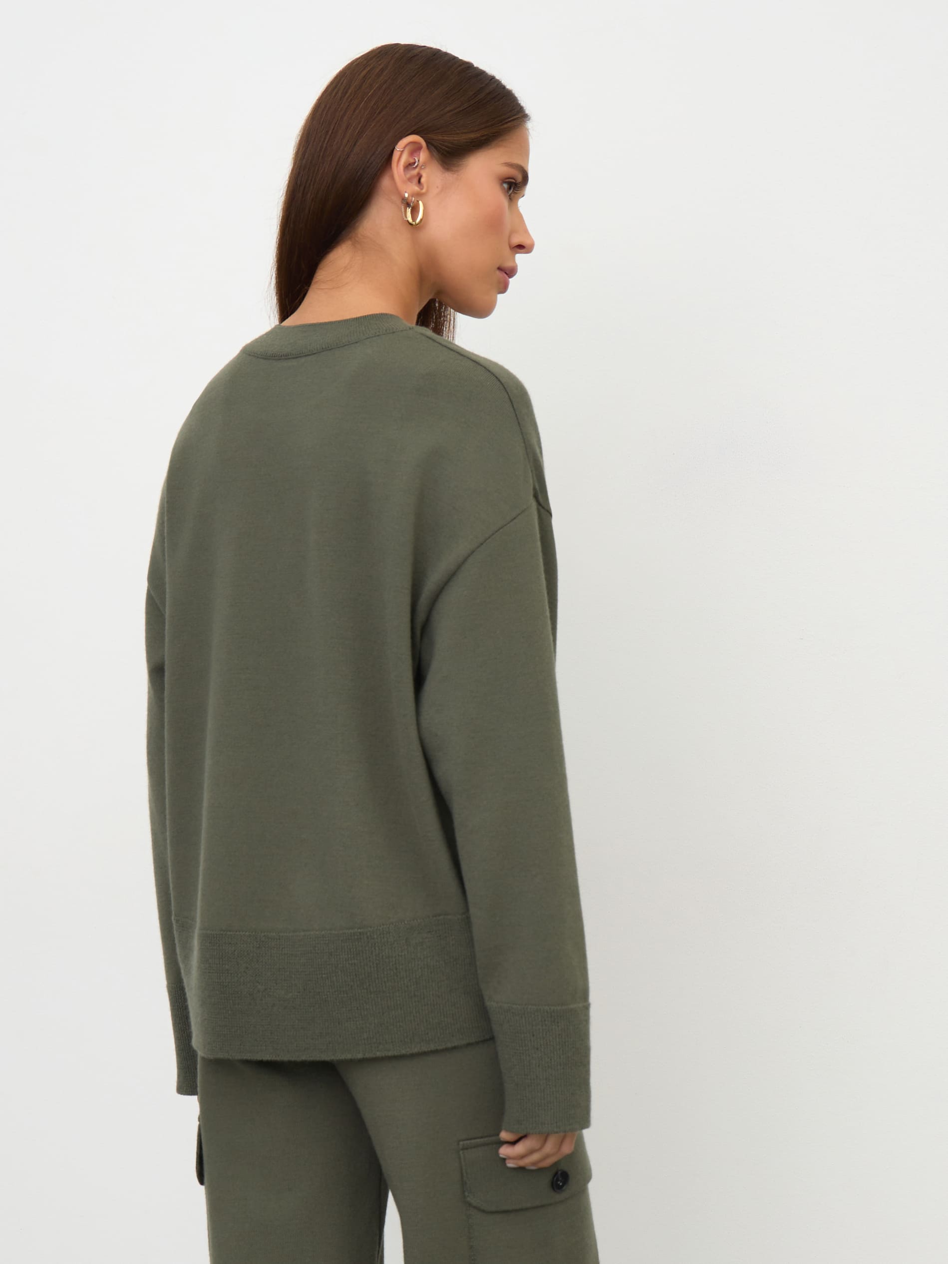Этот практичный джемпер из уютной полушерсти интегрируется в любой зимний лук. В нем все в меру – легкая расслабленность посадки, аккуратная отделка, комфортная длина. Отсутствие сложного декора и акцентных деталей порадует всех, кто любит структурировать образ при помощи аксессуаров. На этом джемпере будут органично смотреться любые дополнения – от яркого платка до дизайнерской бижутерии.