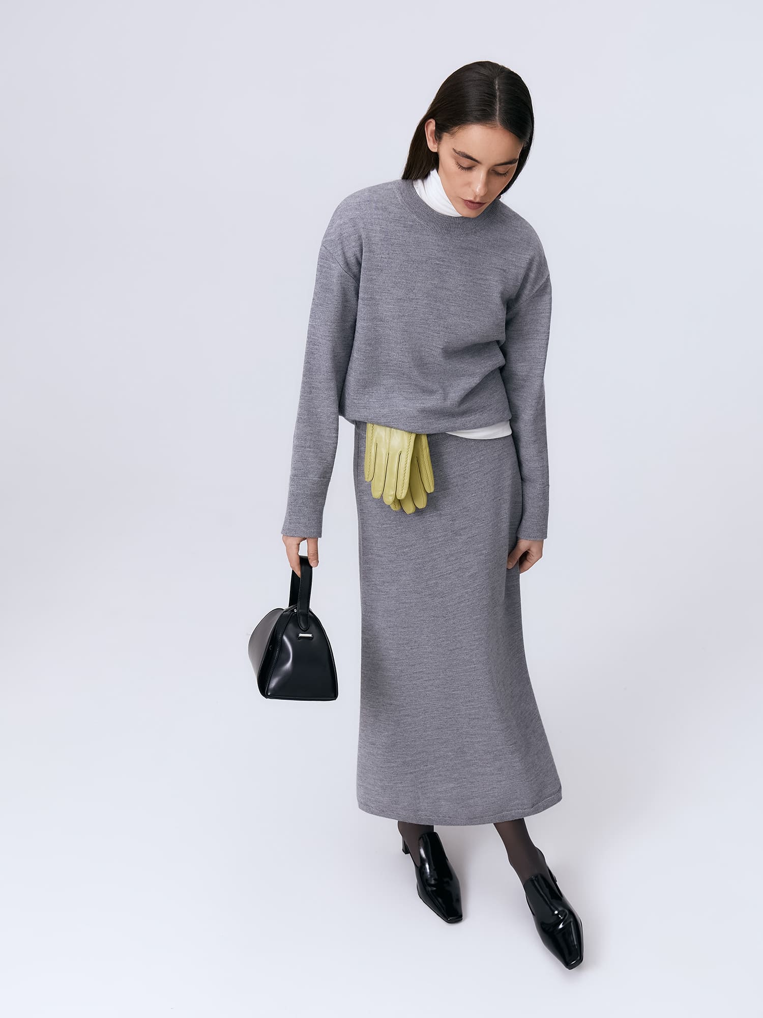 Этот практичный джемпер из уютной полушерсти интегрируется в любой зимний лук. В нем все в меру – легкая расслабленность посадки, аккуратная отделка, комфортная длина. Отсутствие сложного декора и акцентных деталей порадует всех, кто любит структурировать образ при помощи аксессуаров. На этом джемпере будут органично смотреться любые дополнения – от яркого платка до дизайнерской бижутерии.