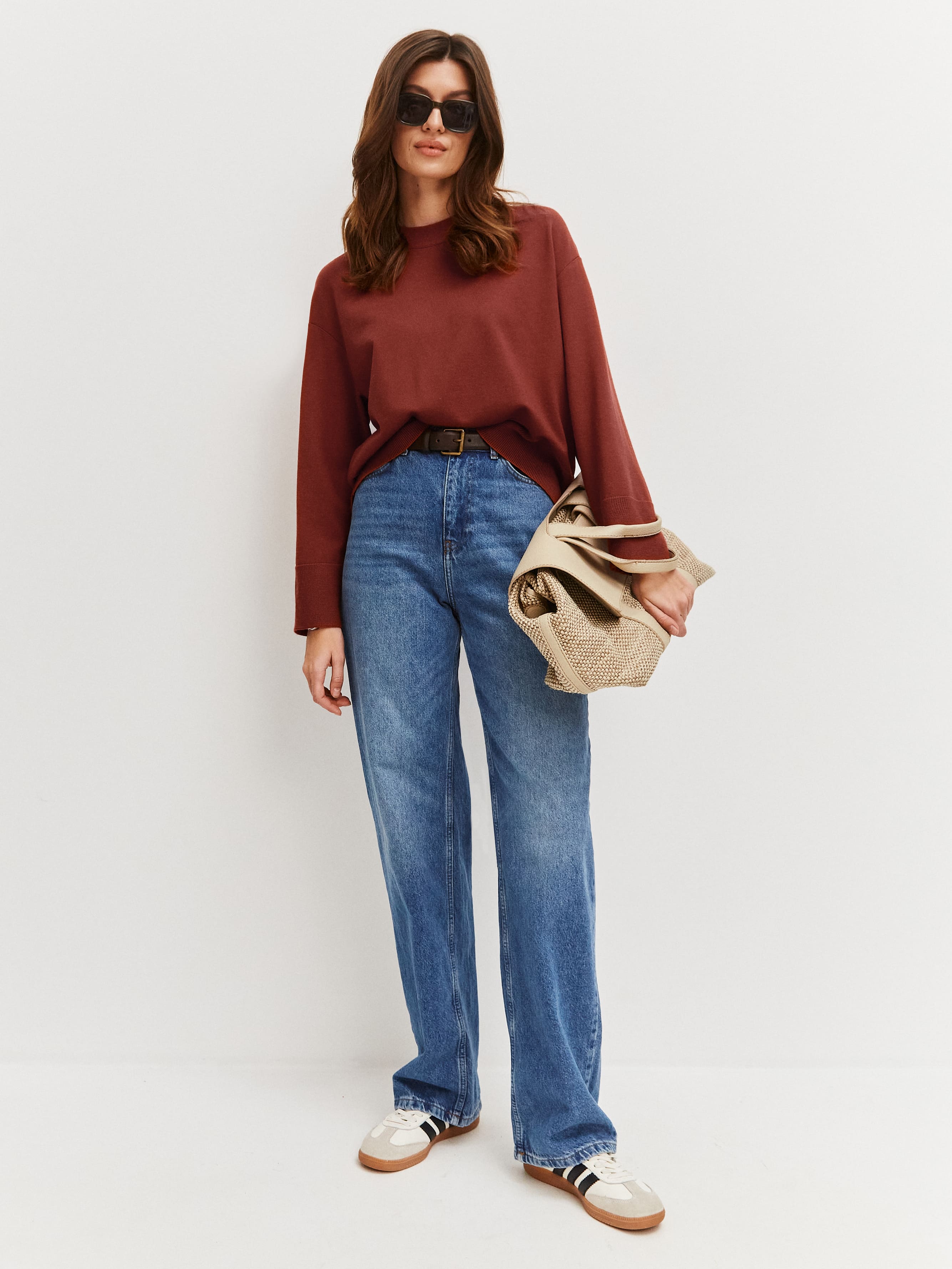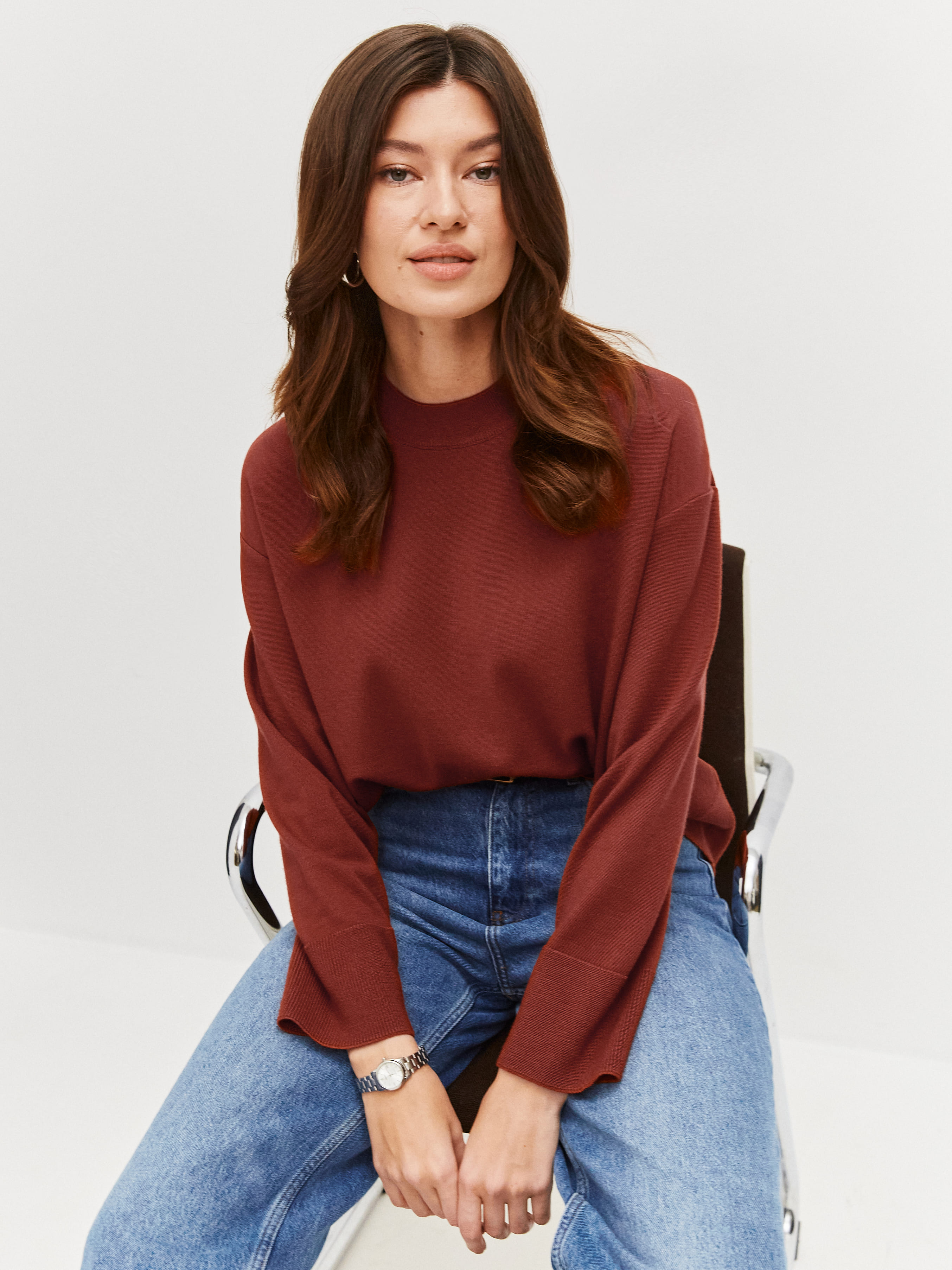 Этот практичный джемпер из уютной полушерсти интегрируется в любой зимний лук. В нем все в меру – легкая расслабленность посадки, аккуратная отделка, комфортная длина. Отсутствие сложного декора и акцентных деталей порадует всех, кто любит структурировать образ при помощи аксессуаров. На этом джемпере будут органично смотреться любые дополнения – от яркого платка до дизайнерской бижутерии.