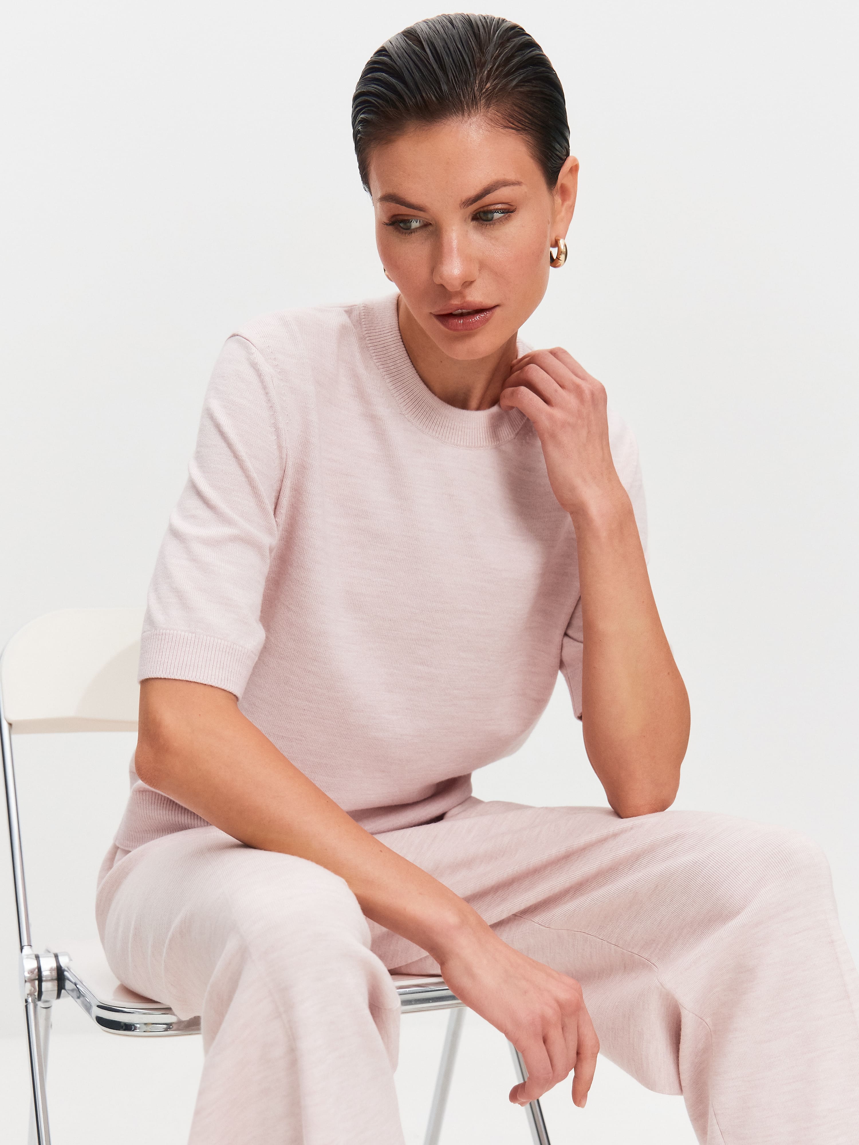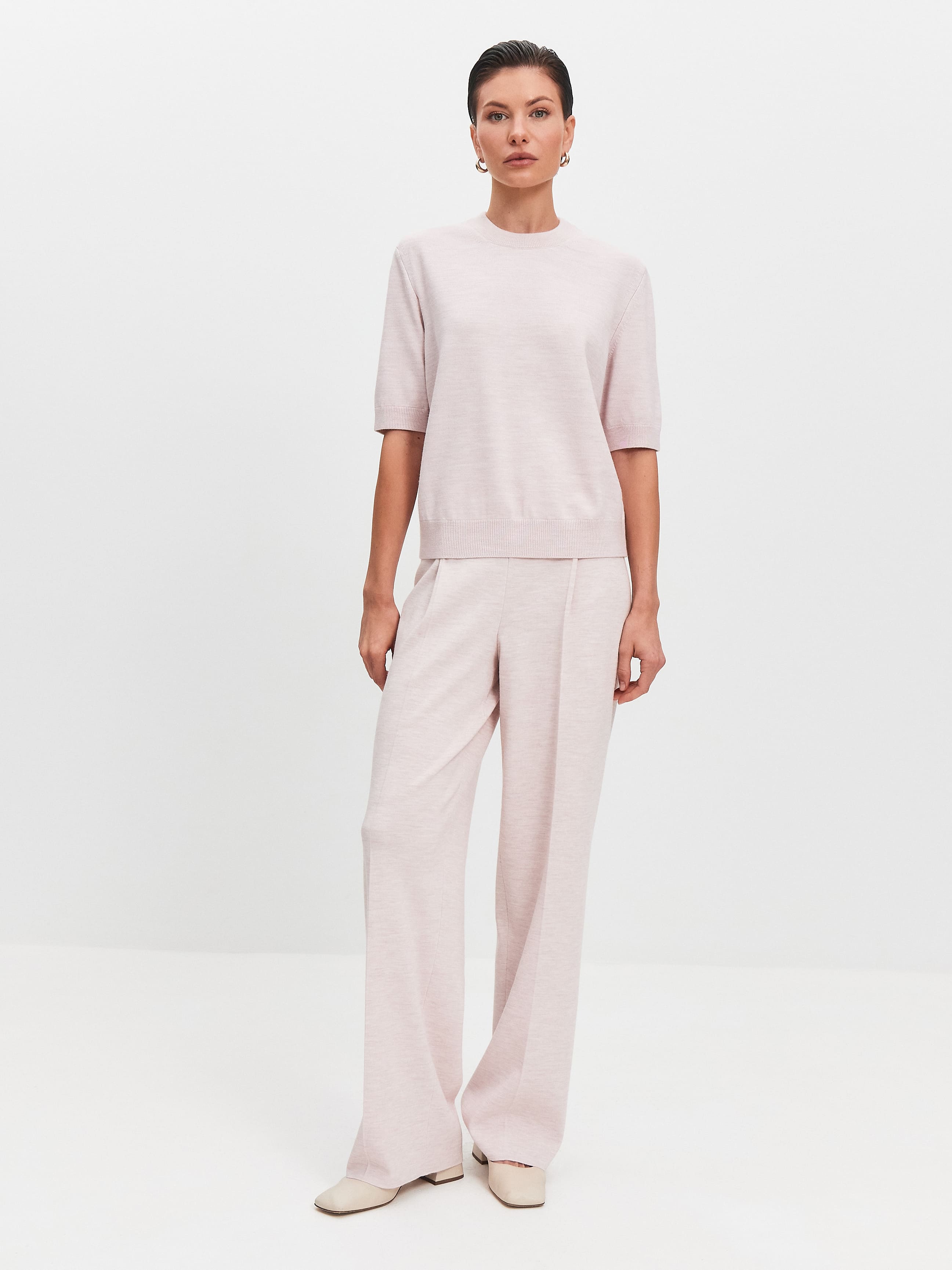 Джемпер из шерсти мериноса и вискозы с коротким рукавом Юджин