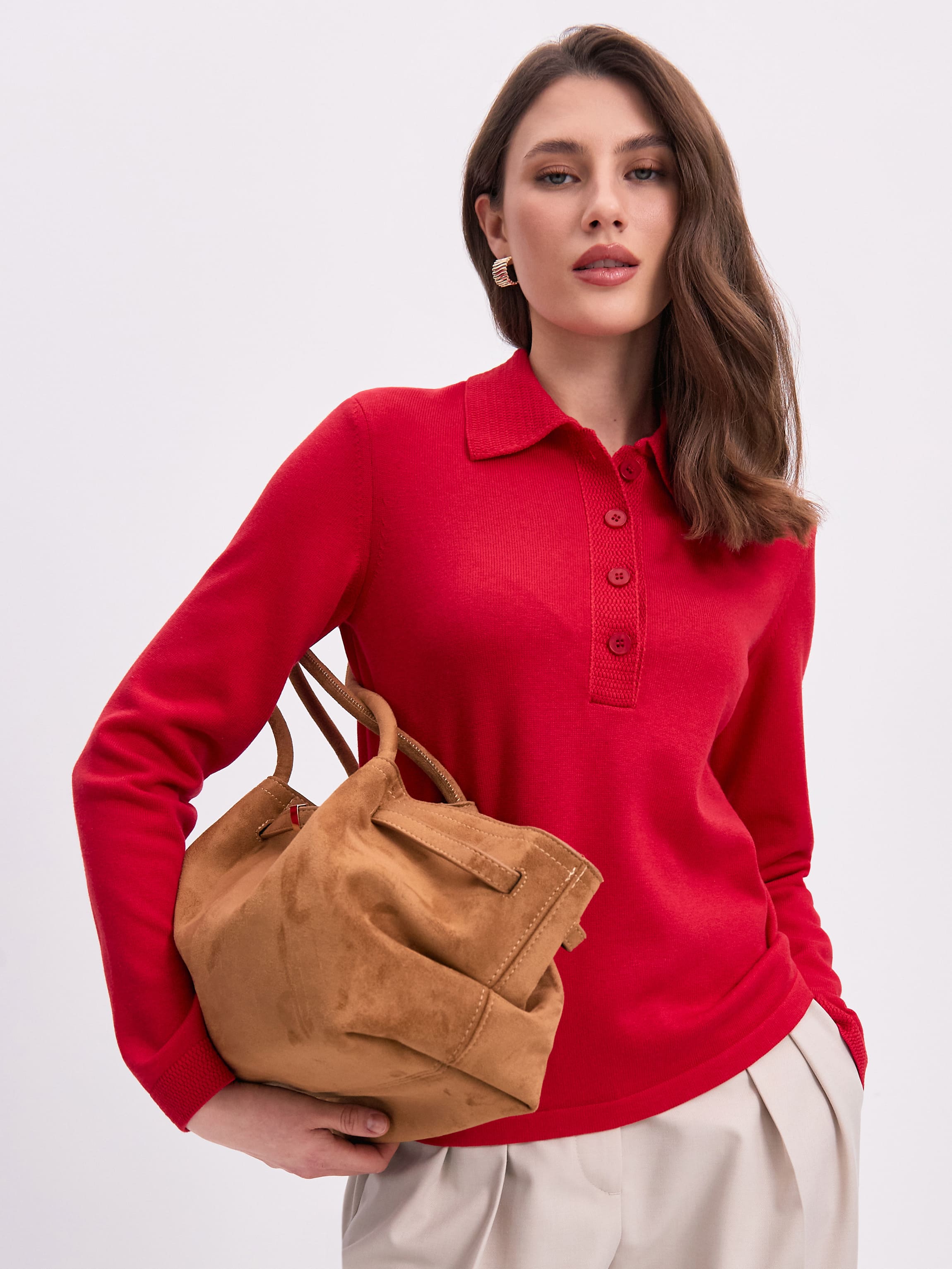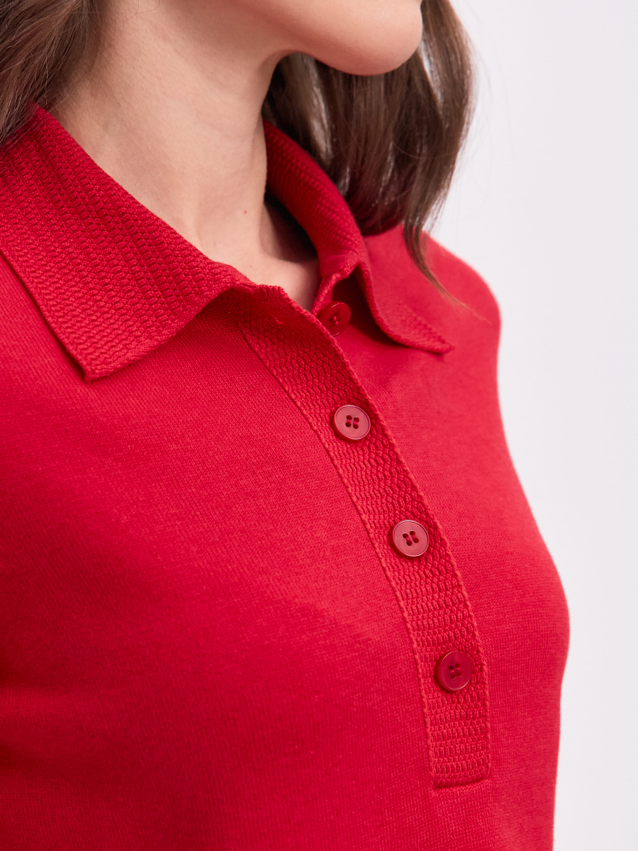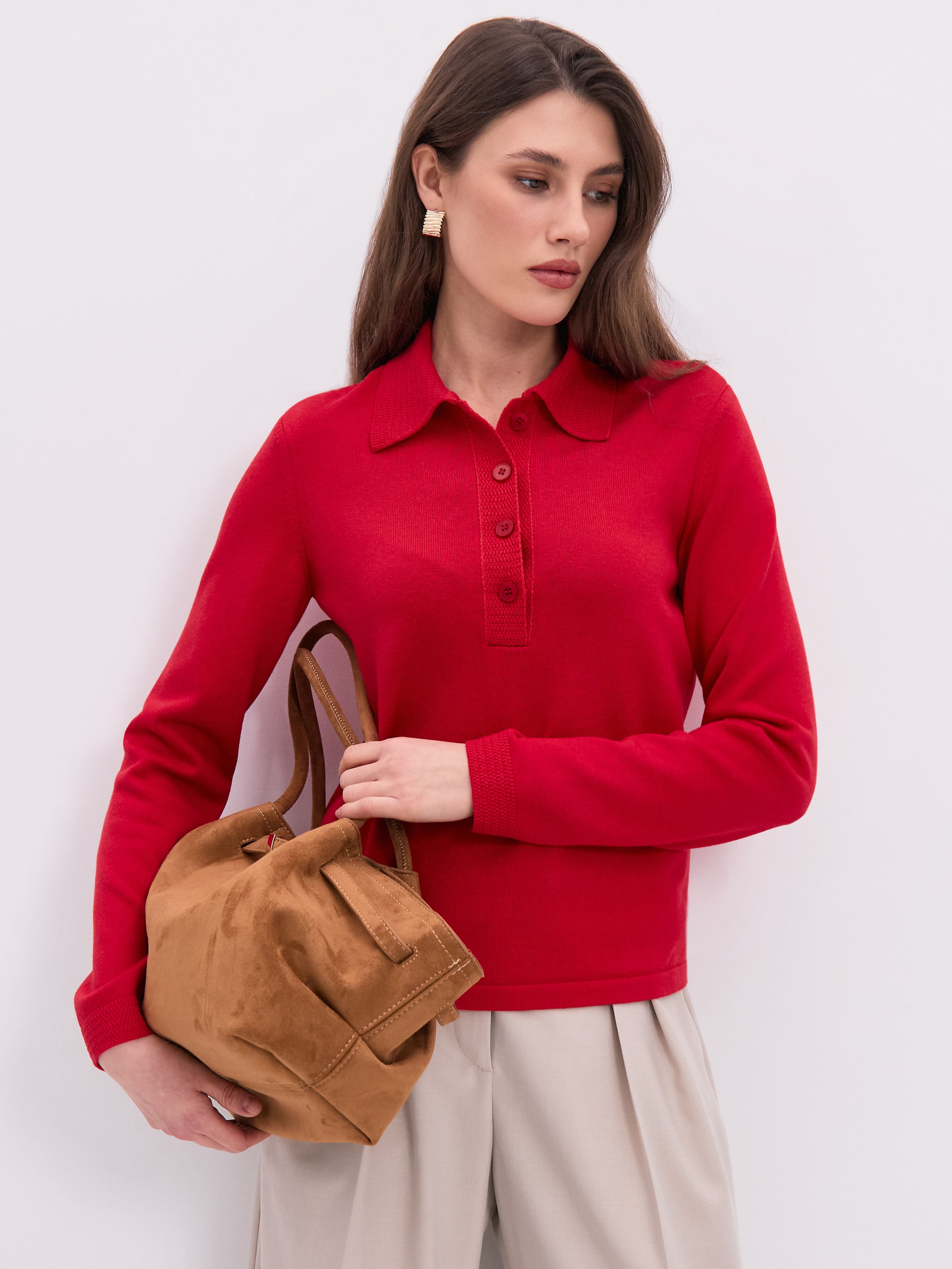 Аккуратный вязаный джемпер-поло с натуральным хлопком – модная классика, переживающая свой очередной ренессанс. Модель выполнена из высококачественного тактильного трикотажа. Дополнена рукавами полноценной длины, крупными пластиковыми пуговицами и уплотненной отделкой краев. Трикотажное полотно сохраняет структуру и остается умеренно эластичным, благодаря полиамиду, что способствует правильной посадке изделия по фигуре.