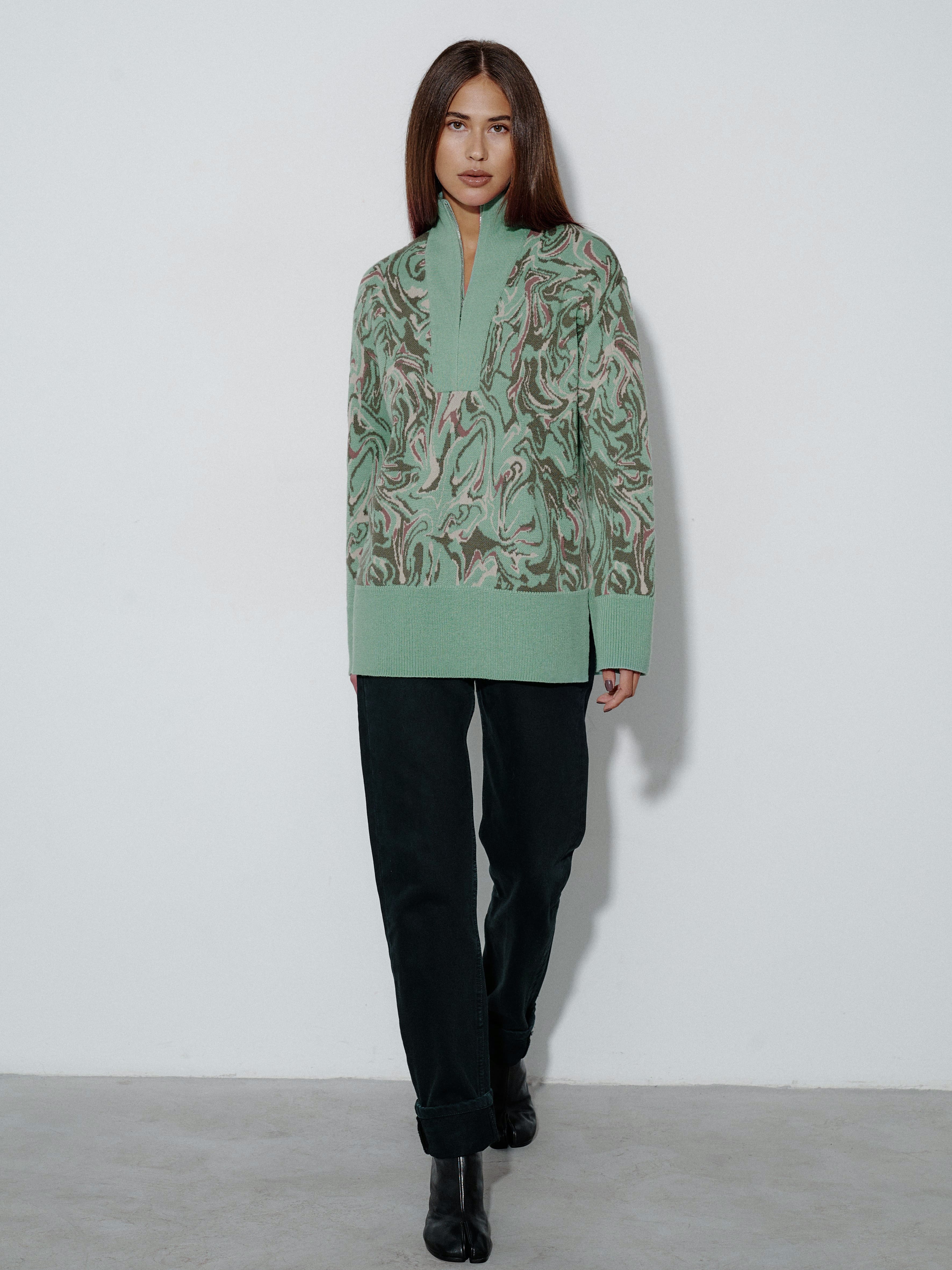 Джемпер из шерсти с жаккардовой абстракцией Грация