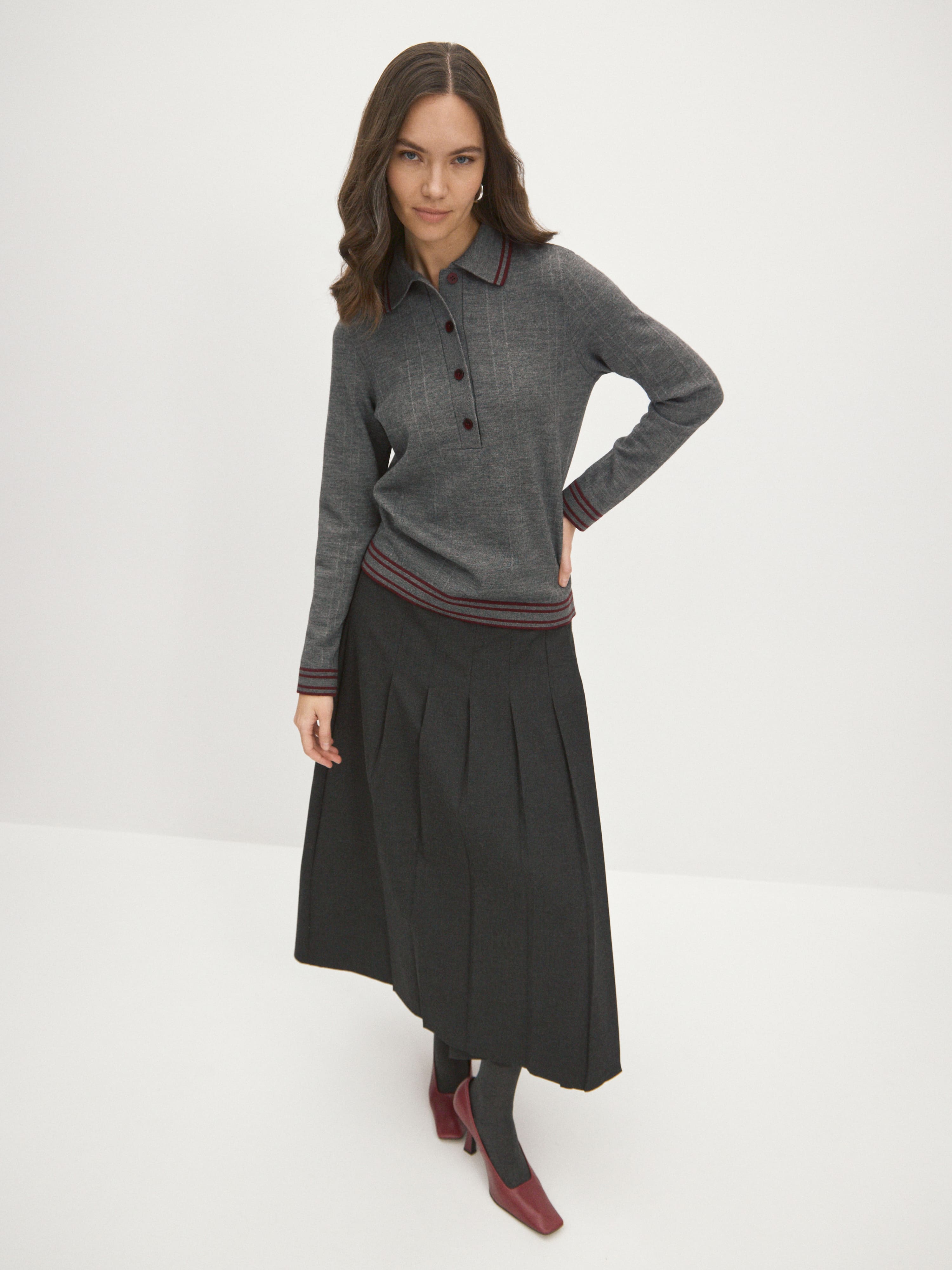 Джемпер поло из шерсти мериноса с вискозой Кайли
