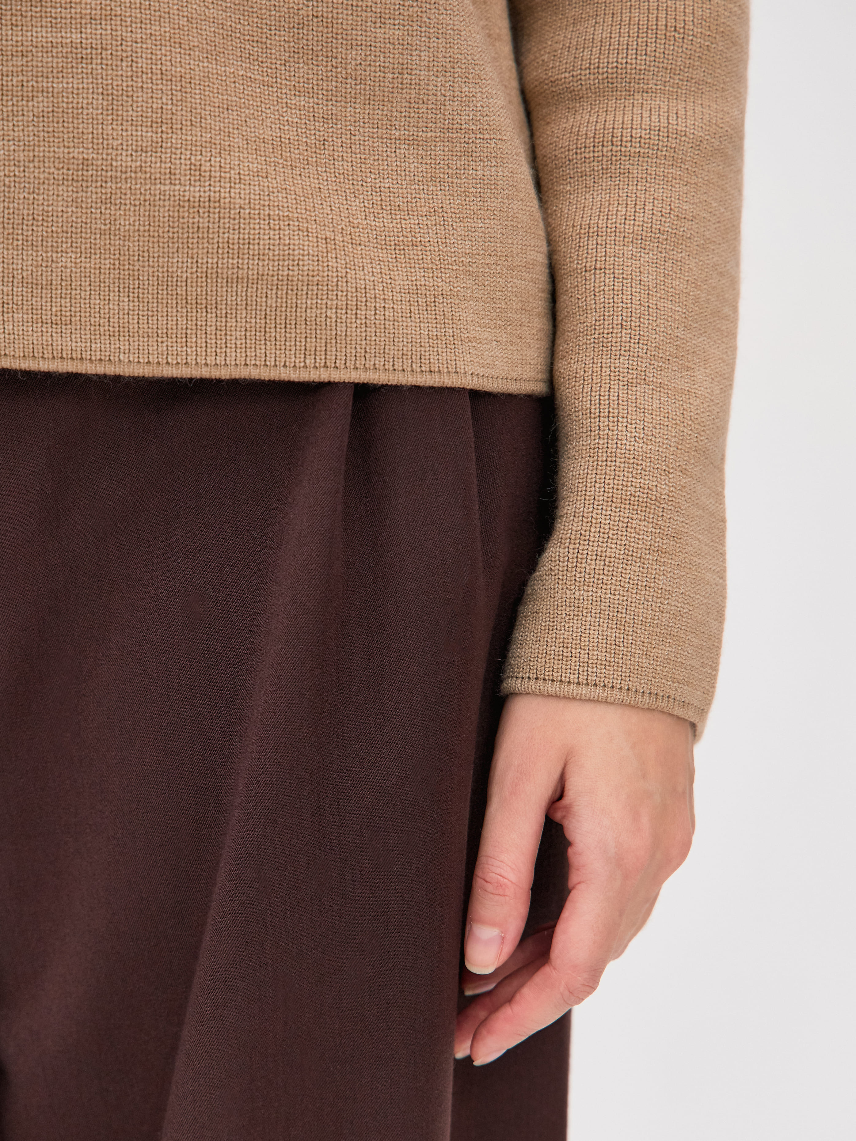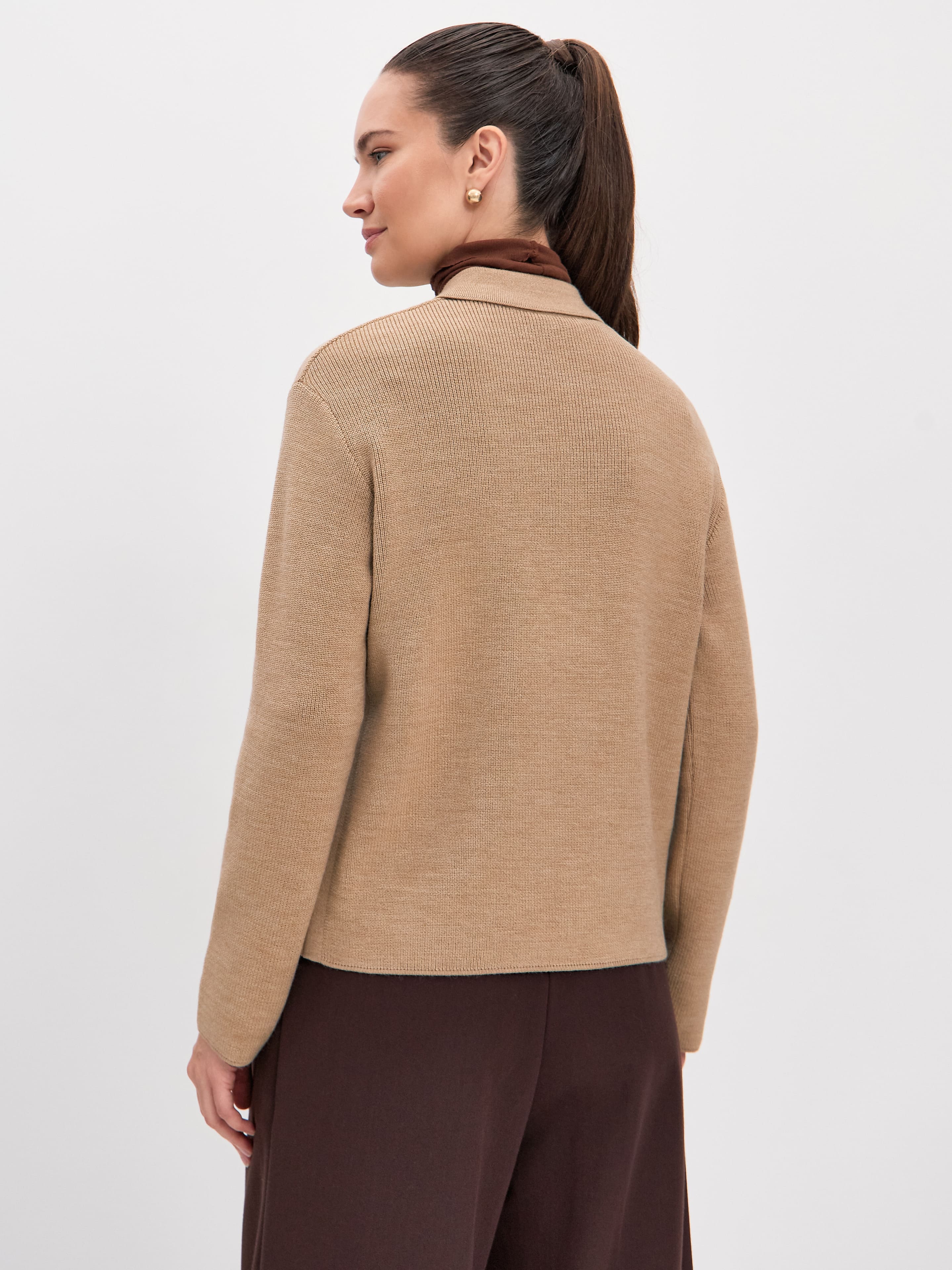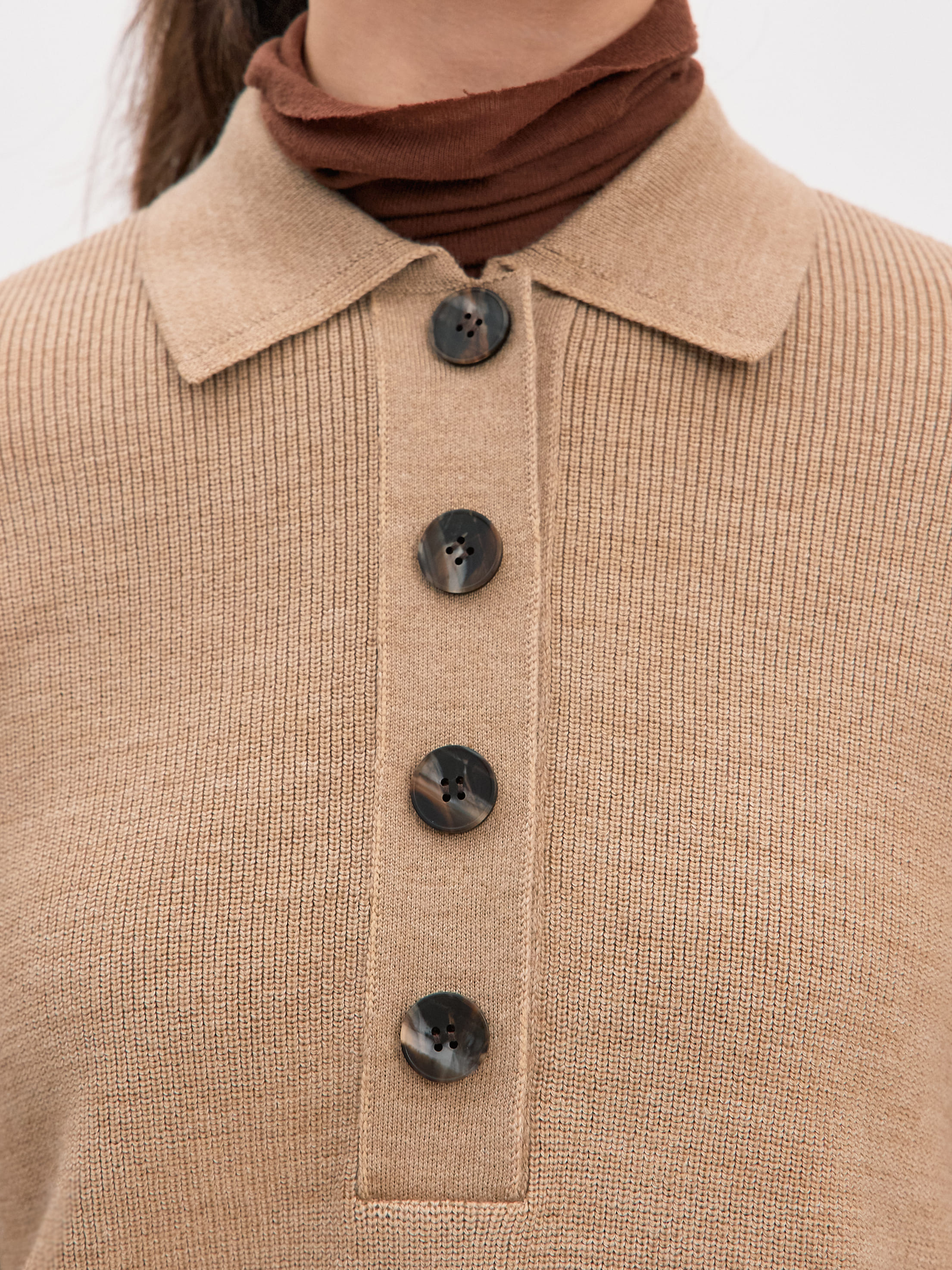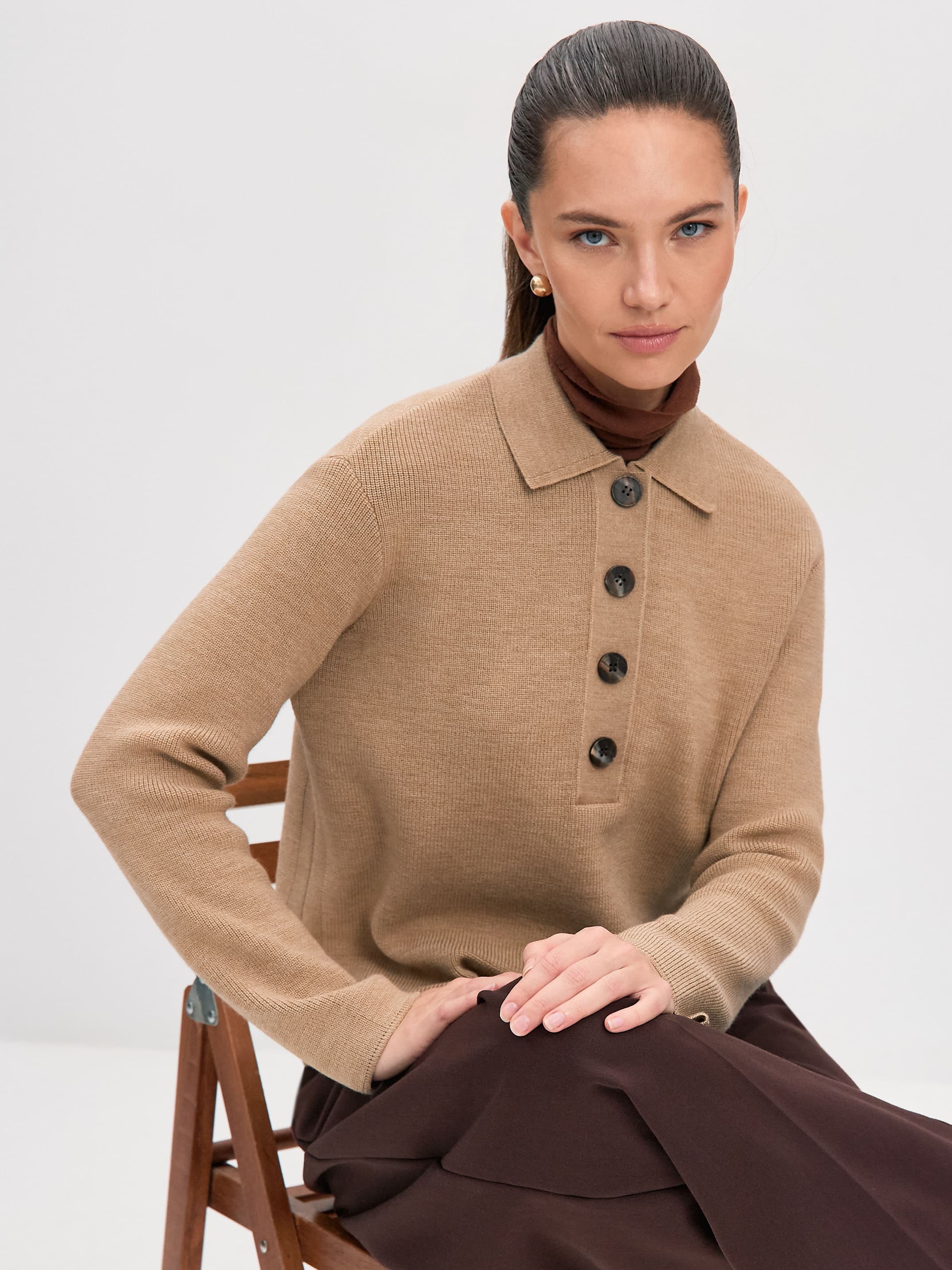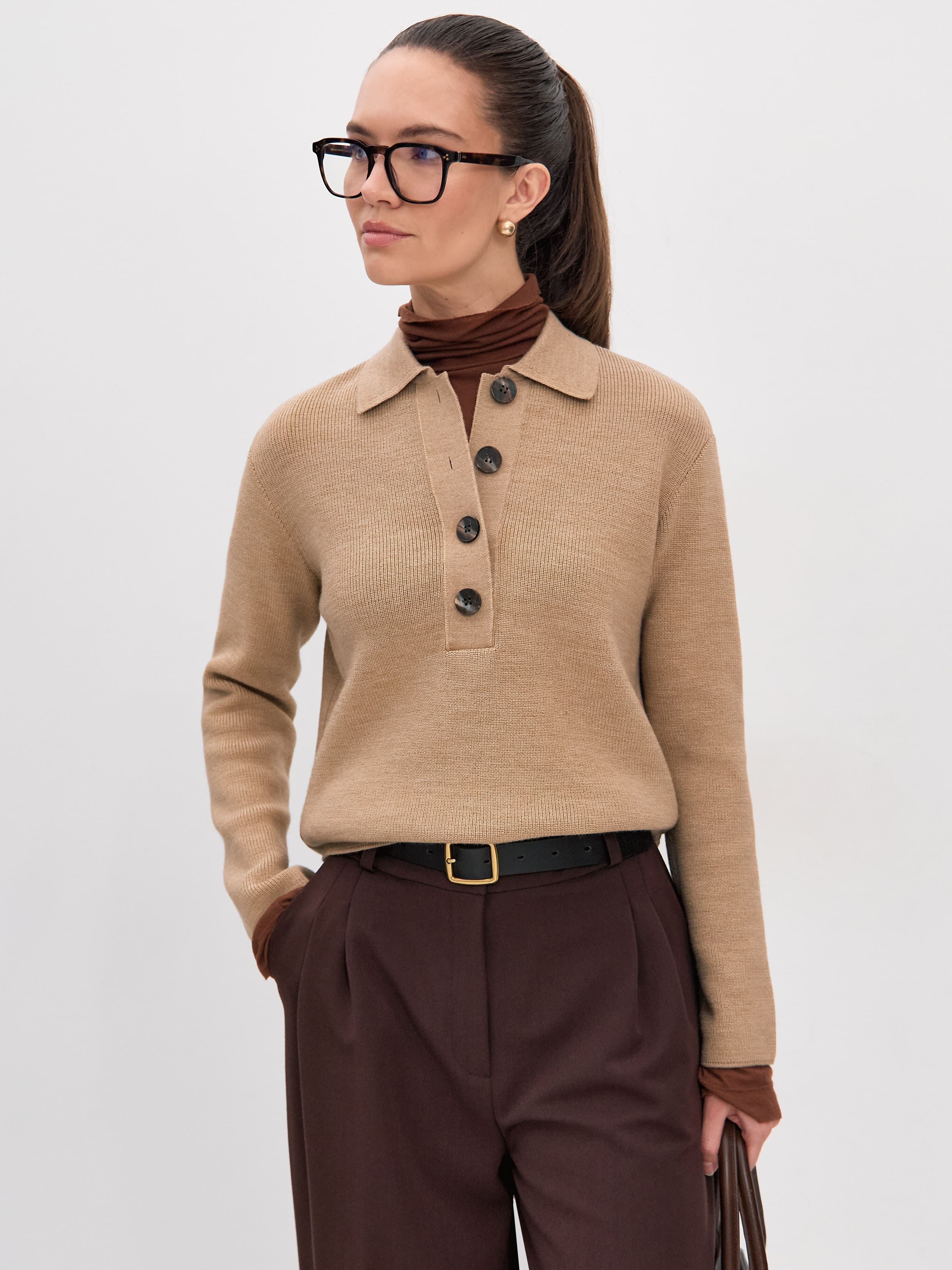 Как быть, если хочется носить любимое поло даже осенью и зимой? Конечно, выбрать наш теплый джемпер из натуральной шерсти. В нем все атрибуты, присущие фасону поло, но адаптированные с учетом сезонности изделия. Воротник из плотного трикотажа, аккуратная планка, длинные рукава, которые можно красиво подвернуть – все это поможет менять образ по желанию.