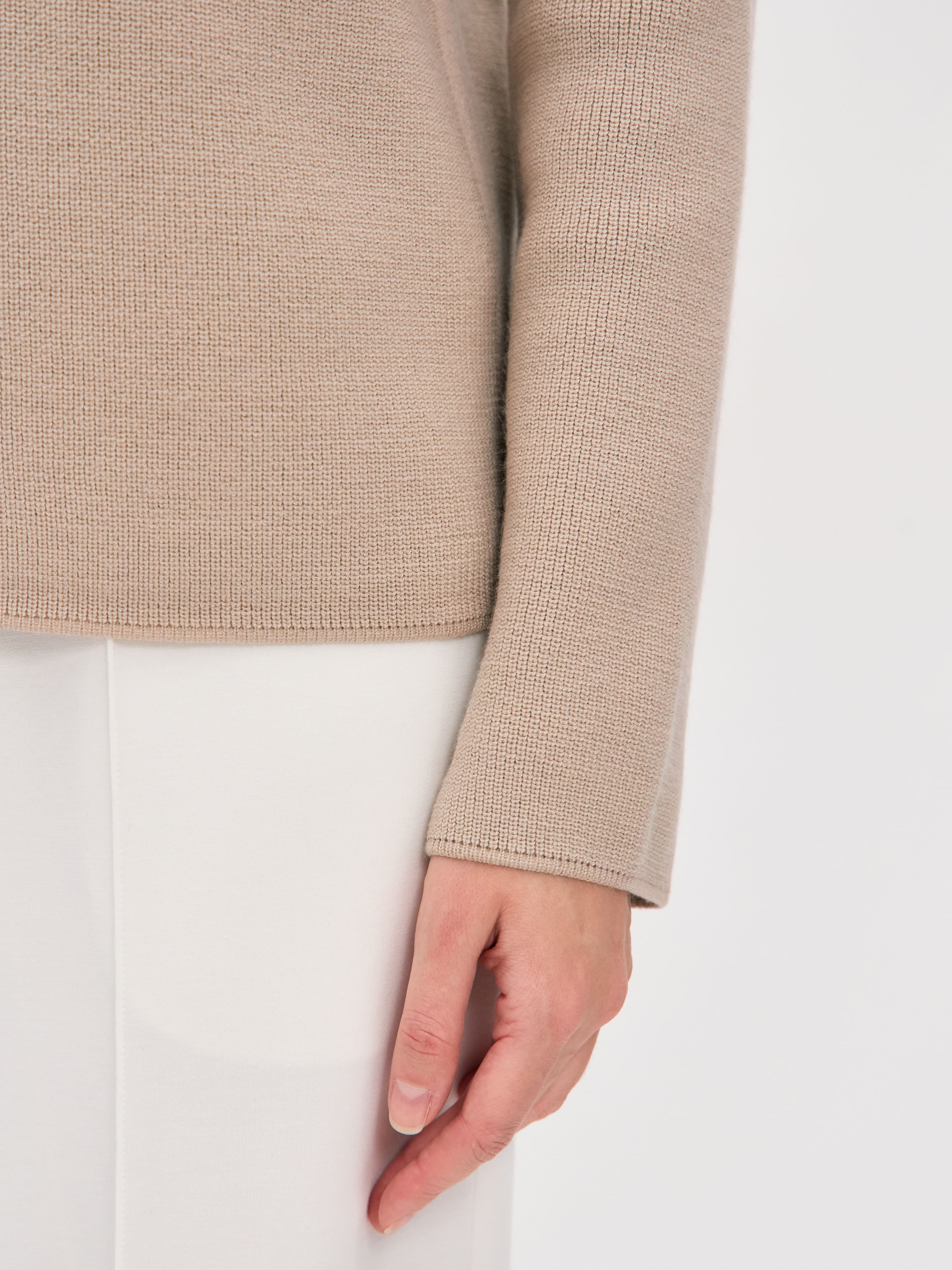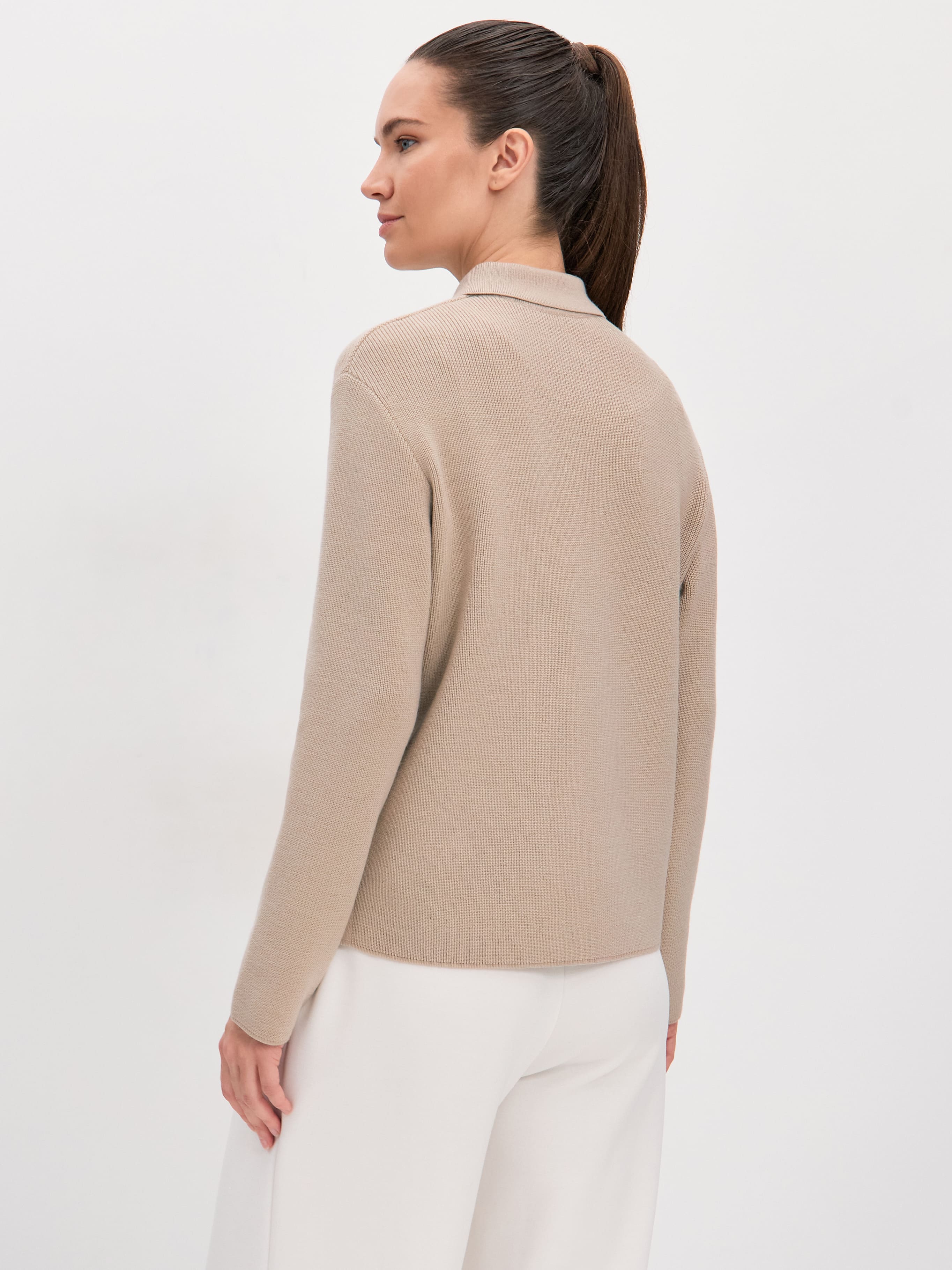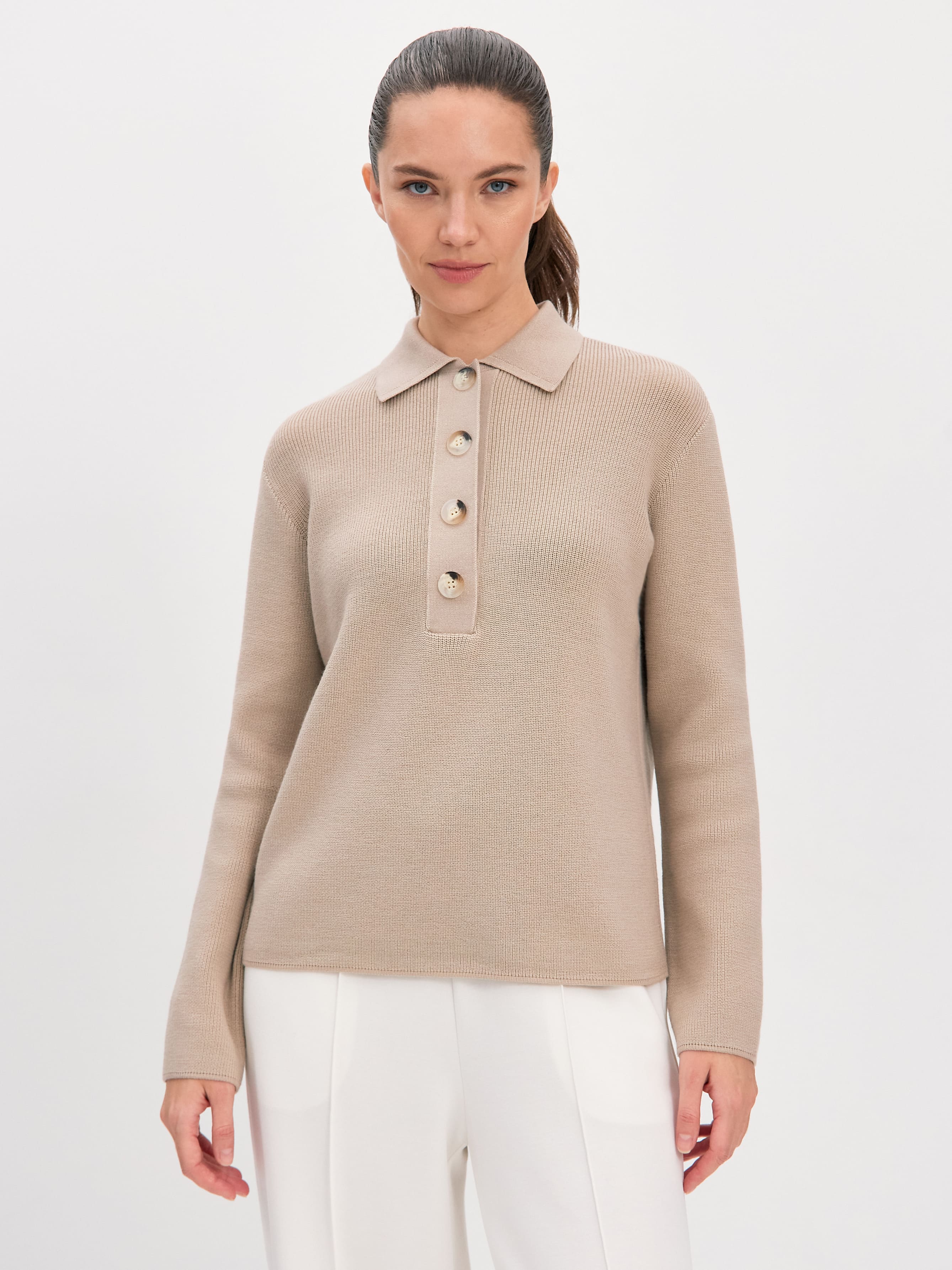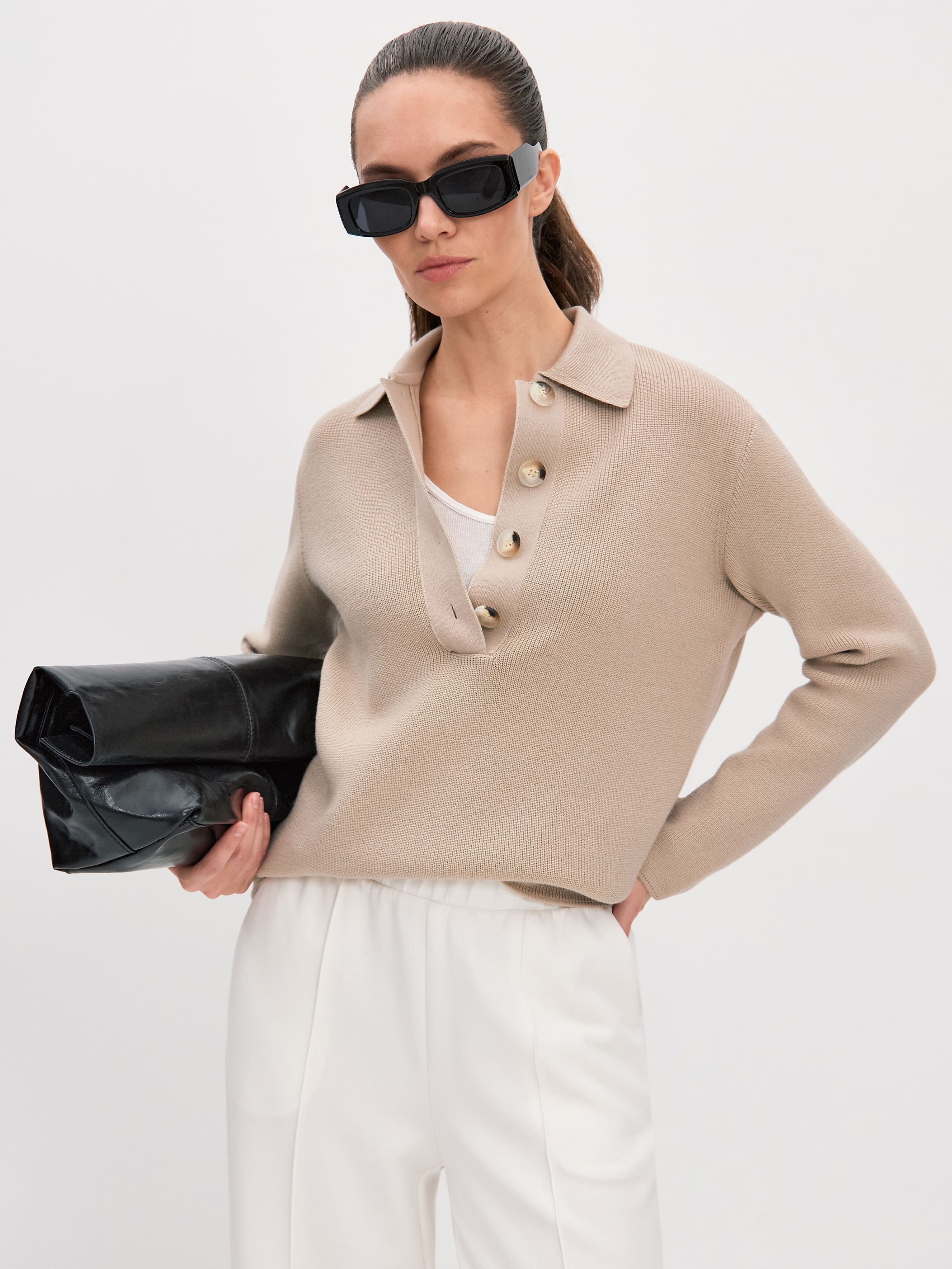 Как быть, если хочется носить любимое поло даже осенью и зимой? Конечно, выбрать наш теплый джемпер из натуральной шерсти. В нем все атрибуты, присущие фасону поло, но адаптированные с учетом сезонности изделия. Воротник из плотного трикотажа, аккуратная планка, длинные рукава, которые можно красиво подвернуть – все это поможет менять образ по желанию.