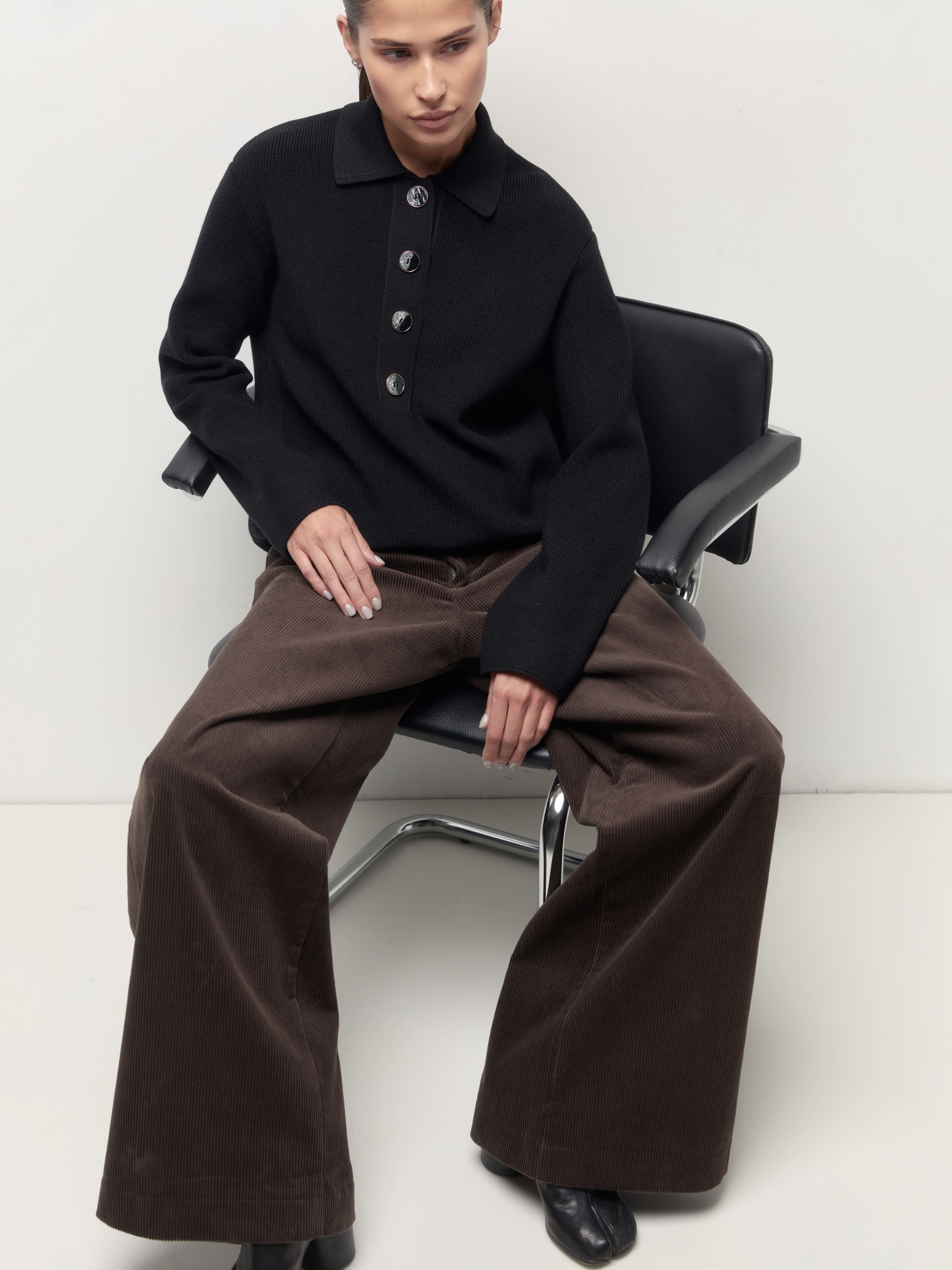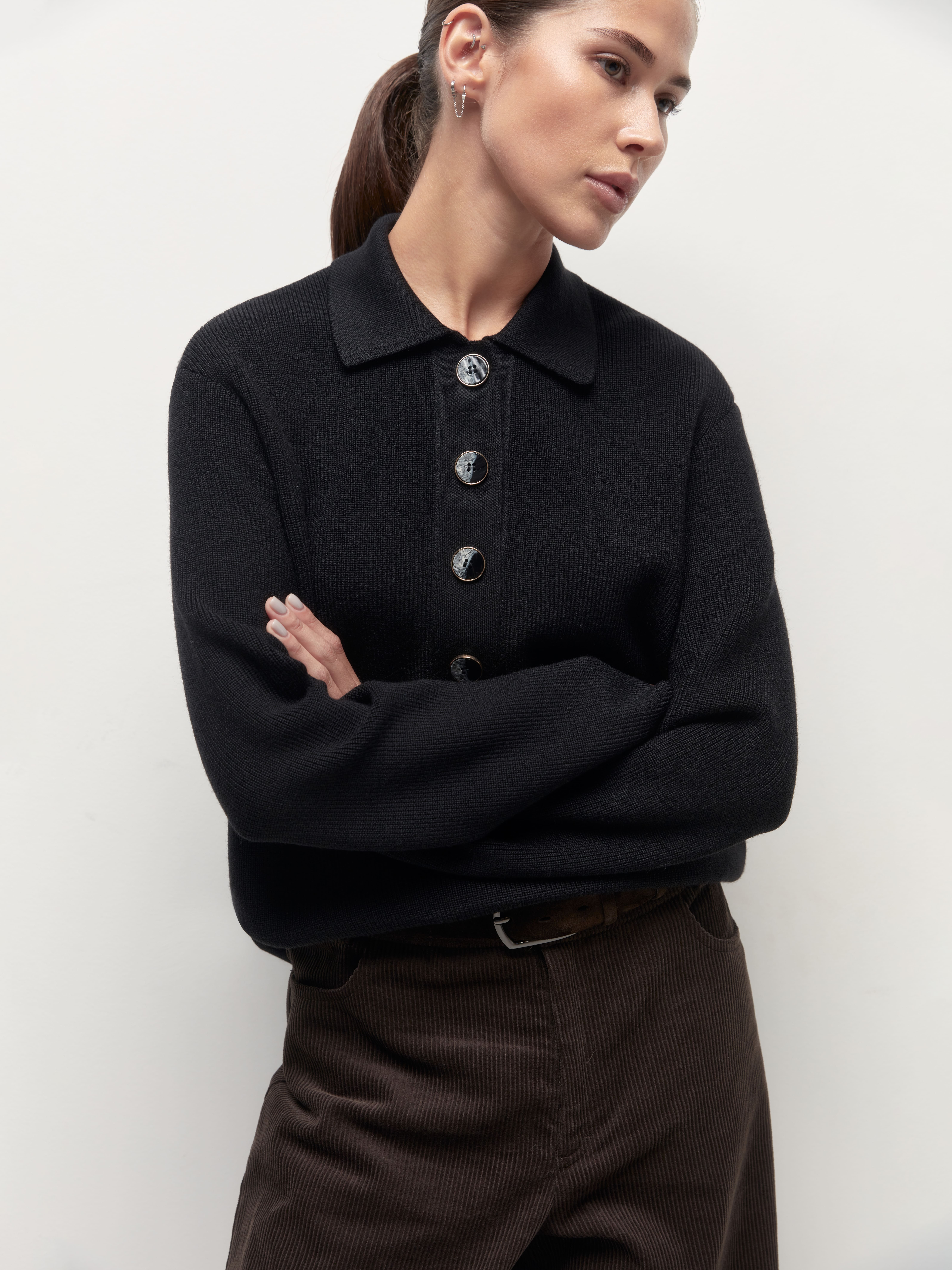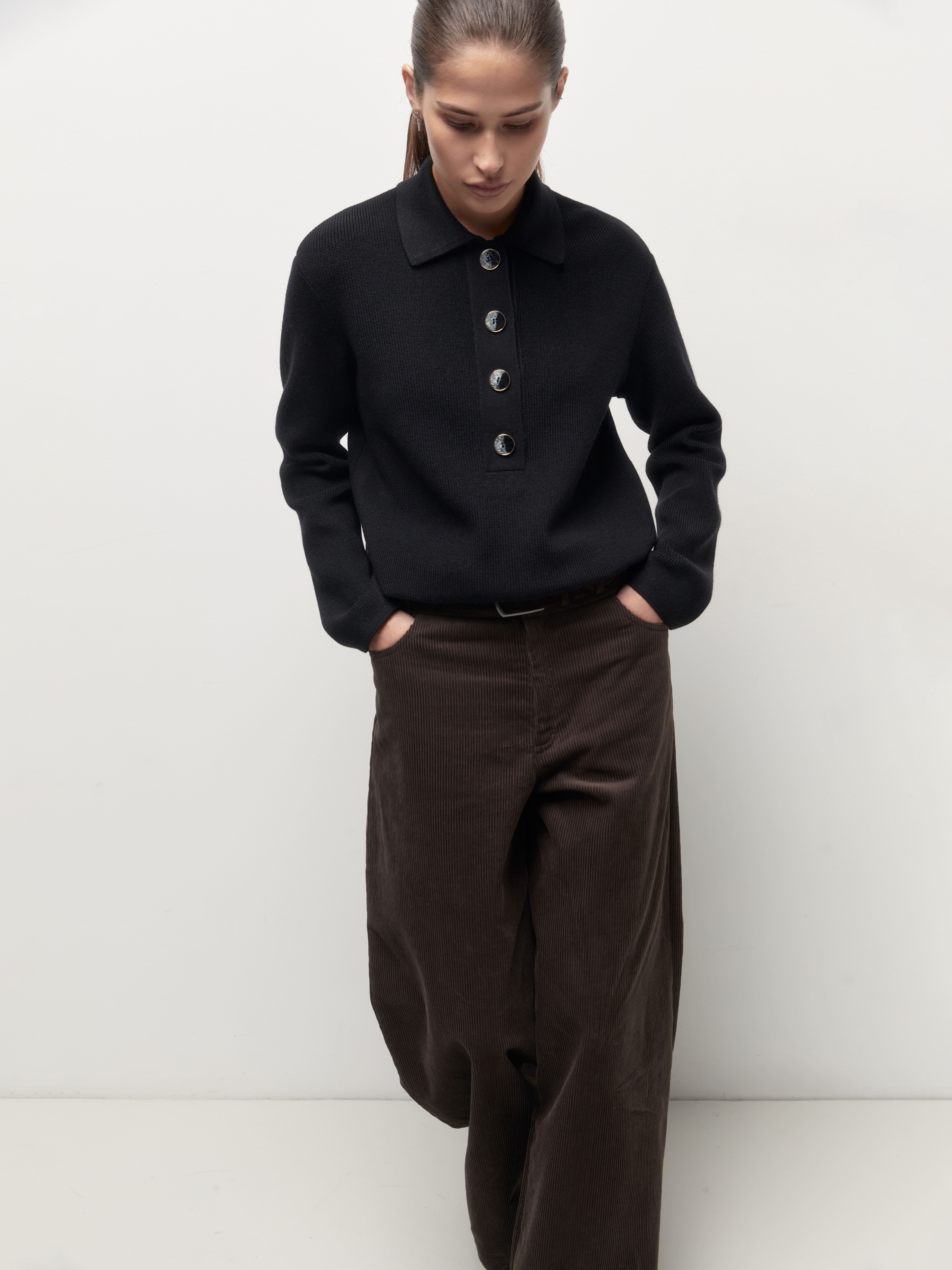 Как быть, если хочется носить любимое поло даже осенью и зимой? Конечно, выбрать наш теплый джемпер из натуральной шерсти. В нем все атрибуты, присущие фасону поло, но адаптированные с учетом сезонности изделия. Воротник из плотного трикотажа, аккуратная планка, длинные рукава, которые можно красиво подвернуть – все это поможет менять образ по желанию.