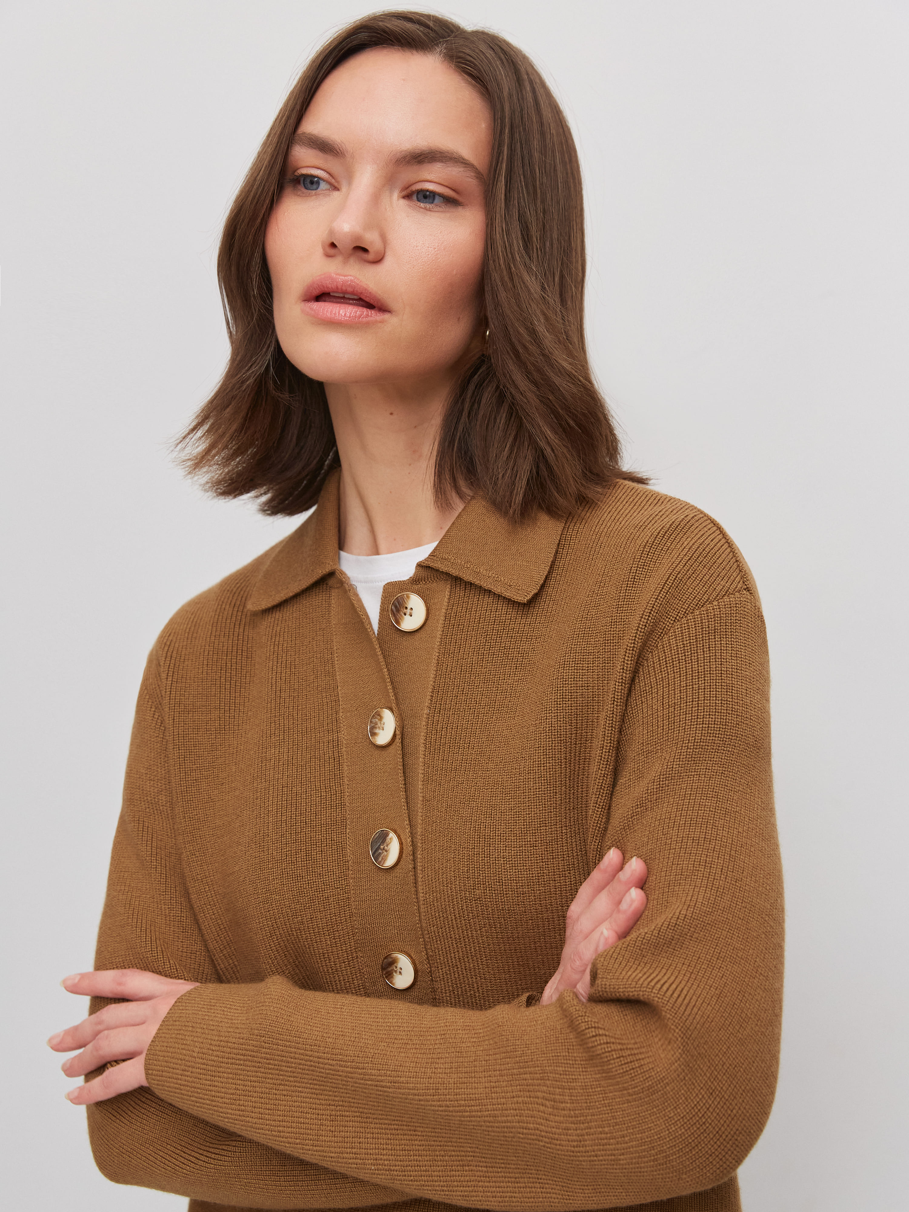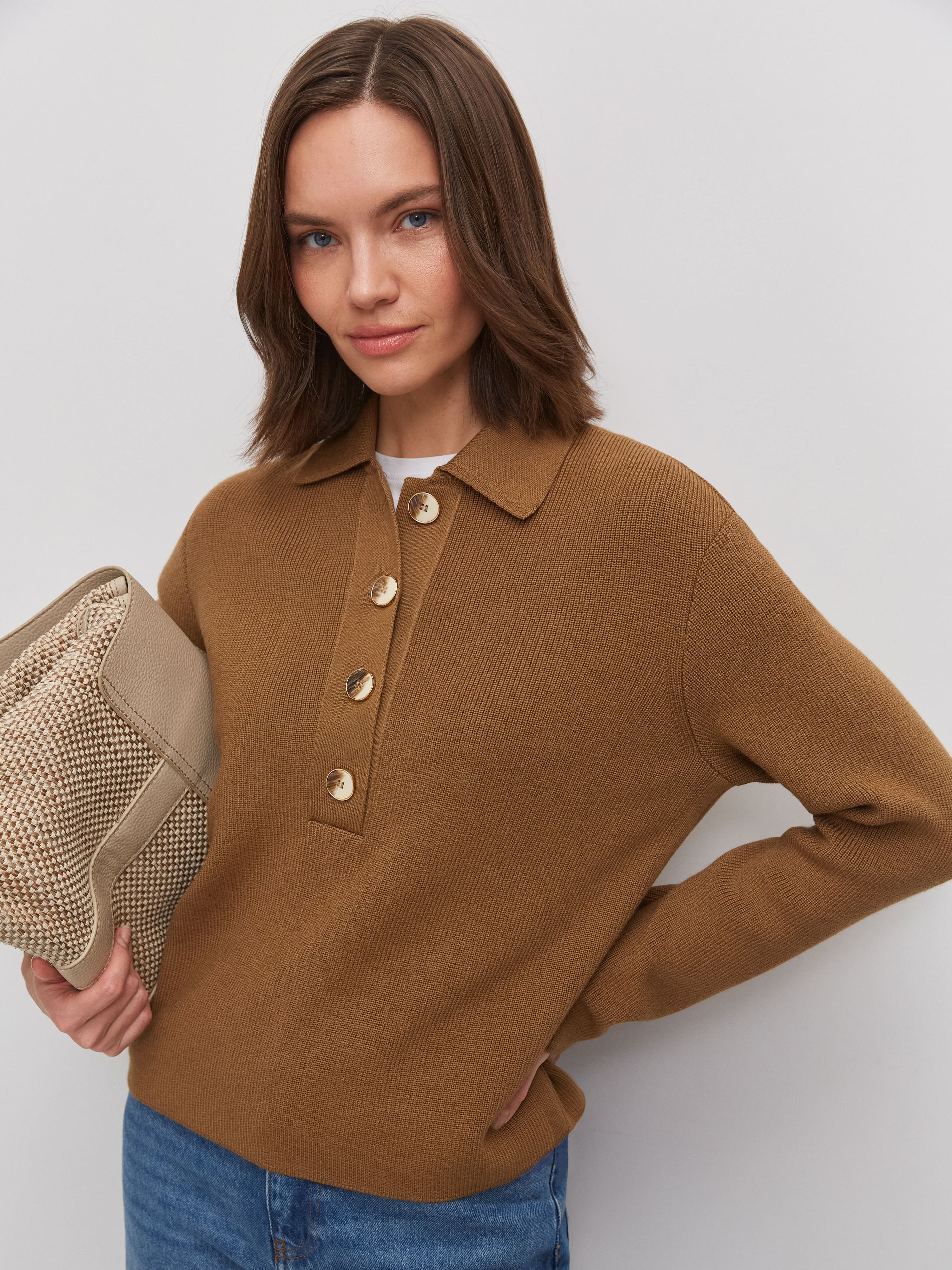Как быть, если хочется носить любимое поло даже осенью и зимой? Конечно, выбрать наш теплый джемпер из натуральной шерсти. В нем все атрибуты, присущие фасону поло, но адаптированные с учетом сезонности изделия. Воротник из плотного трикотажа, аккуратная планка, длинные рукава, которые можно красиво подвернуть – все это поможет менять образ по желанию.