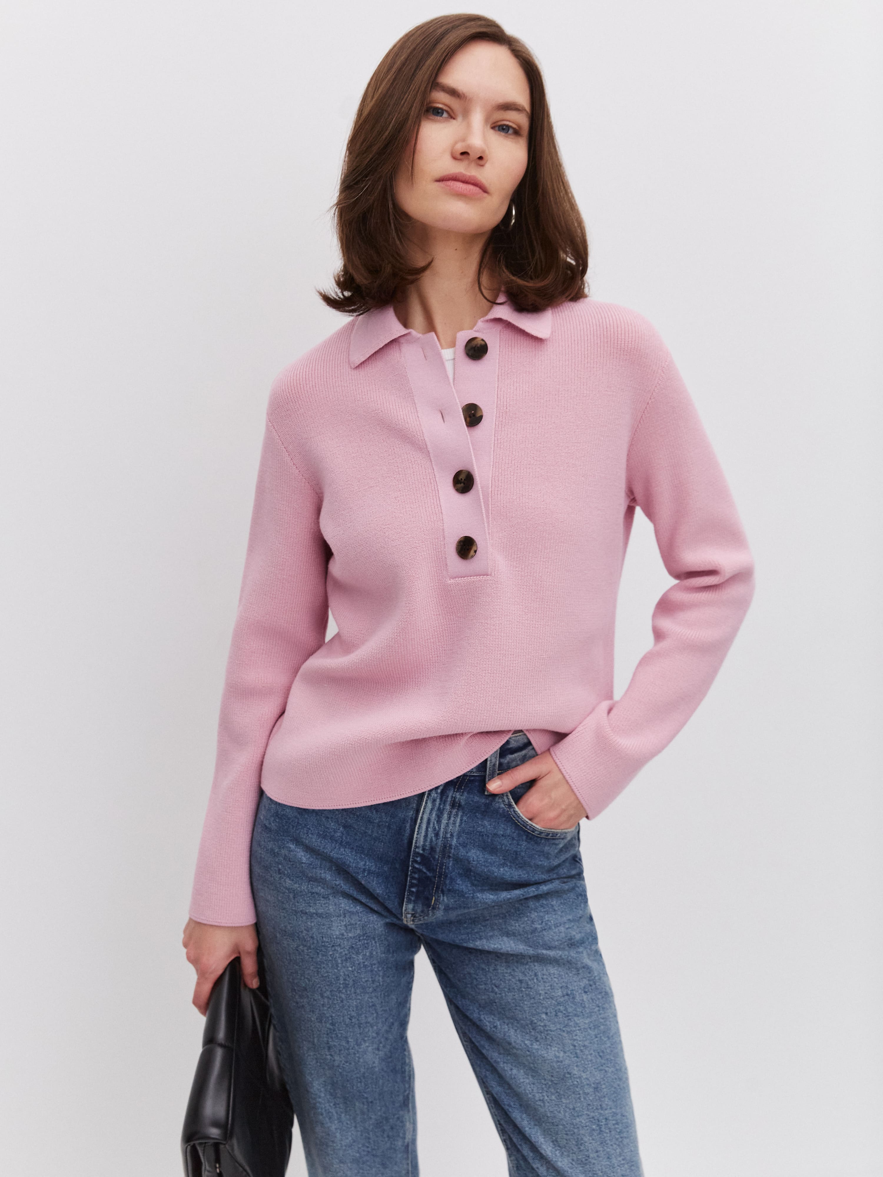 Как быть, если хочется носить любимое поло даже осенью и зимой? Конечно, выбрать наш теплый джемпер из натуральной шерсти. В нем все атрибуты, присущие фасону поло, но адаптированные с учетом сезонности изделия. Воротник из плотного трикотажа, аккуратная планка, длинные рукава, которые можно красиво подвернуть – все это поможет менять образ по желанию.