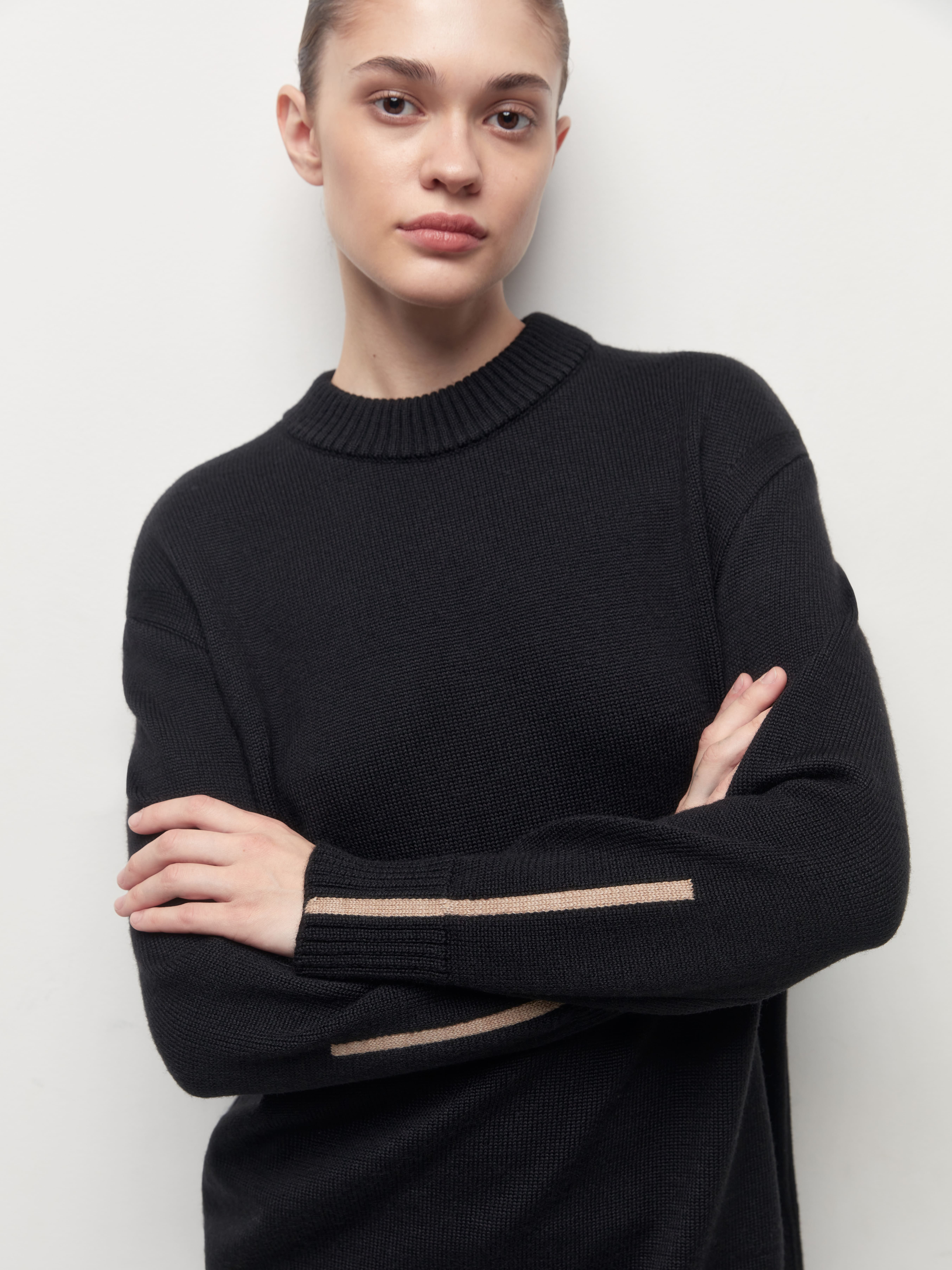 Джемпер из шерсти мериноса с акцентными полосками Кураж