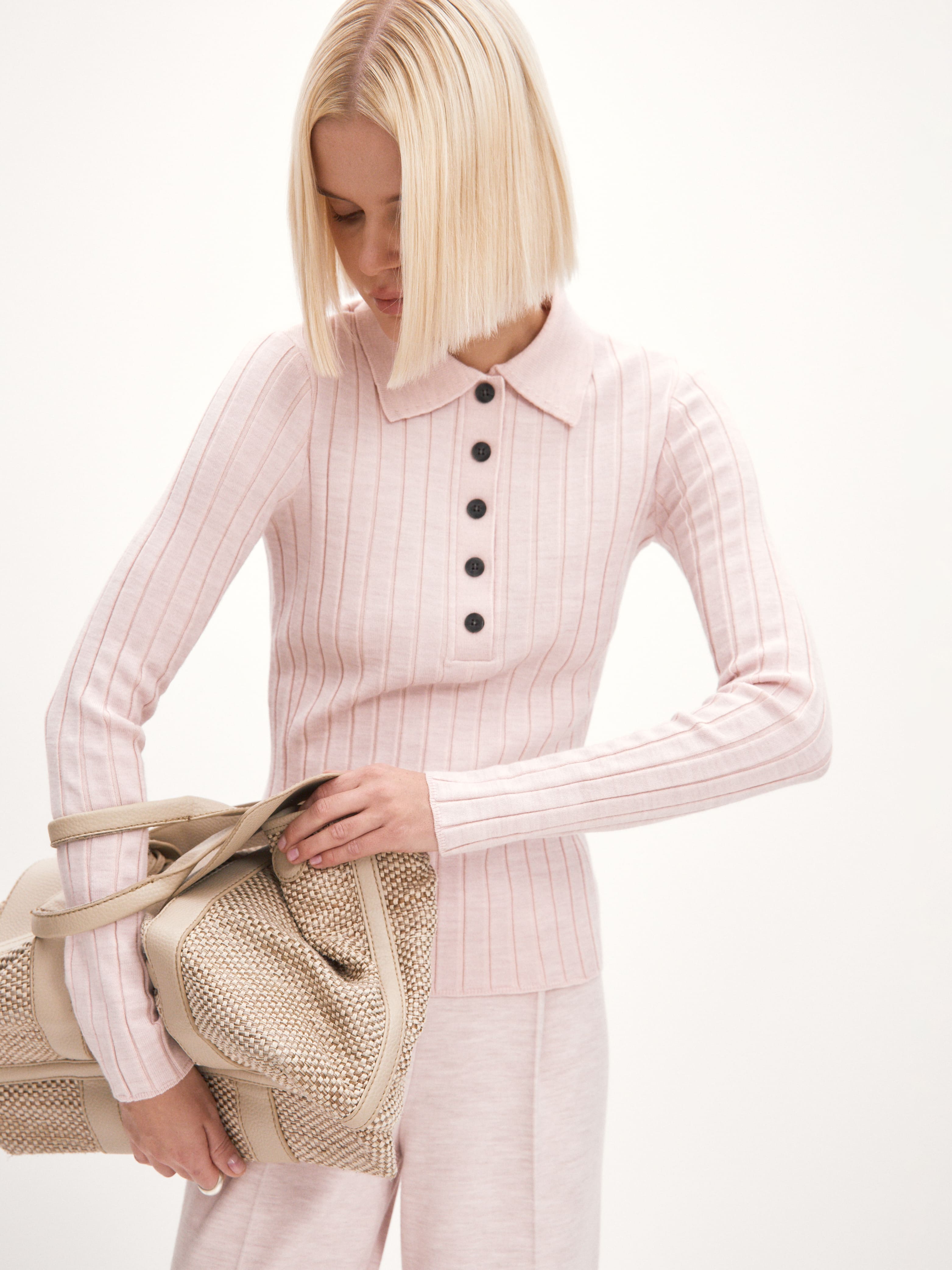 Джемпер поло облегающий из шерсти мериноса и вискозы Пейдж