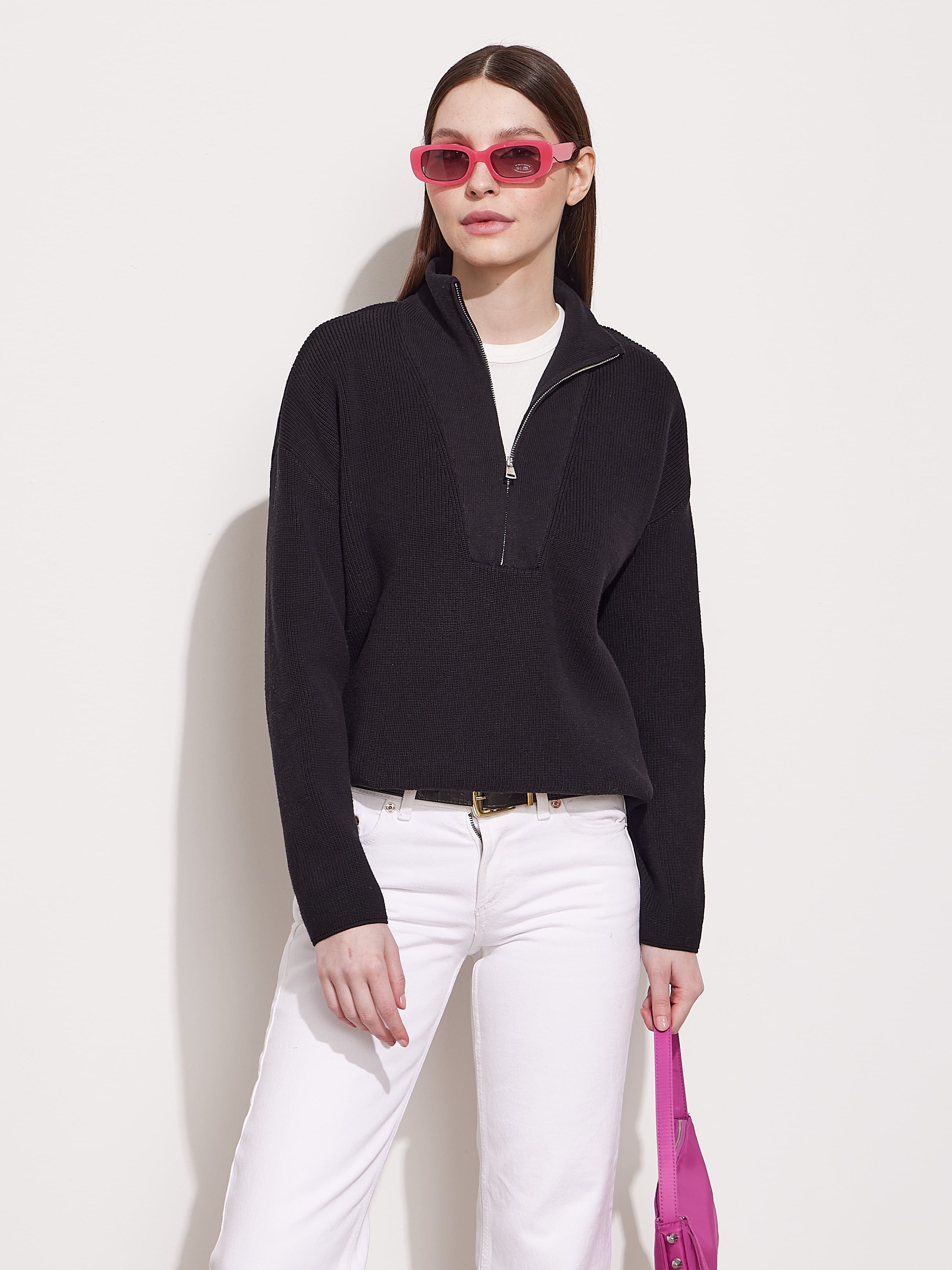 Джемпер из хлопка с воротом на молнии Райди