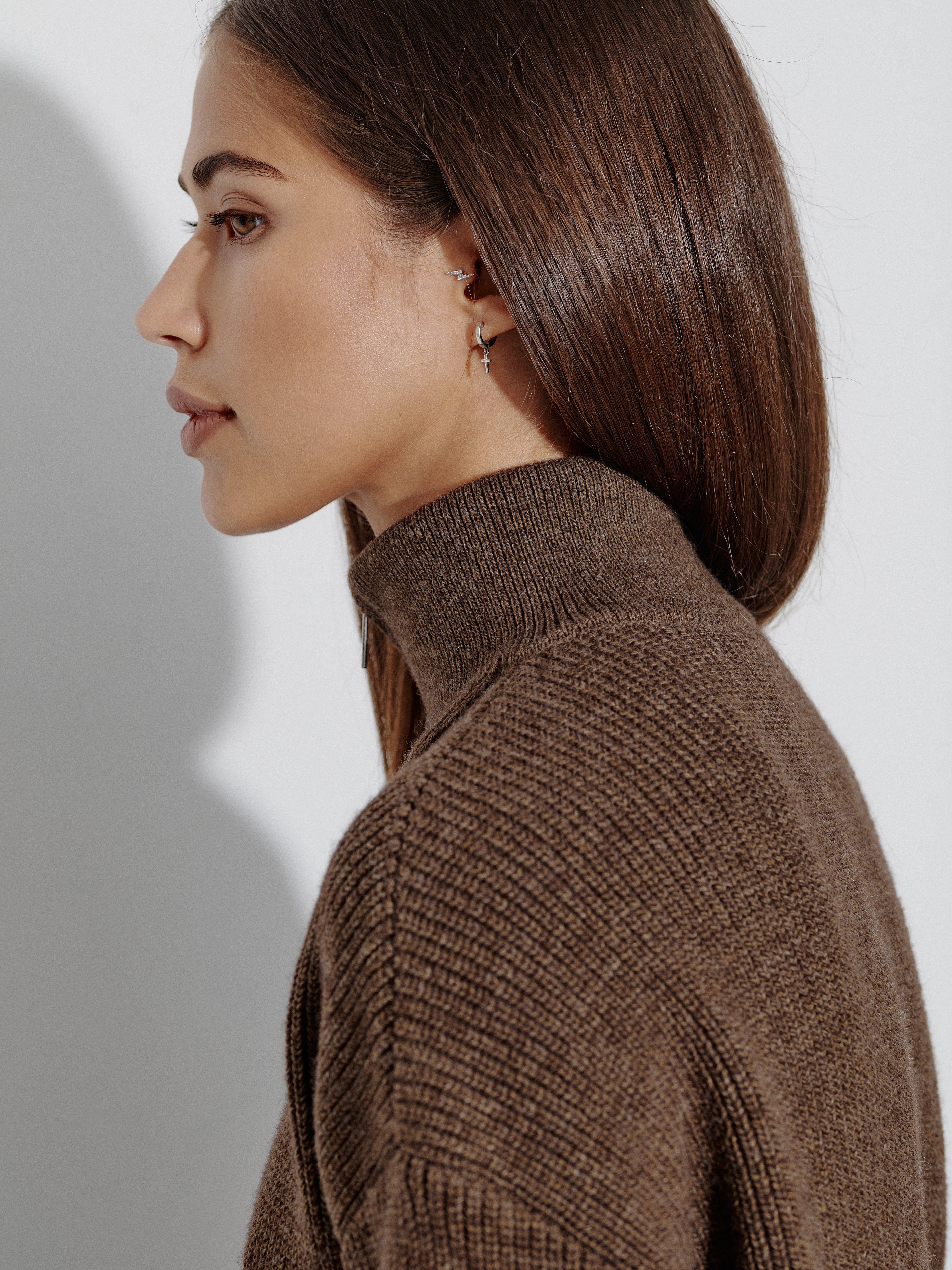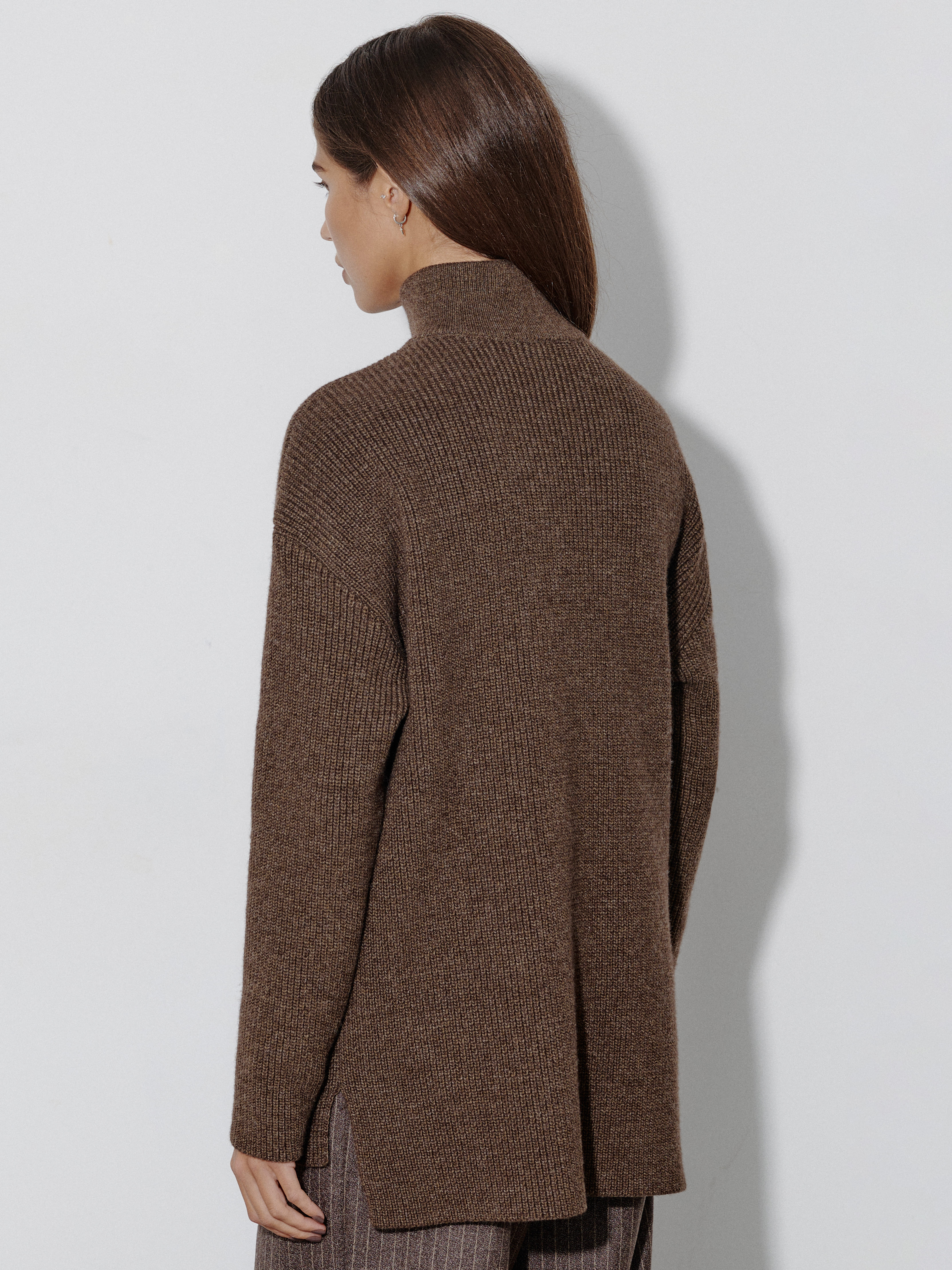 Самая согревающая модель в коллекции MONONAME – объемный шерстяной джемпер в минималистичном, слегка маскулинном стиле. Создан для ситуаций, когда хочется полностью отдаться комфортным ощущениям и чувству защищенности. Дополнен приспущенным плечом, удлиненной спинкой и горловиной на молнии. Два небольших разреза работают как “корректоры” посадки изделия по фигуре. Джемпер связан плотными петлями, что делает трикотаж максимально непродуваемым. Важно! При контакте с телом натуральная шерсть дает массирующе-покалывающий эффект. Если у вас чувствительная кожа, носите джемпер вторым слоем поверх футболок, лонгсливов, топов.