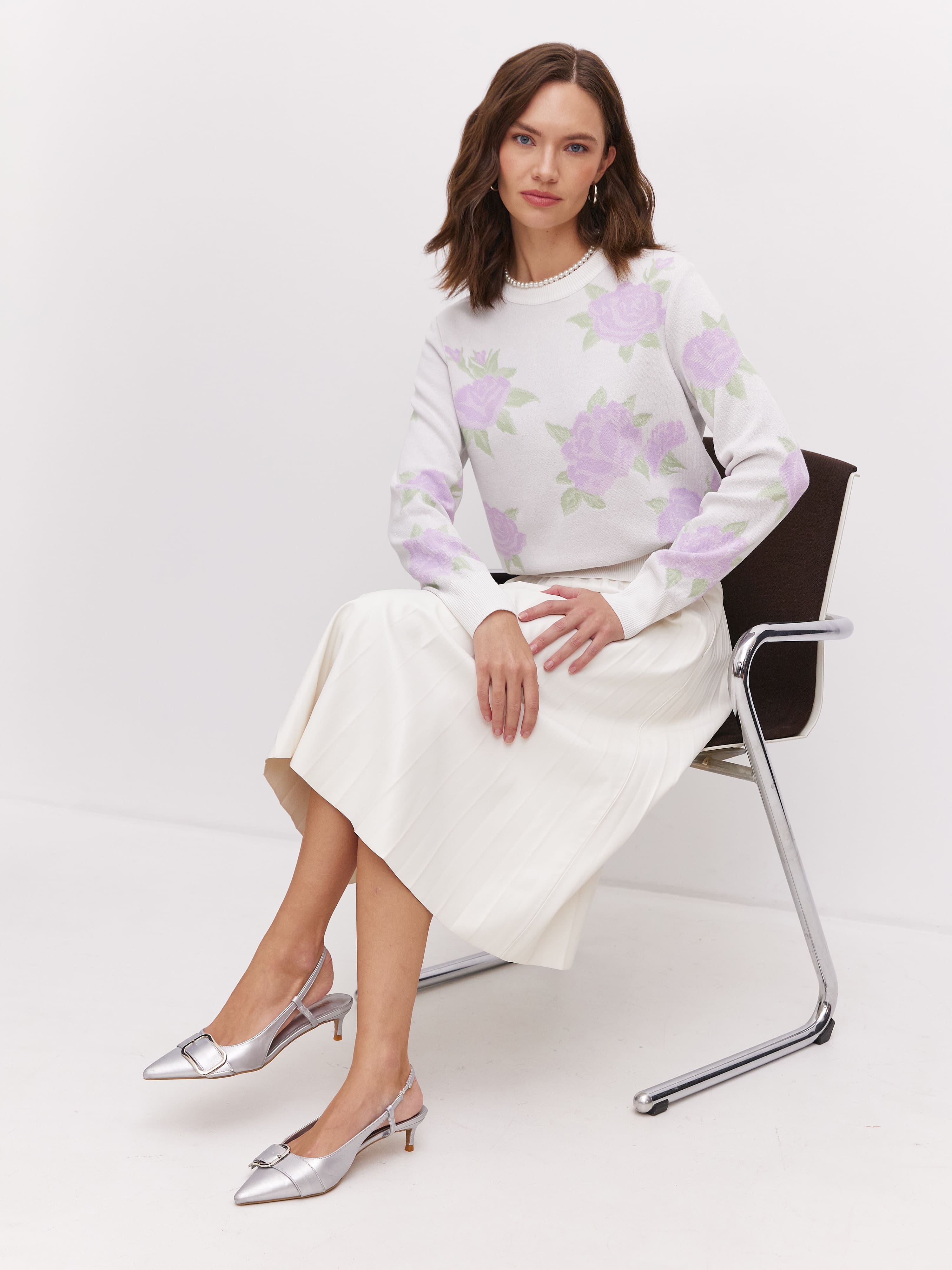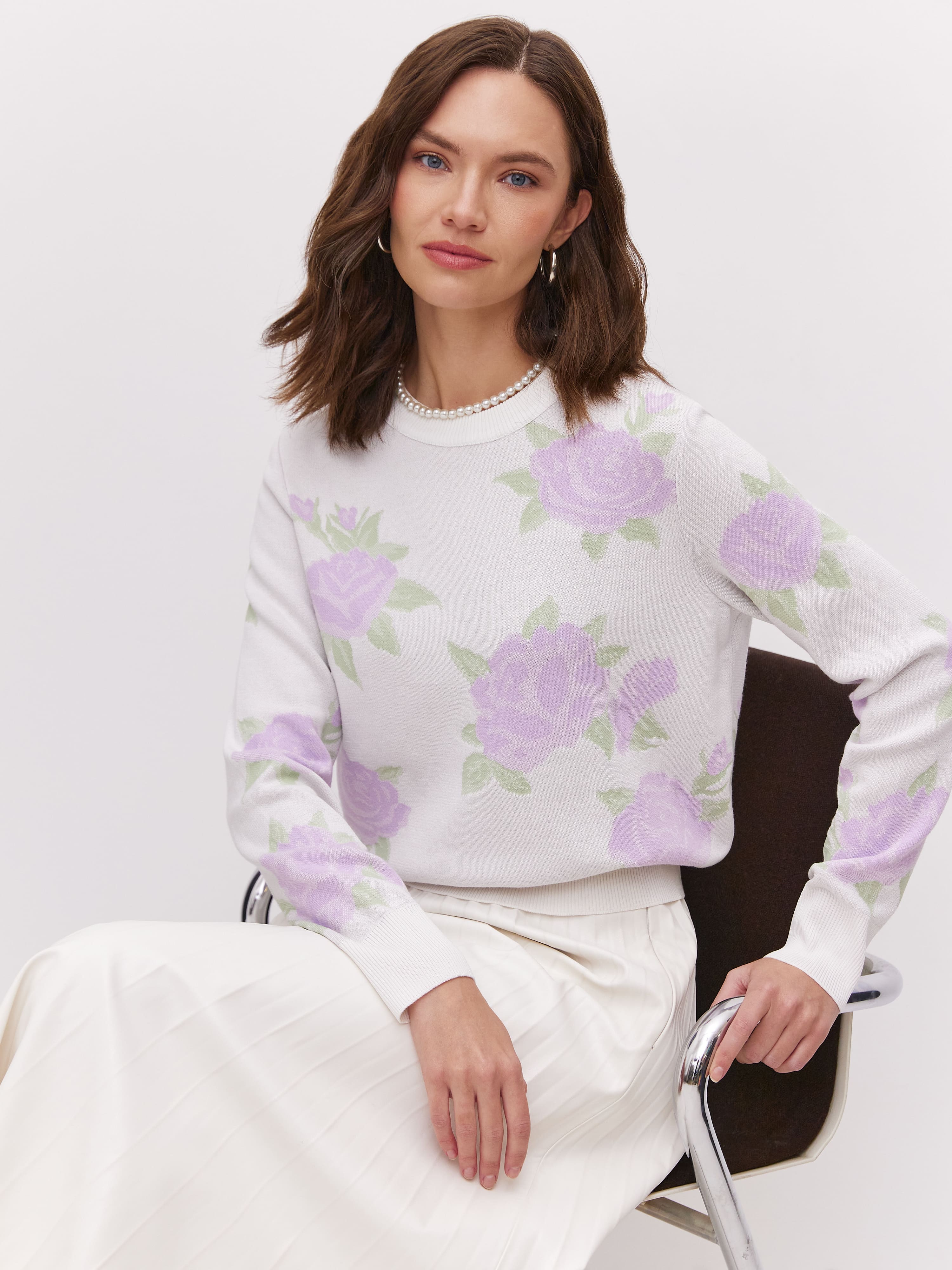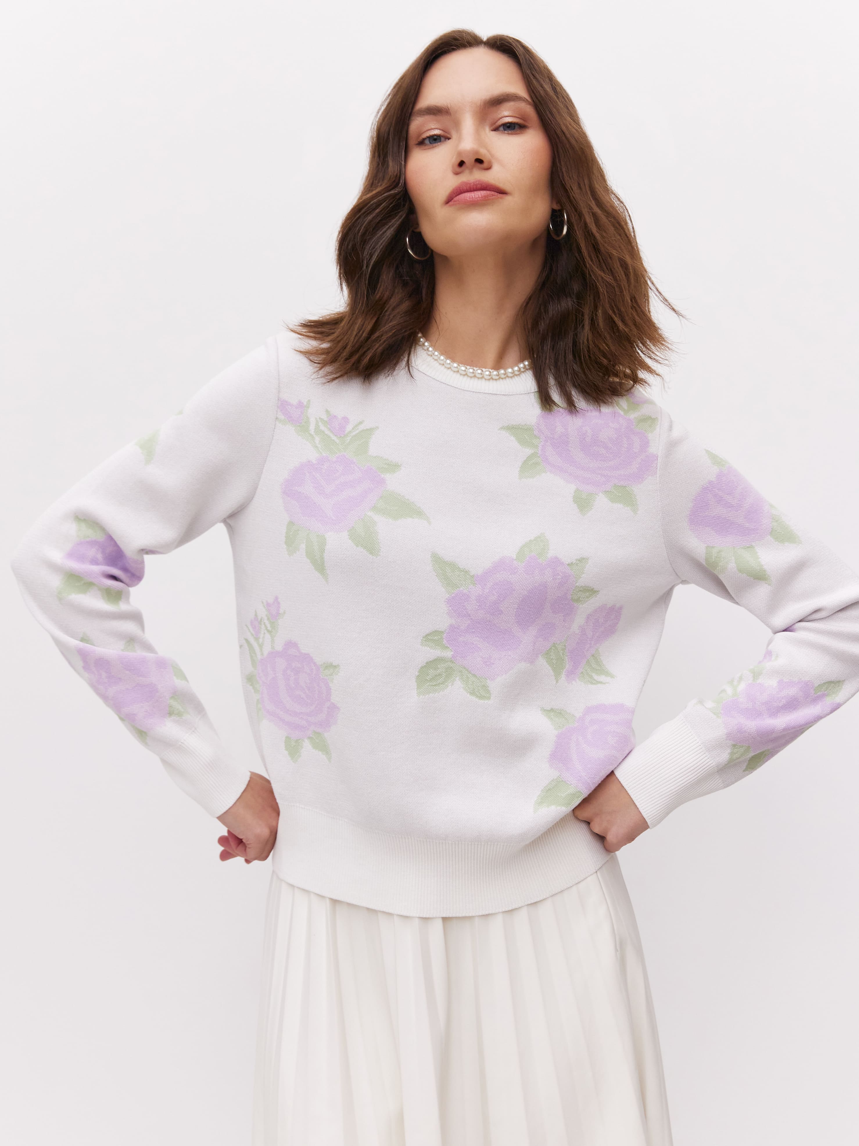 Джемпер из хлопка и вискозы с цветочным принтом Рози
