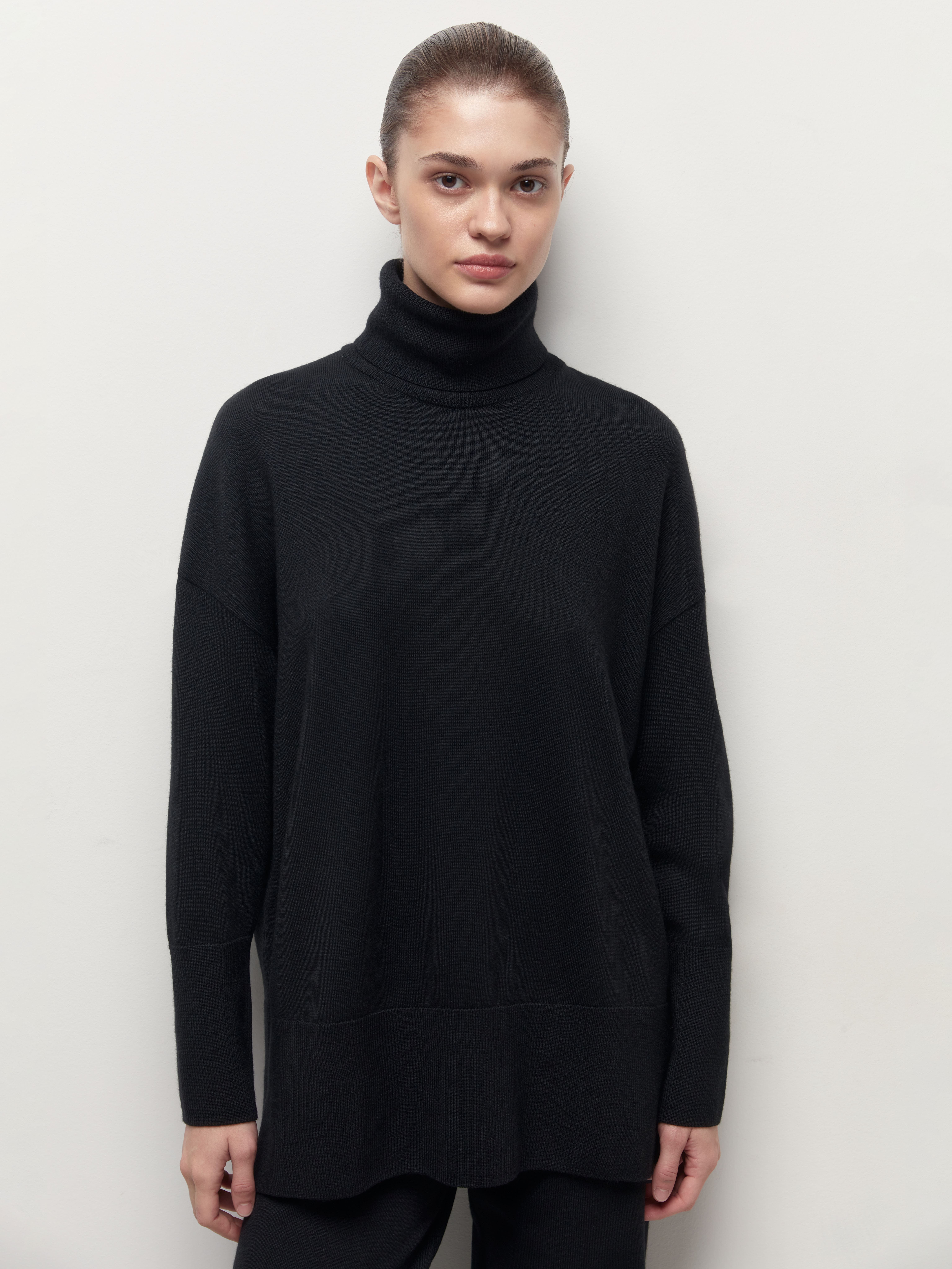 Джемпер из шерсти мериноса и вискозы с воротником Сатурн