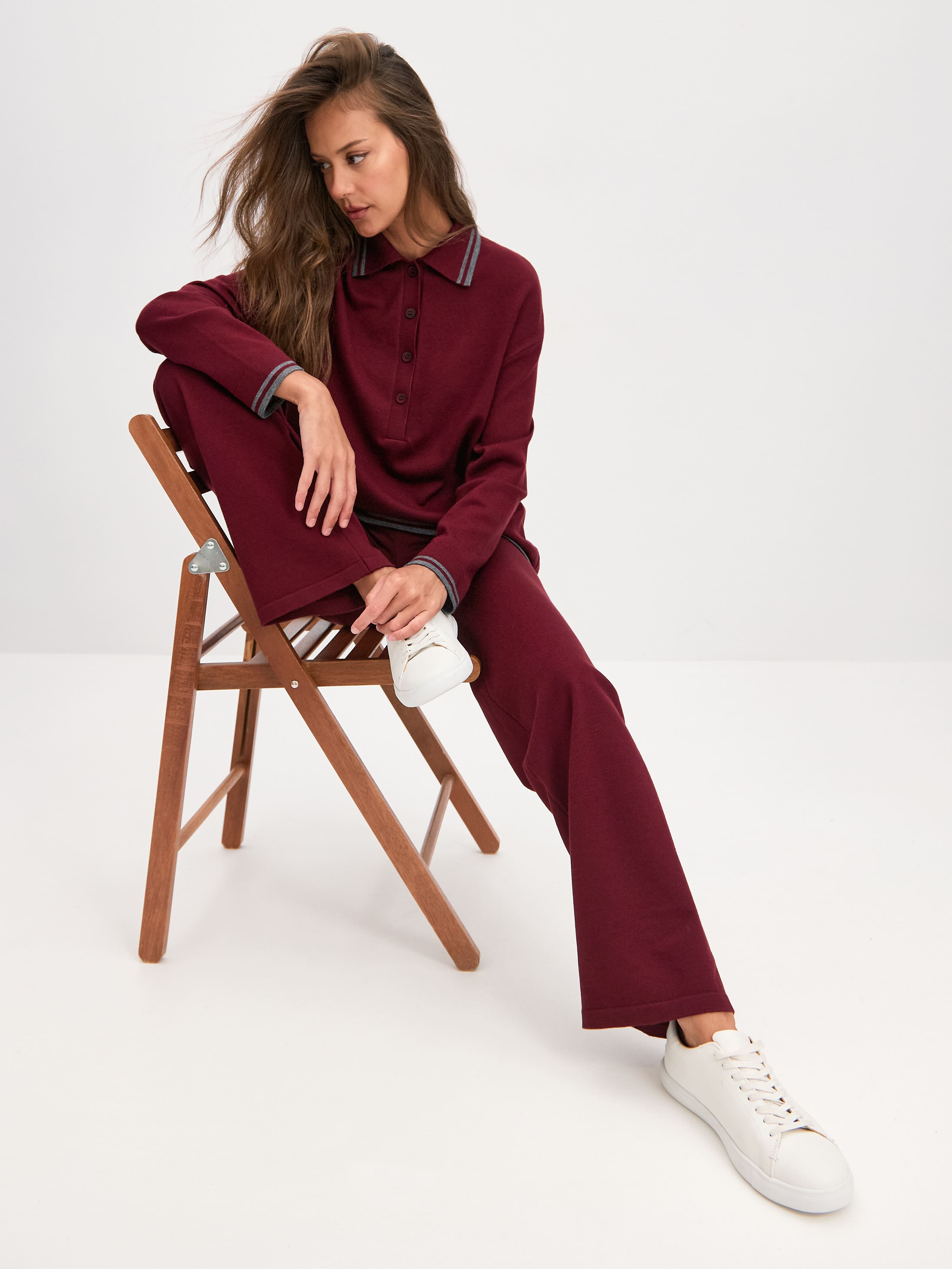 Удлиненная модель джемпера-поло, в которой расслабленность силуэта компенсируется сдержанной геометрией отделки. Связана из очень деликатного микса мериносовой шерсти и ласкающей вискозы. Особенности: заниженная зона плеча, воротник поло, вывязанные резинкой низ и манжеты, противостоящие деформации краев. Трикотажное полотно характеризует красивый шелковистый финиш, превращающий поло в базовую единицу не только повседневного, но и выходного образа.
