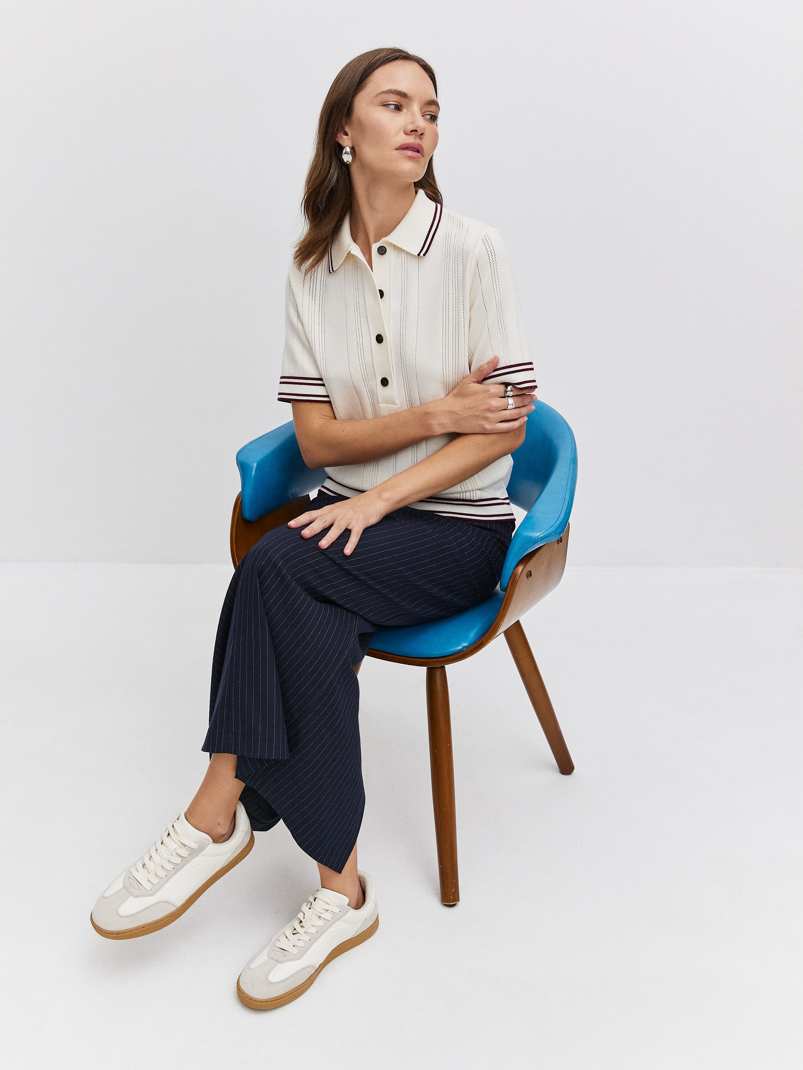 Благодаря сочетанию спортивных и классических элементов модель с воротником поло можно стилизовать практически с любыми вещами