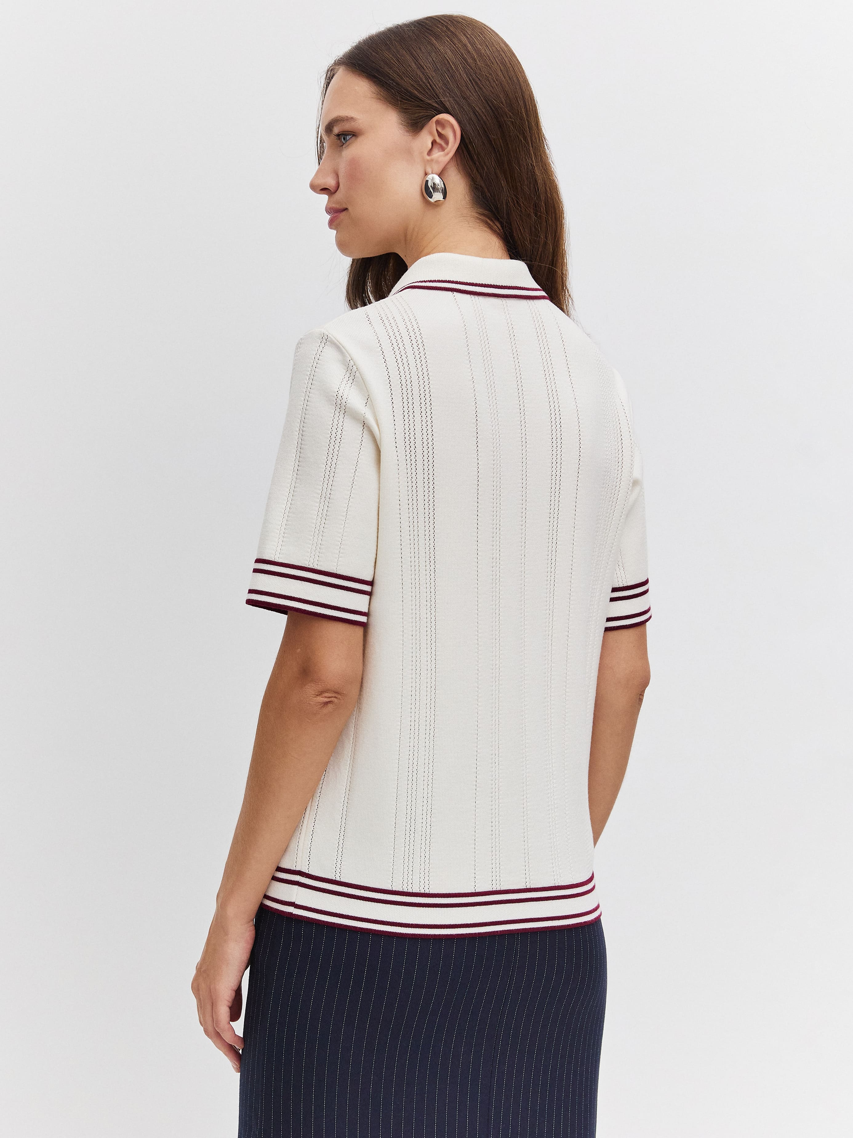 Кофта поло с коротким рукавом — это стильная и удобная модель для весны и лета. Данный джемпер изготовлен из тонкого трикотажа с премиальным вискозным волокном, обеспечивающим комфорт в жаркие дни. Контрастные полоски на воротнике, рукавах и по низу изделия придают модели оригинальность и стиль. Благодаря классическому прямому крою, изделие идеально подходит для повседневной носки. Свободный силуэт и мягкая ткань делают её комфортной для работы и активного отдыха.