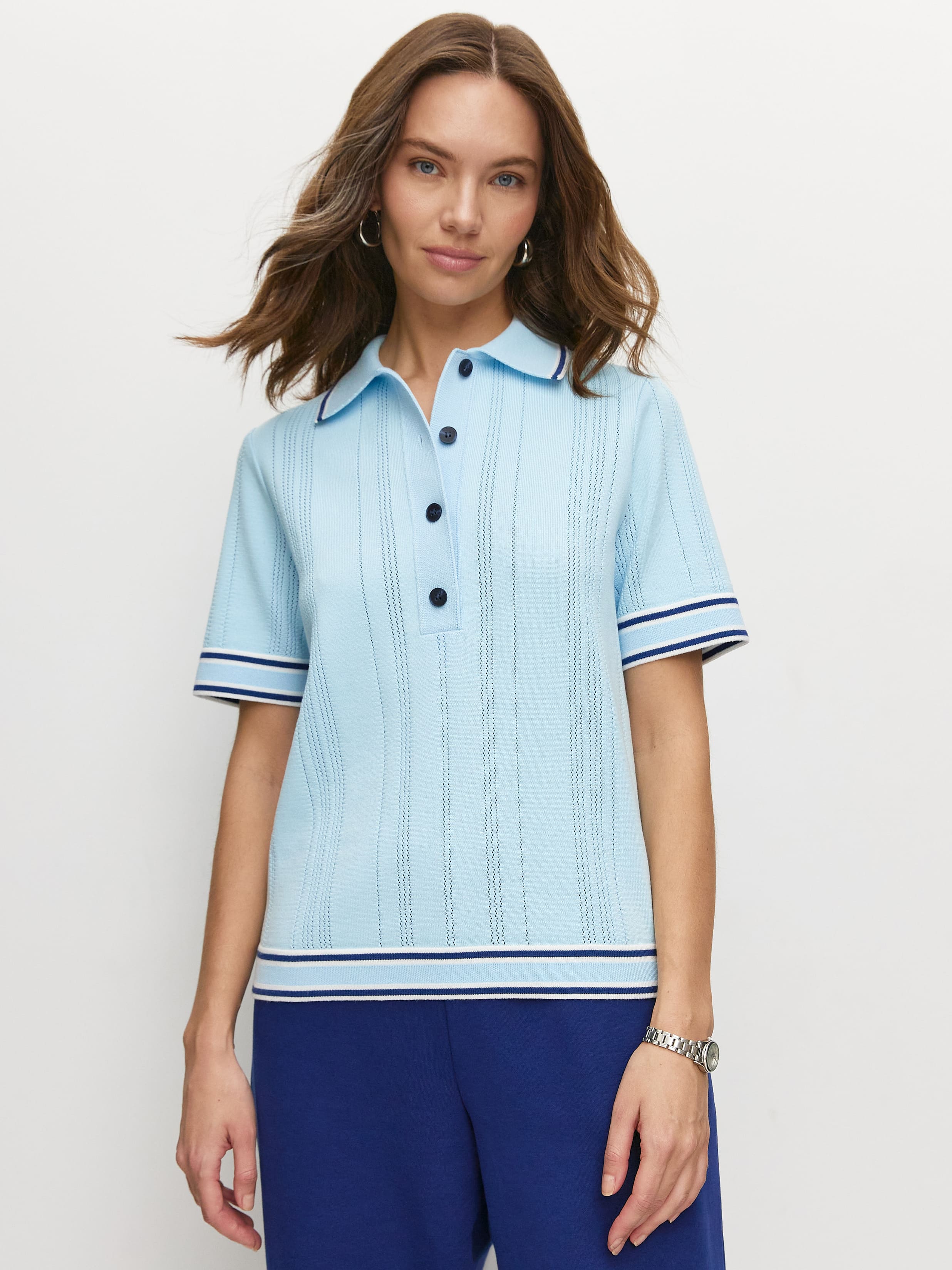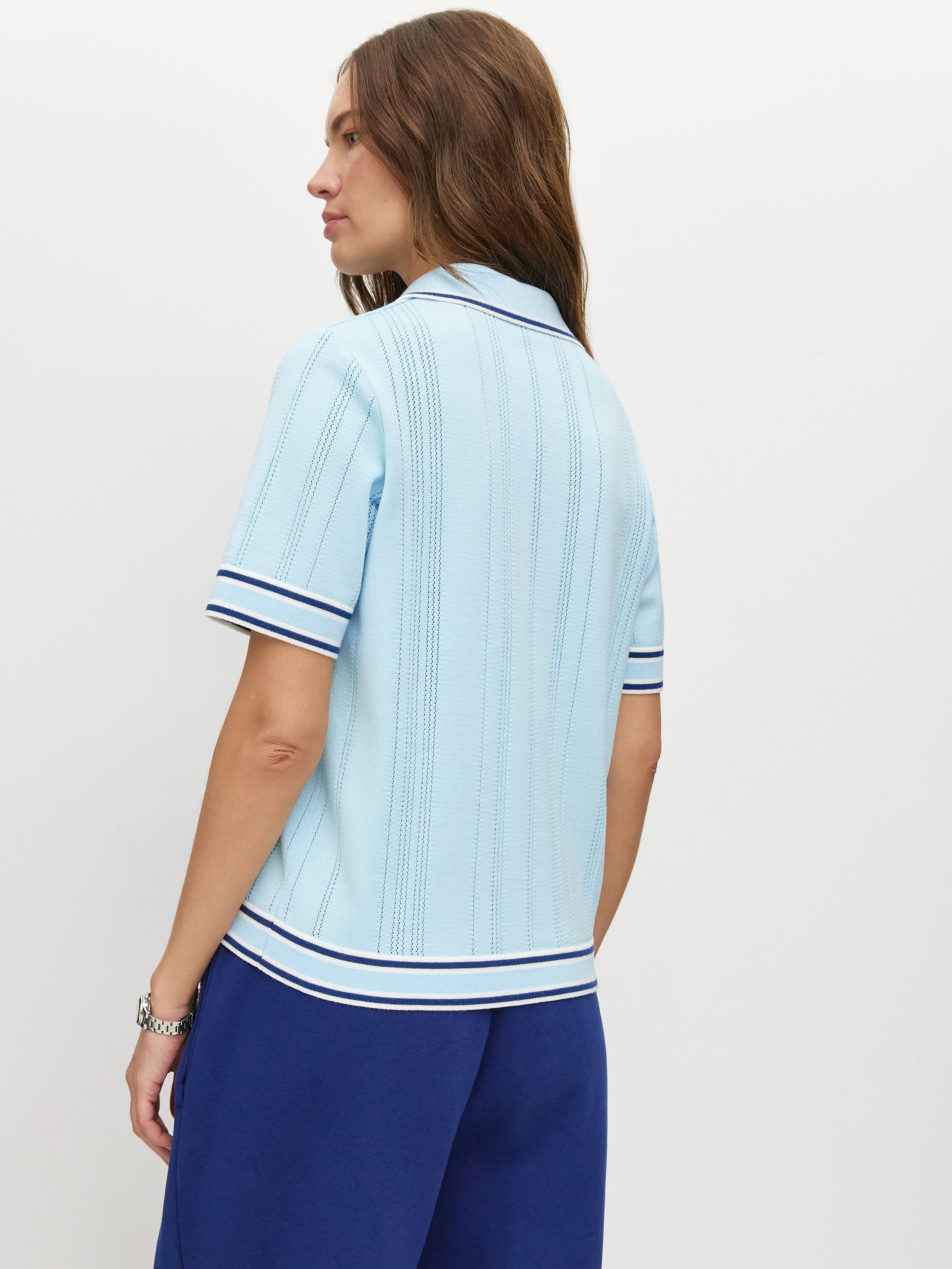 Кофта поло с коротким рукавом — это стильная и удобная модель для весны и лета. Данный джемпер изготовлен из тонкого трикотажа с премиальным вискозным волокном, обеспечивающим комфорт в жаркие дни. Контрастные полоски на воротнике, рукавах и по низу изделия придают модели оригинальность и стиль. Благодаря классическому прямому крою, изделие идеально подходит для повседневной носки. Свободный силуэт и мягкая ткань делают её комфортной для работы и активного отдыха.