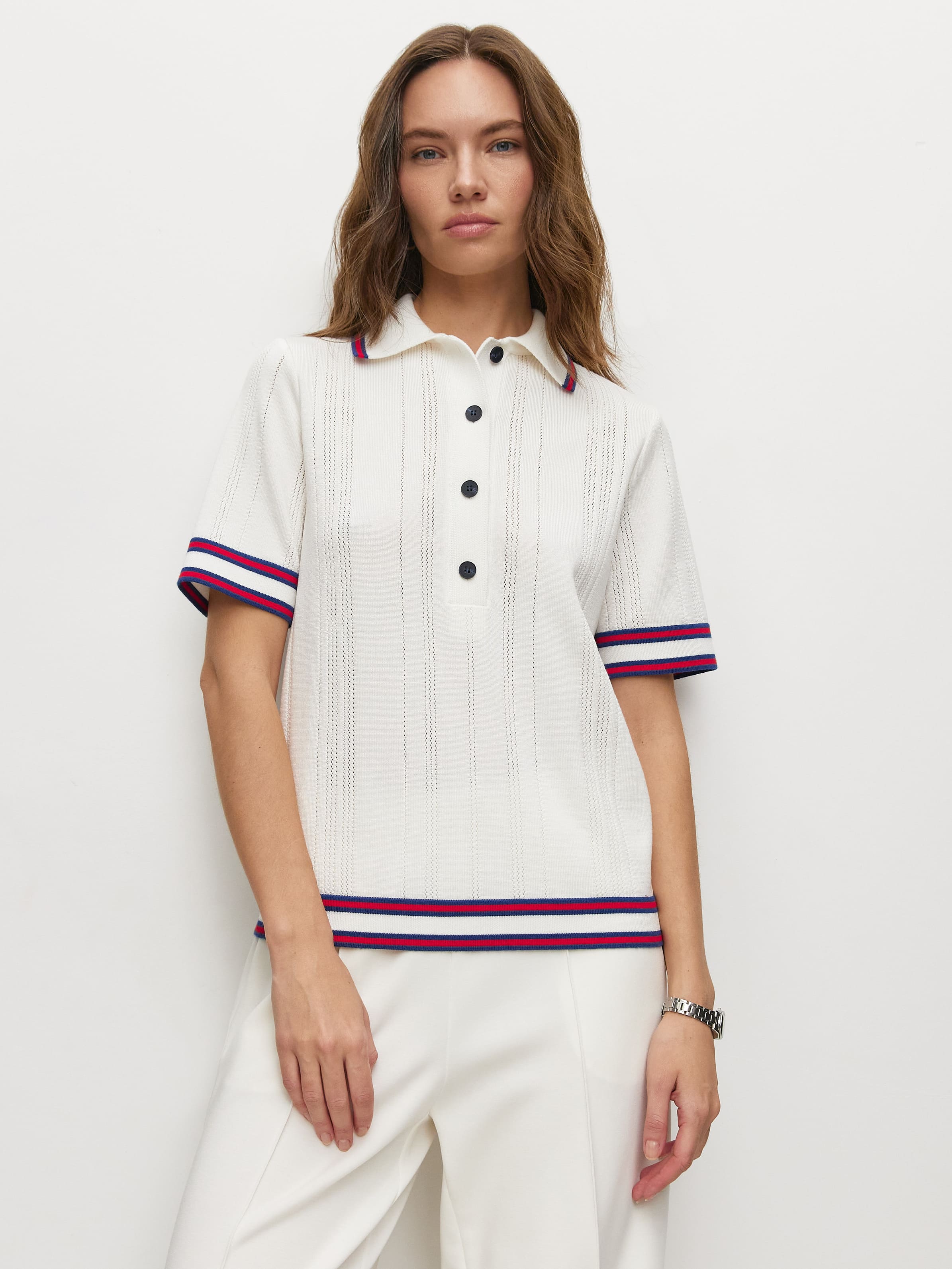 Кофта поло с коротким рукавом — это стильная и удобная модель для весны и лета. Данный джемпер изготовлен из тонкого трикотажа с премиальным вискозным волокном, обеспечивающим комфорт в жаркие дни. Контрастные полоски на воротнике, рукавах и по низу изделия придают модели оригинальность и стиль. Благодаря классическому прямому крою, изделие идеально подходит для повседневной носки. Свободный силуэт и мягкая ткань делают её комфортной для работы и активного отдыха.