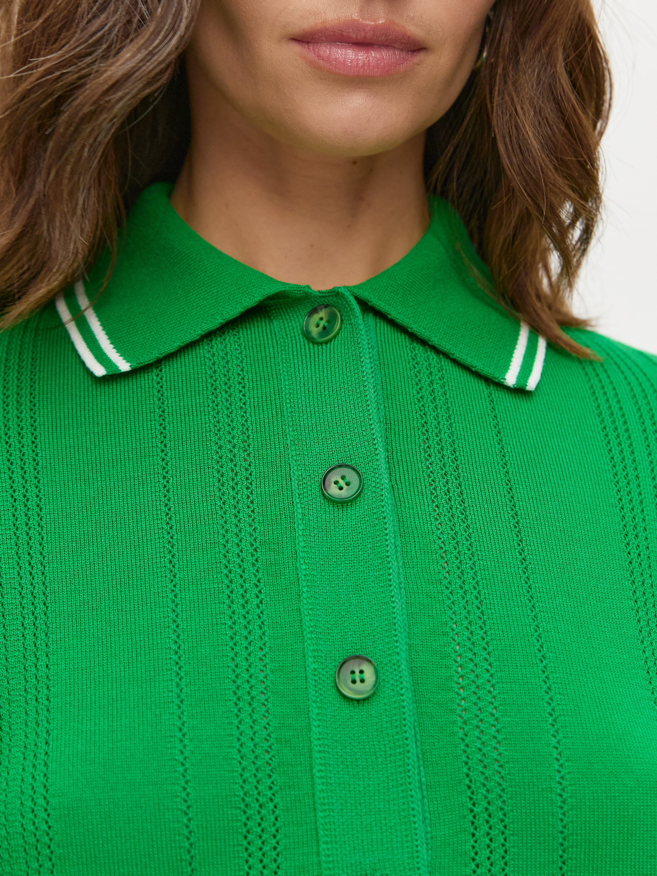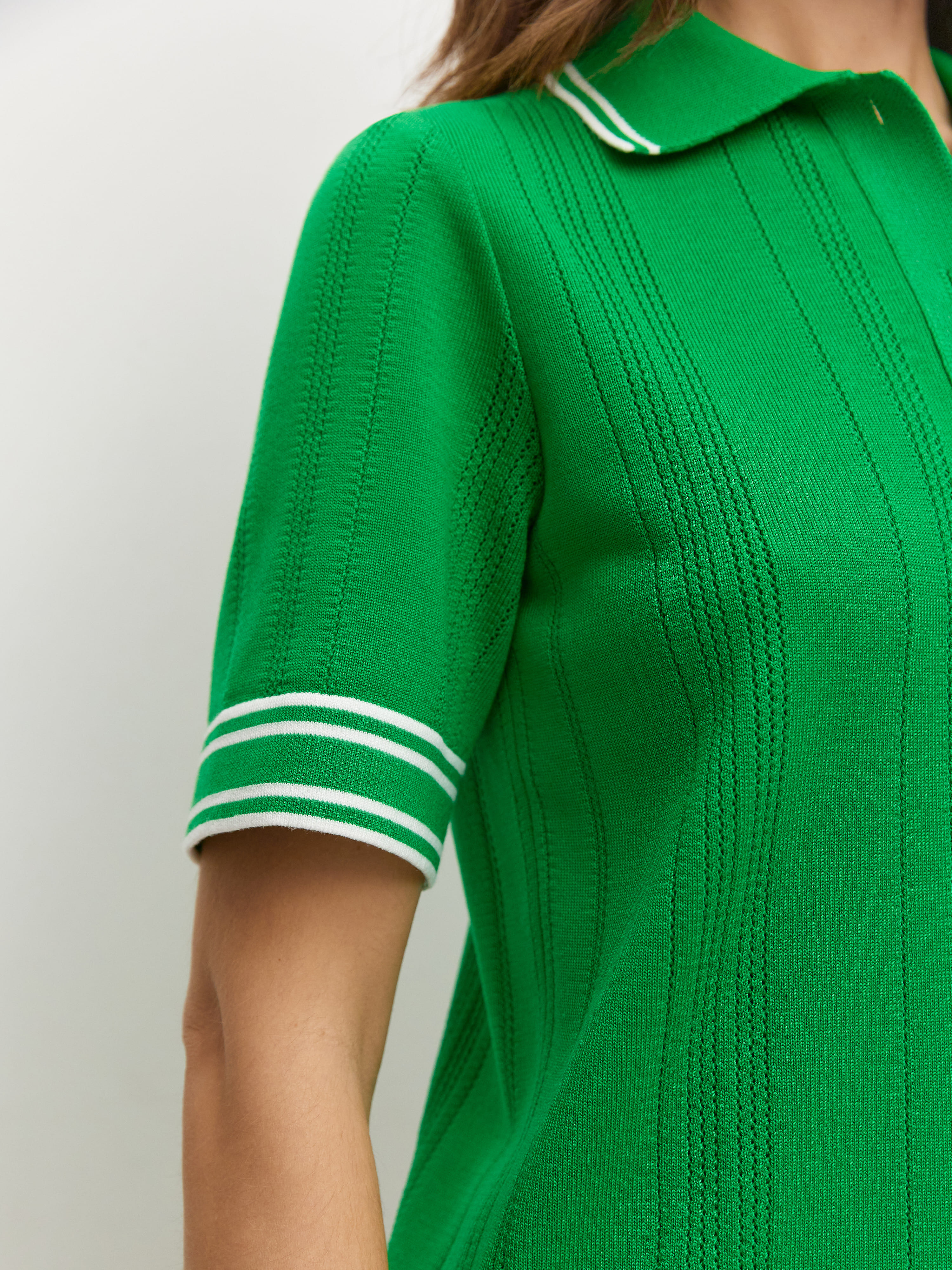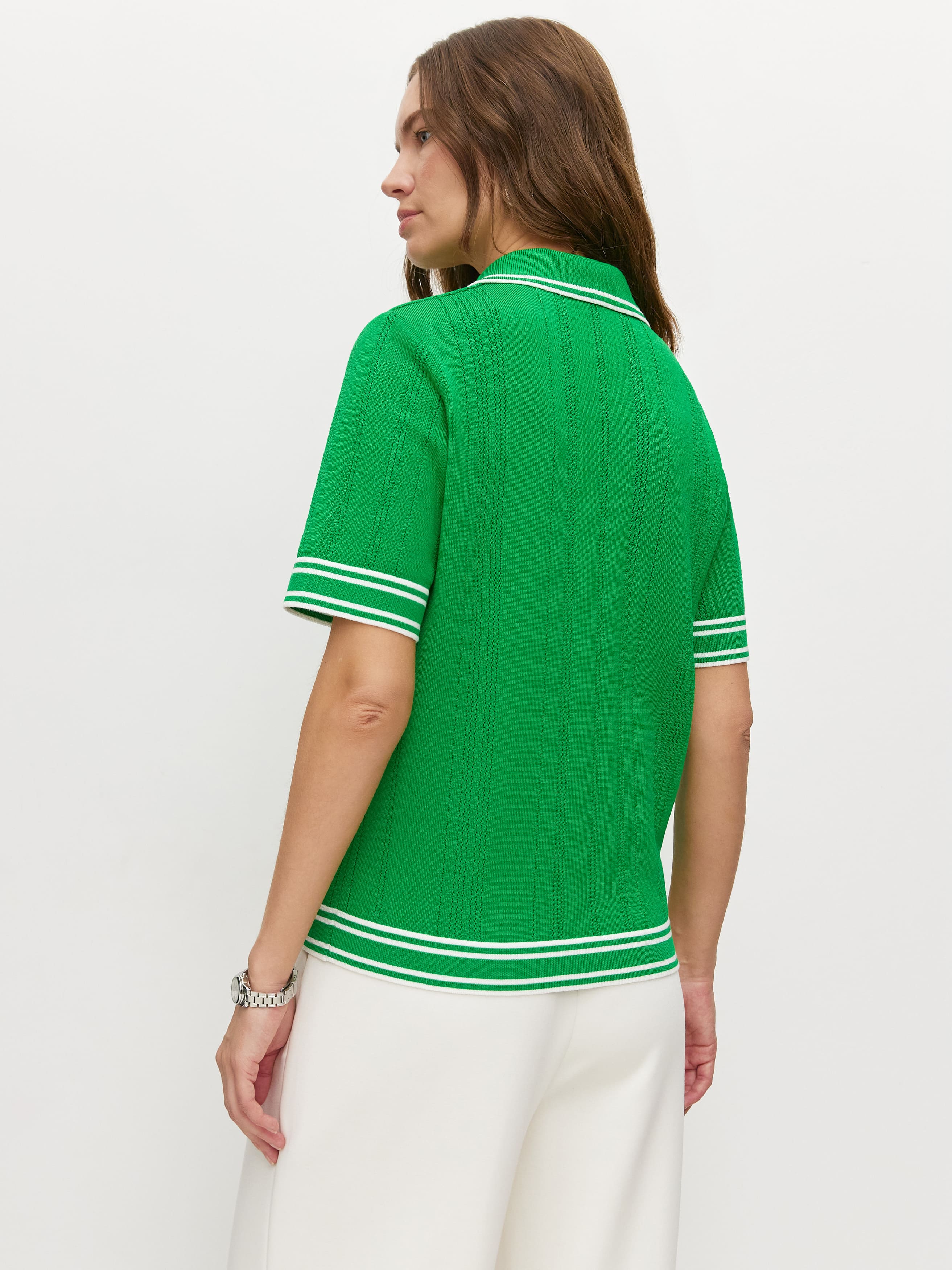 Кофта поло с коротким рукавом — это стильная и удобная модель для весны и лета. Данный джемпер изготовлен из тонкого трикотажа с премиальным вискозным волокном, обеспечивающим комфорт в жаркие дни. Контрастные полоски на воротнике, рукавах и по низу изделия придают модели оригинальность и стиль. Благодаря классическому прямому крою, изделие идеально подходит для повседневной носки. Свободный силуэт и мягкая ткань делают её комфортной для работы и активного отдыха.