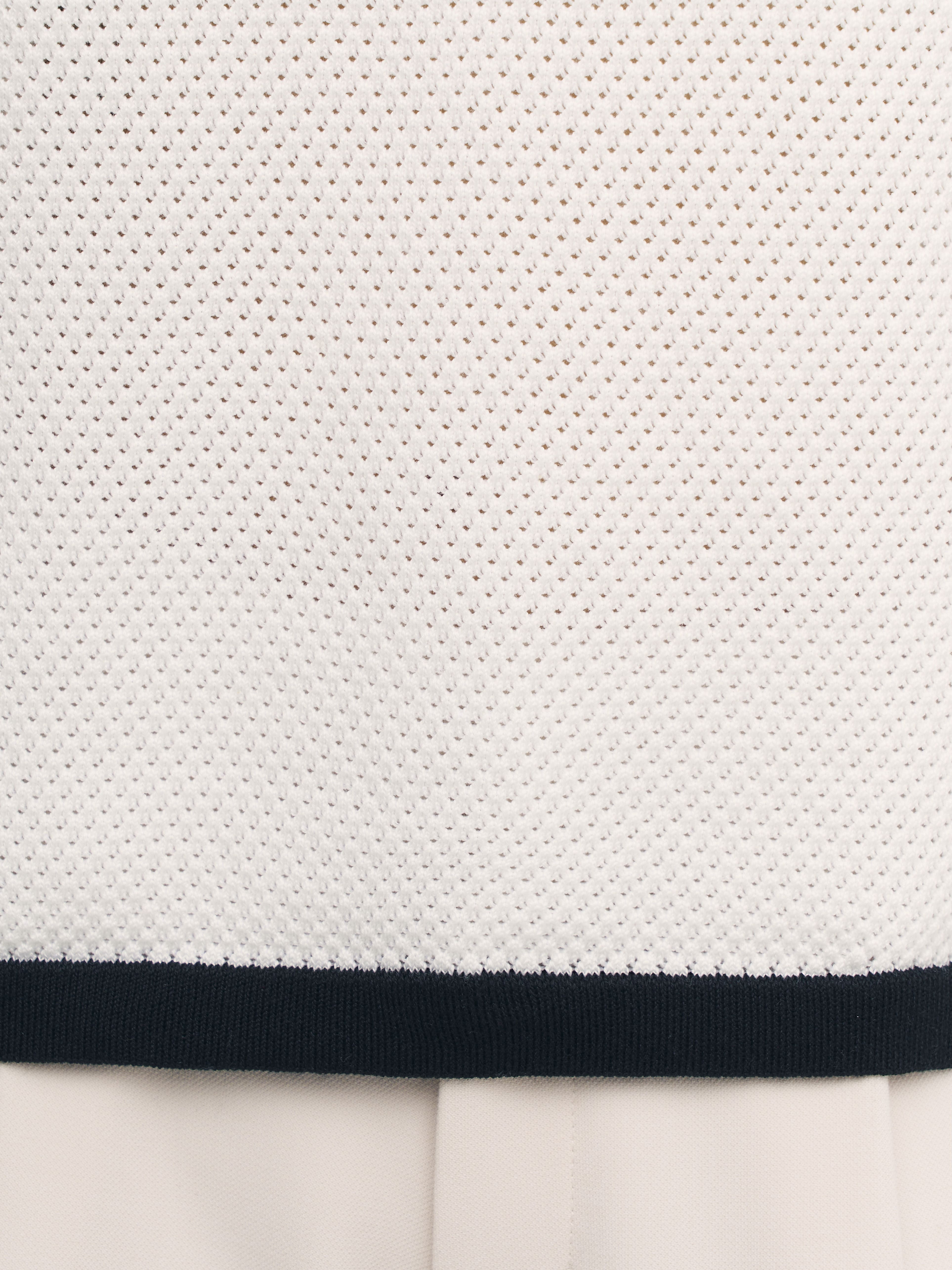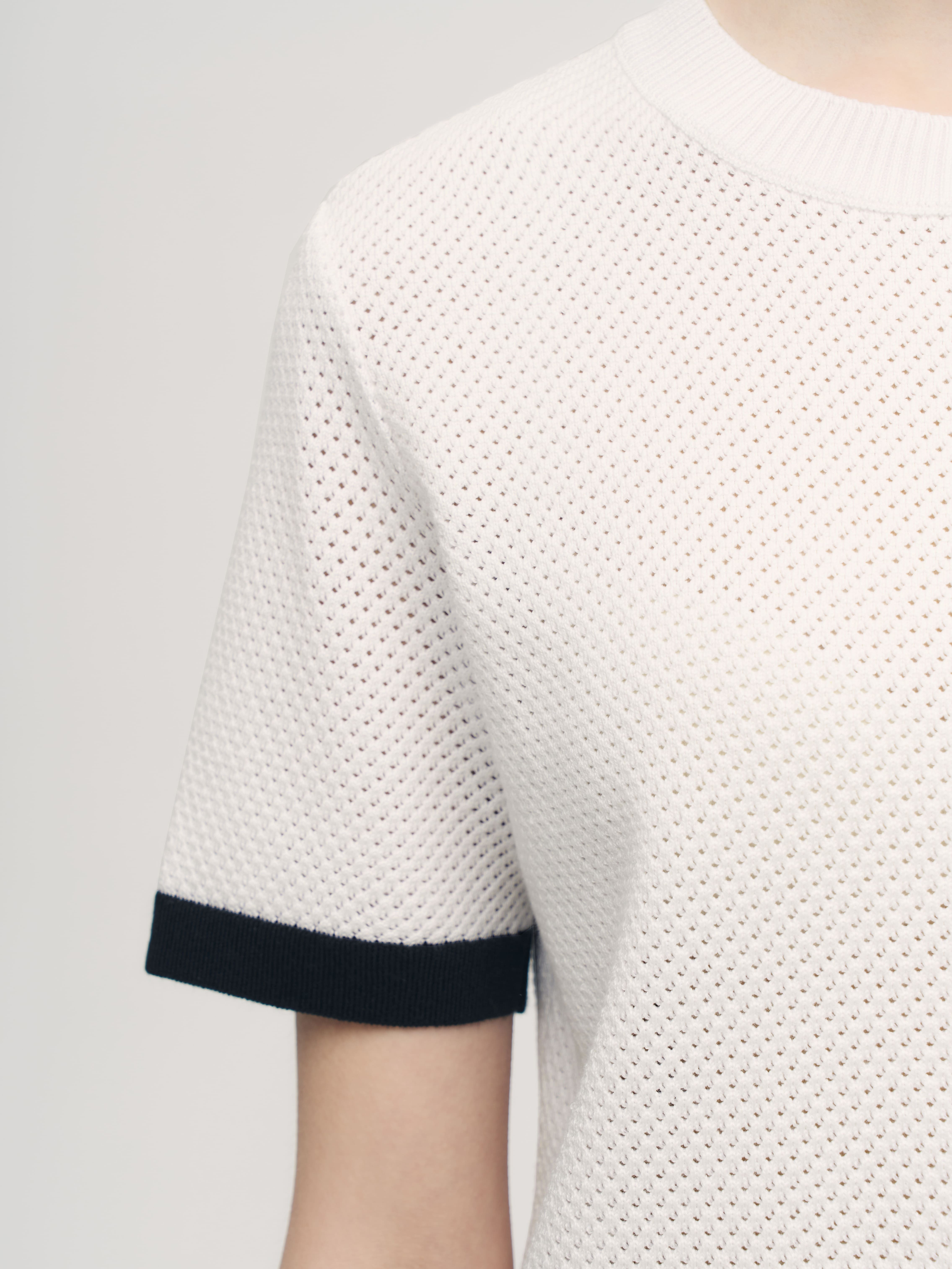 Невесомая летняя фантазия от дизайнеров бренда – нежнейший джемпер-сетка в сдержанно-спортивном стиле. Уютная альтернатива скучным трикотажным футболкам, в которой замиксованы сразу хлопок и вискоза. Особенности: прямой, не ограничивающий движения, крой, акцентная полоса по краям и защищенная от деформаций горловина. Дышащий трикотаж с перфорацией дарит легкое просвечивание, позволяя поиграть с оттенками нижнего белья. Решайте, выбирать топ в тон или на контрасте.